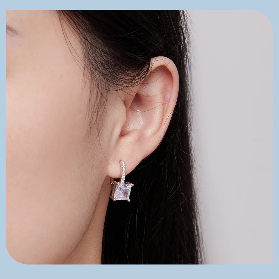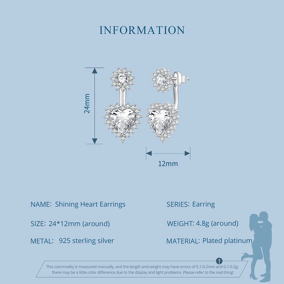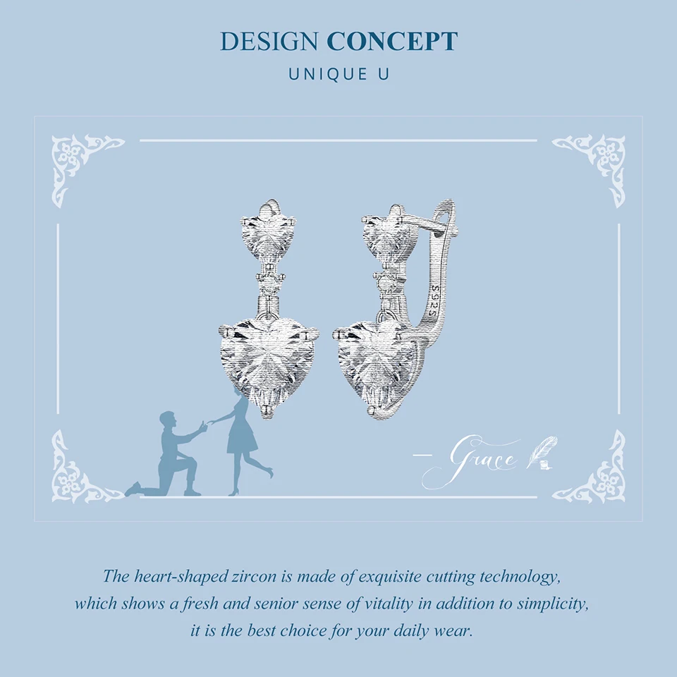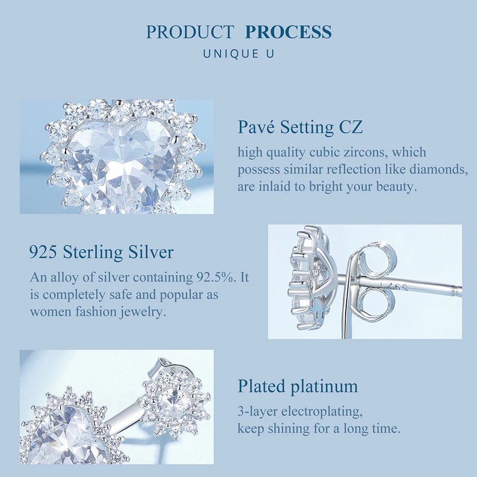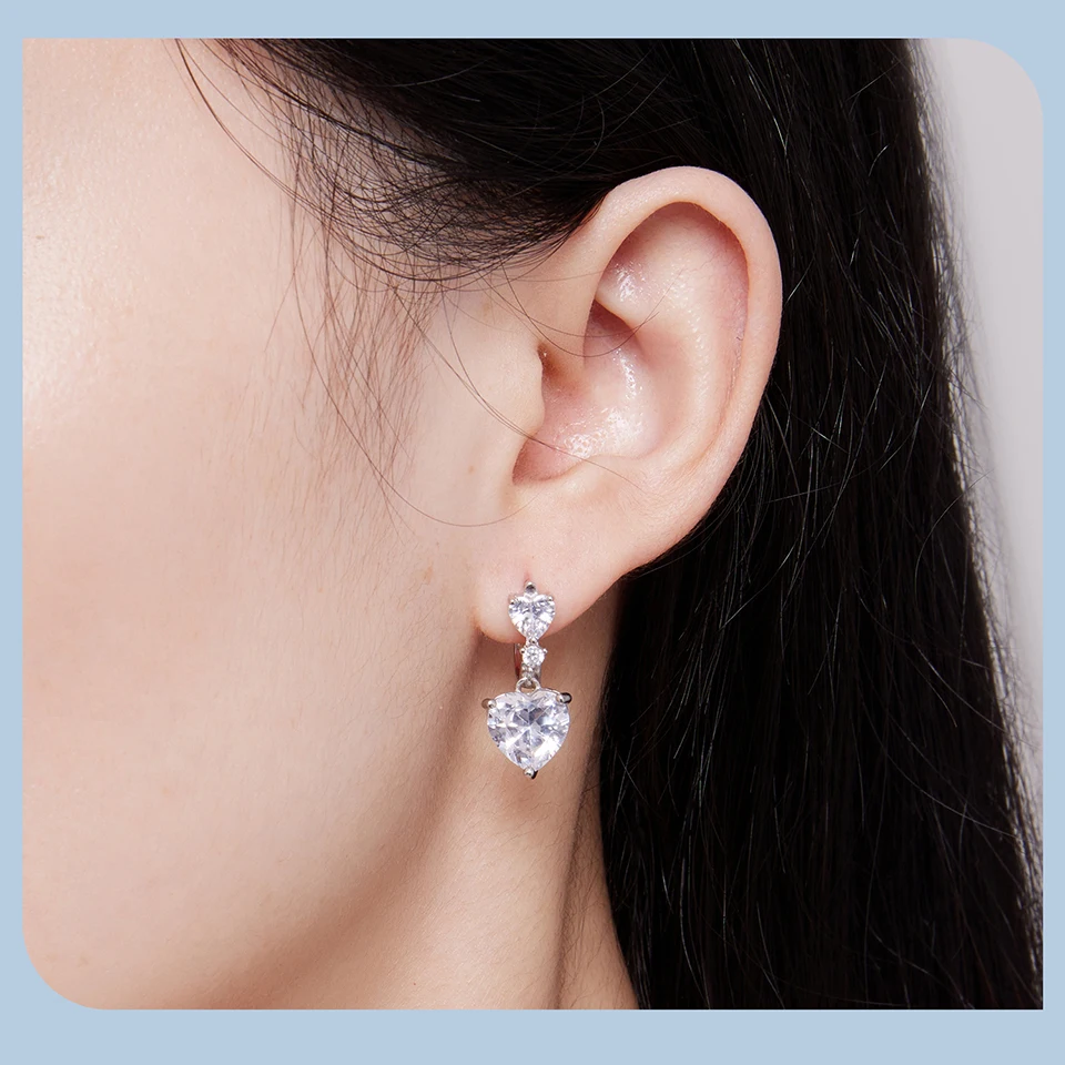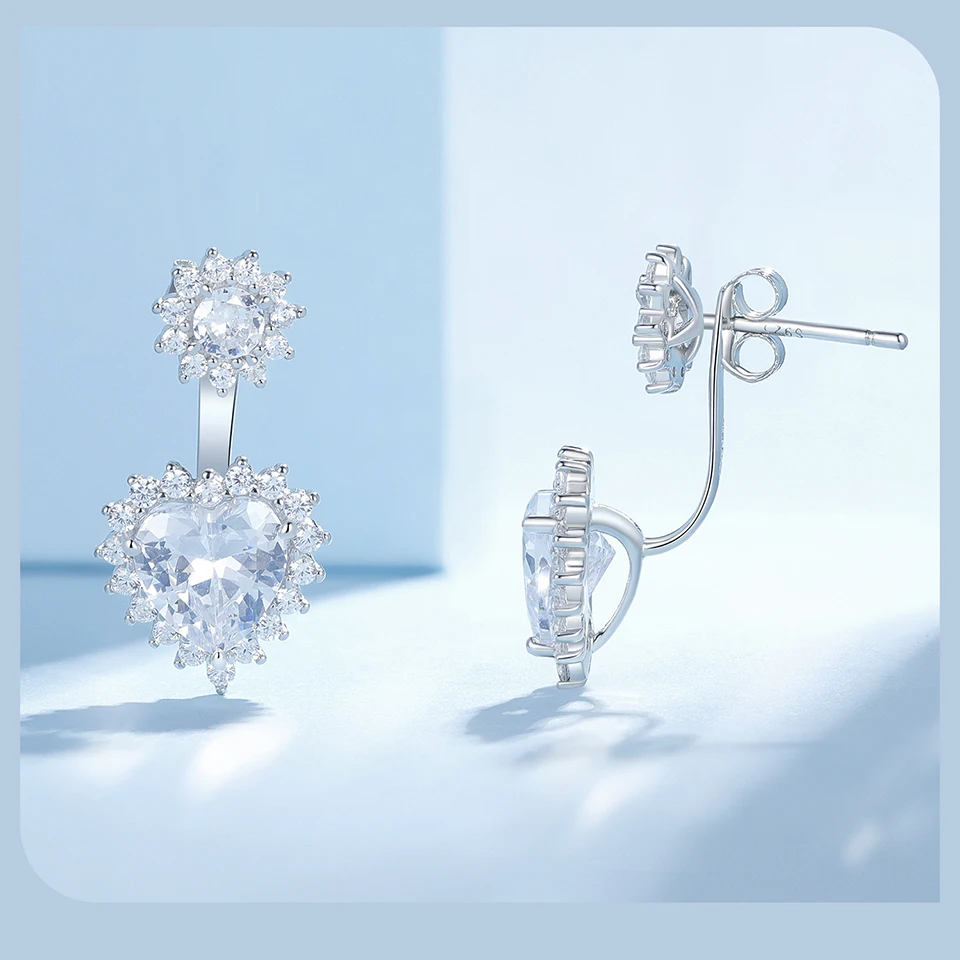 Bamoer 925 Sterling Silver Exquisite Heart-Shaped Zircon Ear Buckles Cubic Zirconia Hoop Earrings for Women Luxury Fine Jewelry