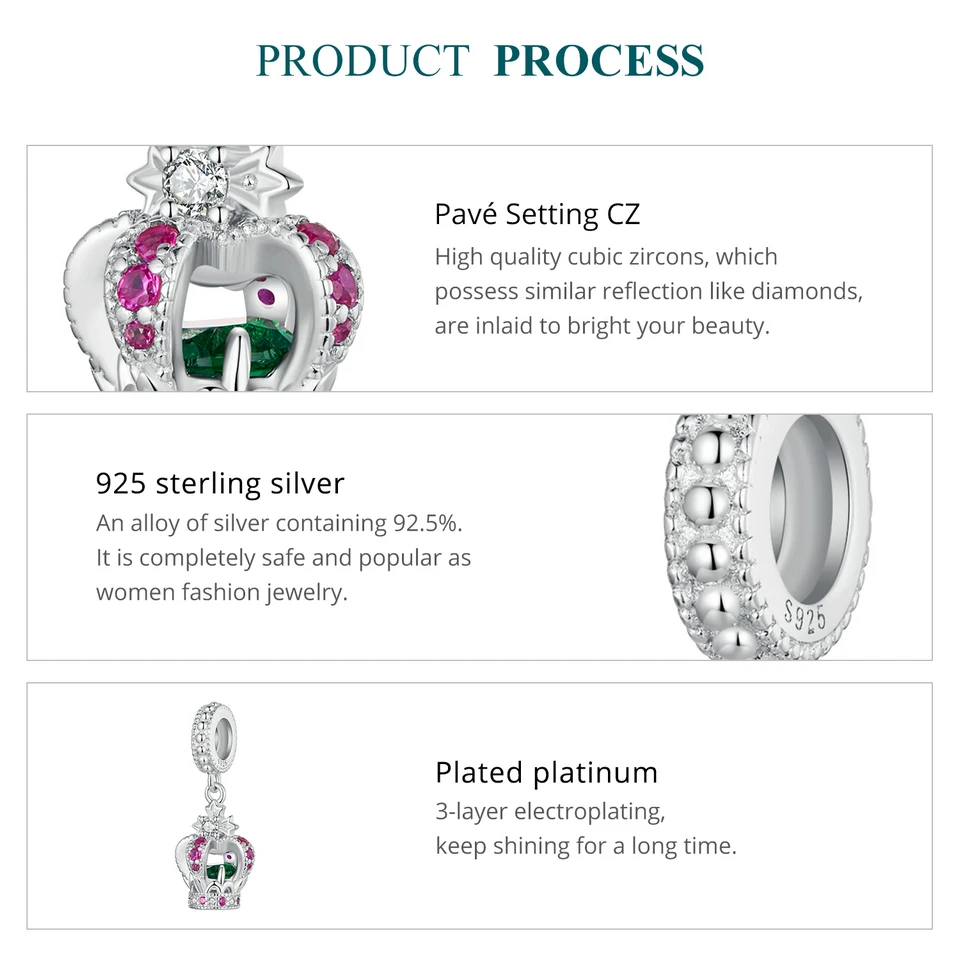 ❤ [Material] 925 Sterling Silver & Pavé Setting CZ & Plated platinum, this silver charm is Nickel-free, Lead-free, Cadmium-free, Hypoallergenic. Quality Assurance, good skin-friendly, convenient and comfortable to wear, not harmful for your health.