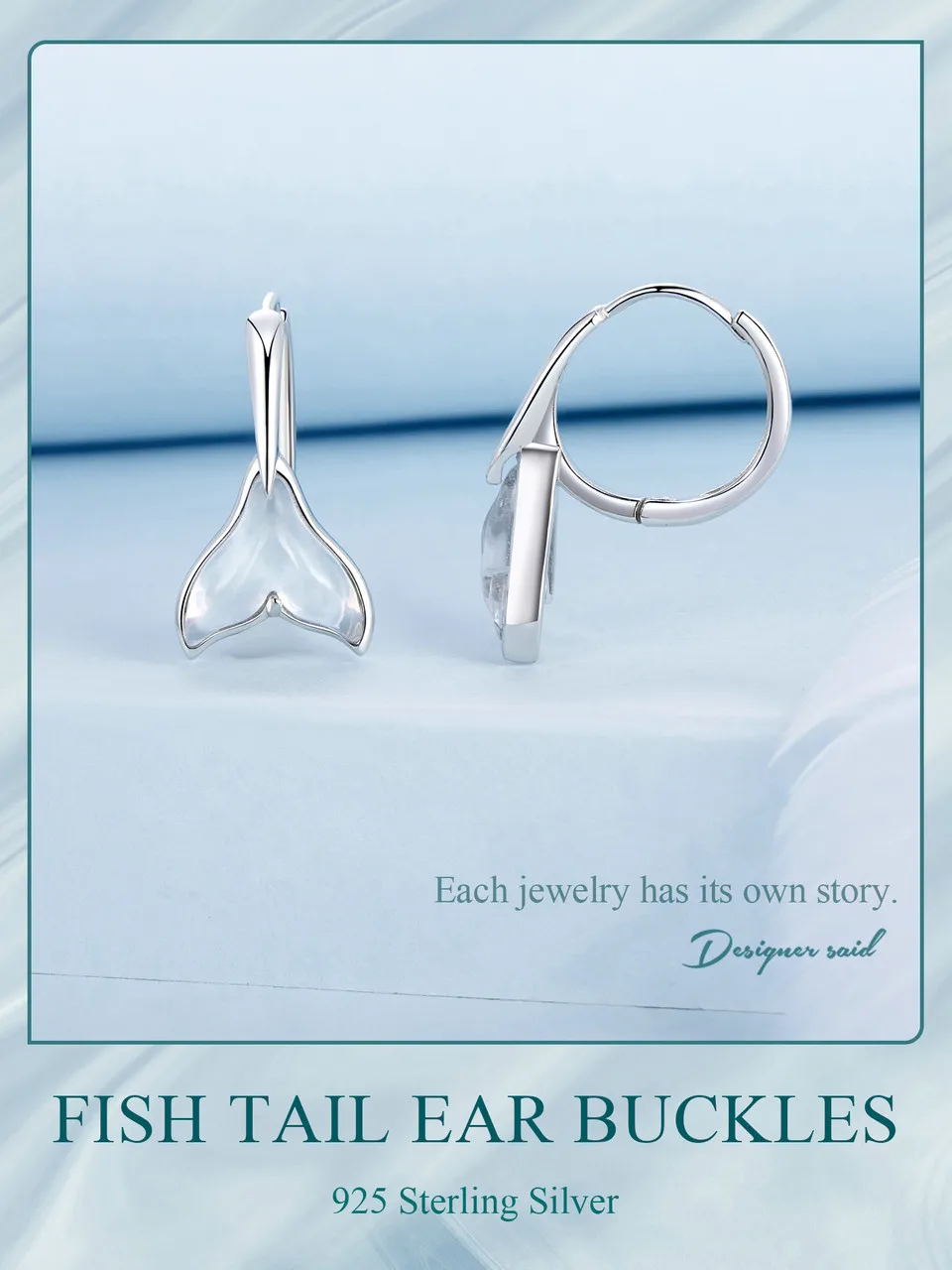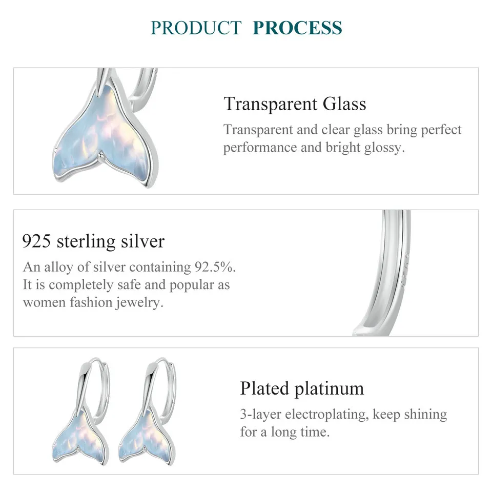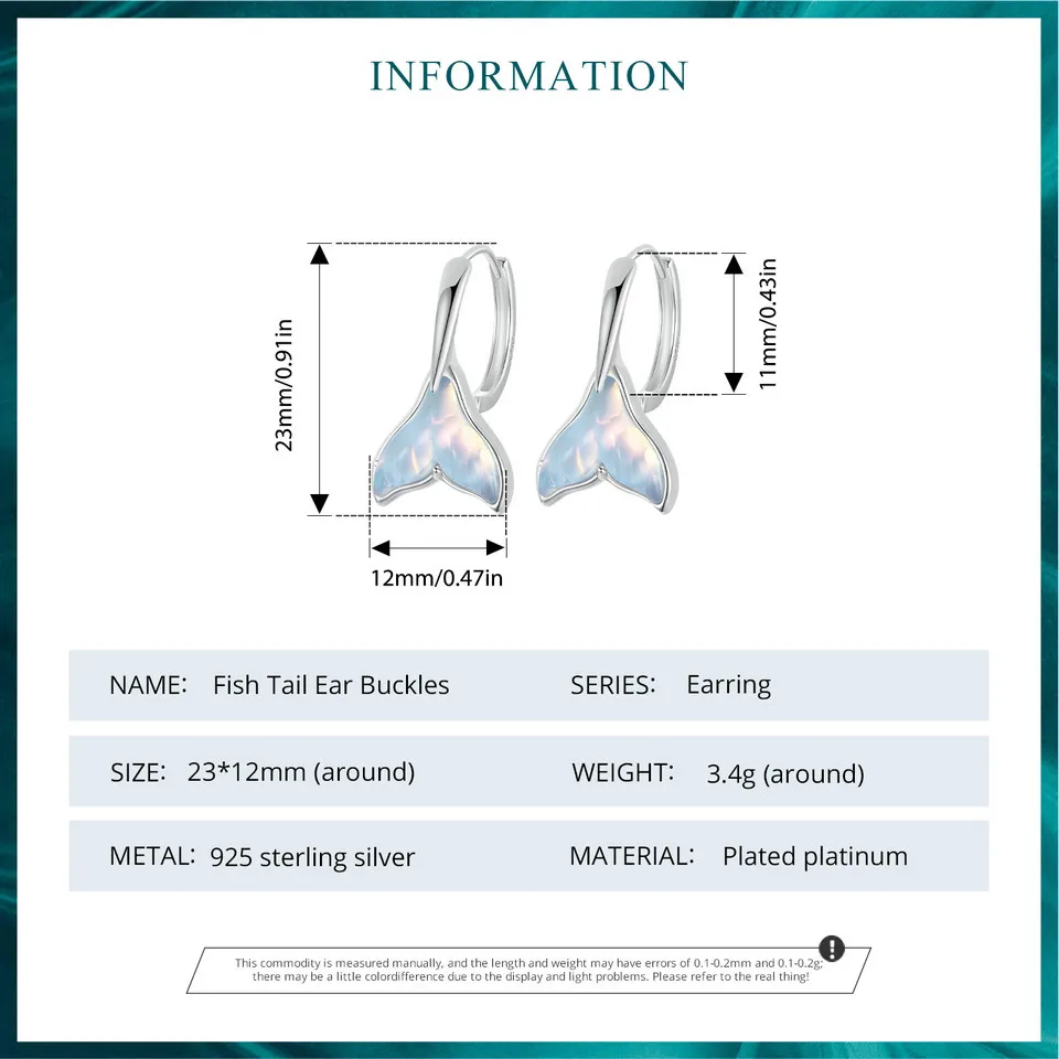 ❤ [Description] The fish tail ear buckles featuring oceanic elements in the form of iridescent blue glass fish tails creates a dreamy and elegant sence.
