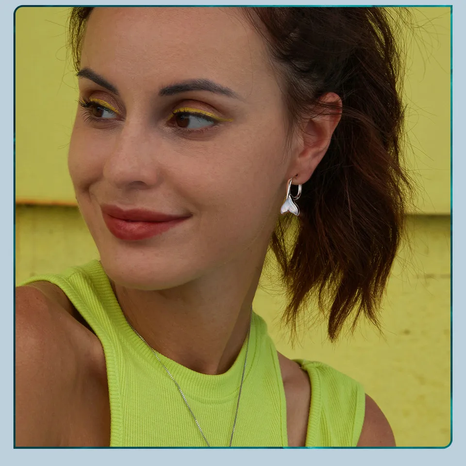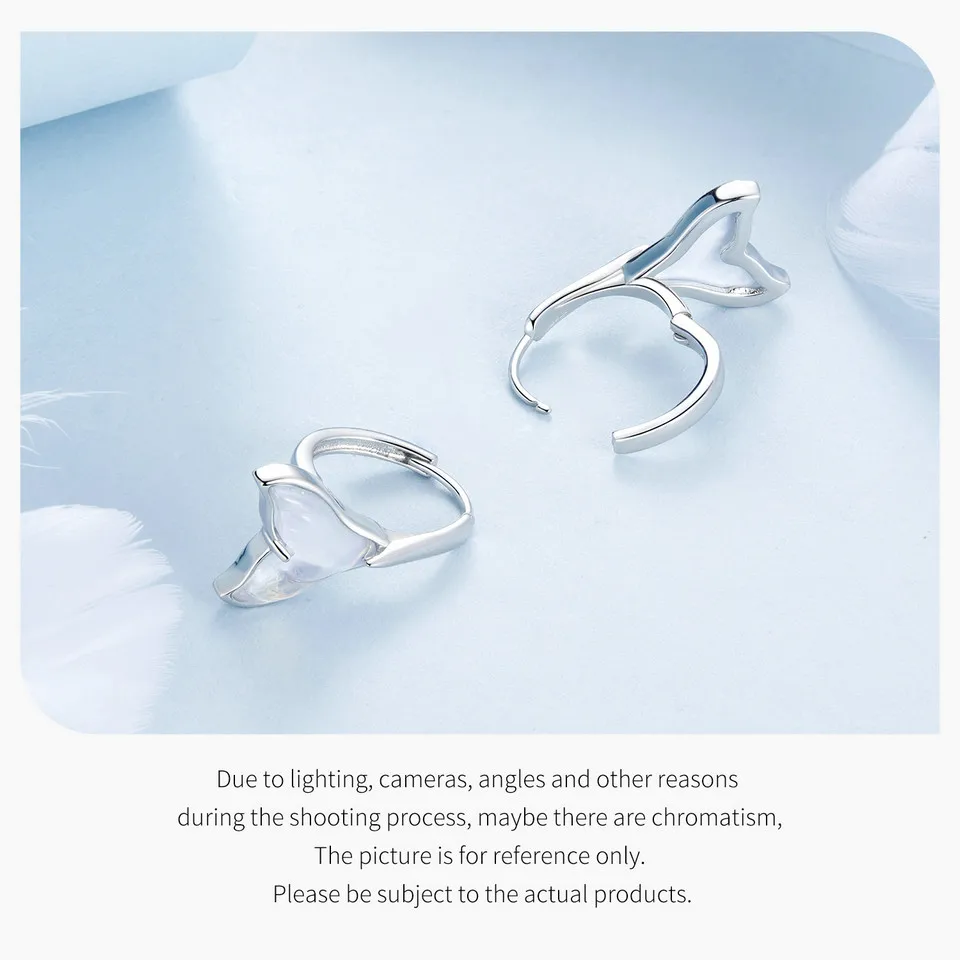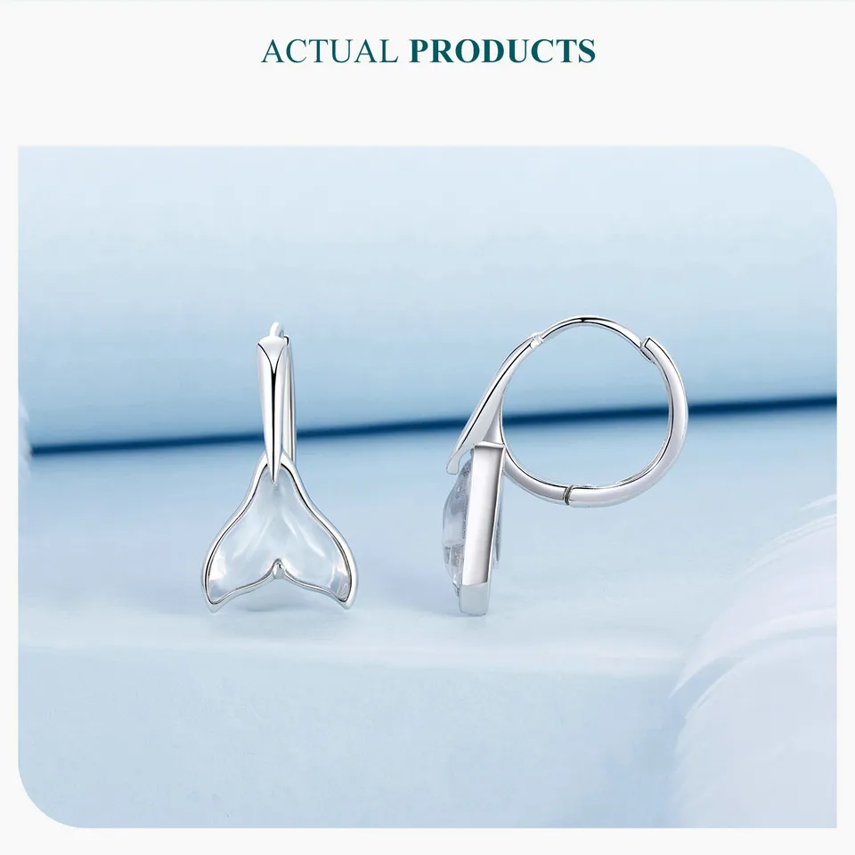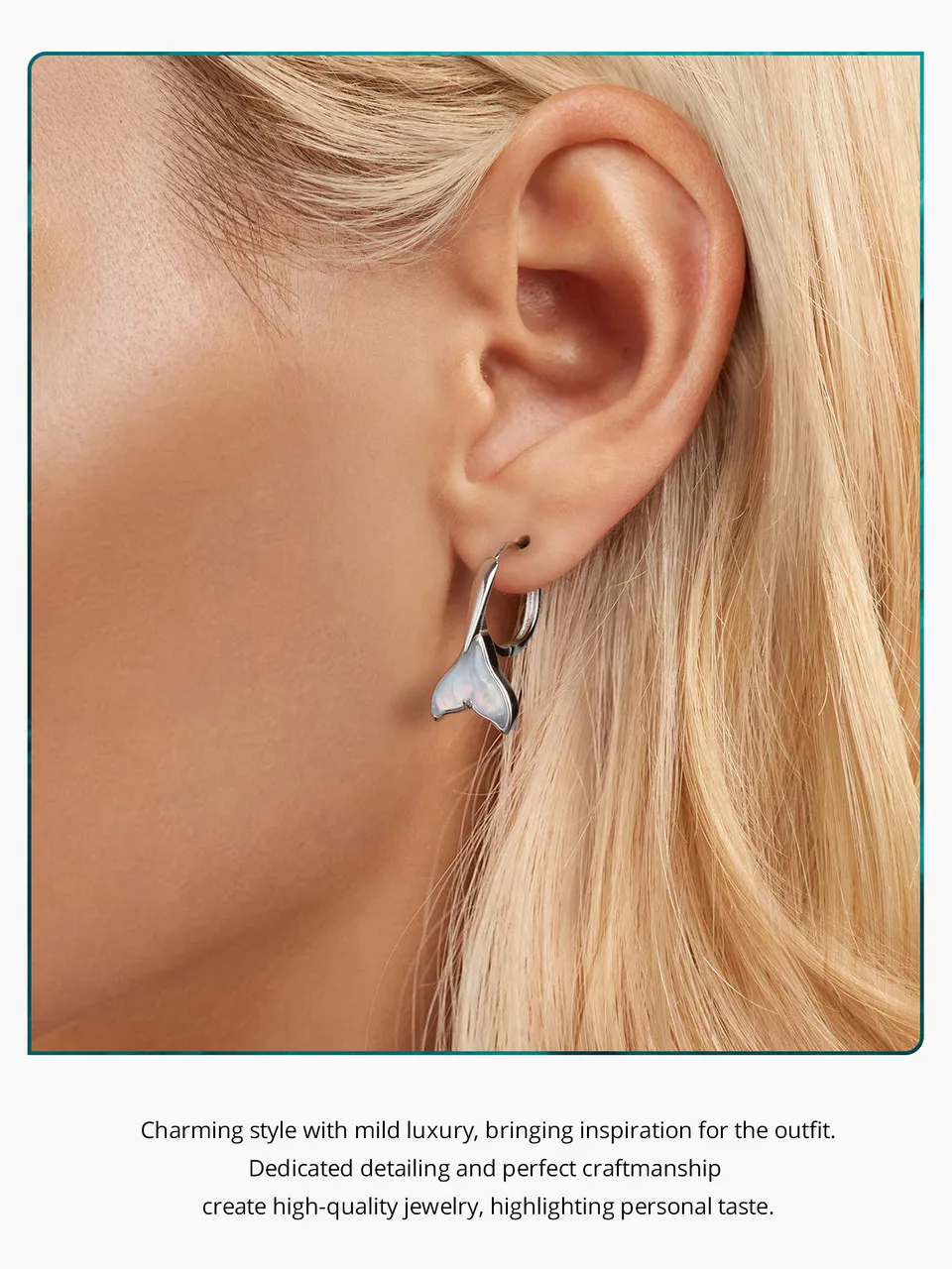 ❤ [Description] The fish tail ear buckles featuring oceanic elements in the form of iridescent blue glass fish tails creates a dreamy and elegant sence.