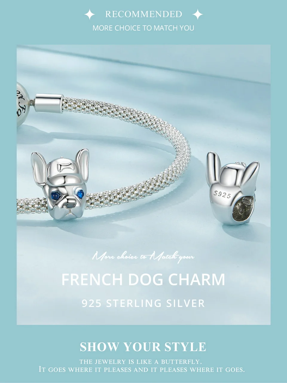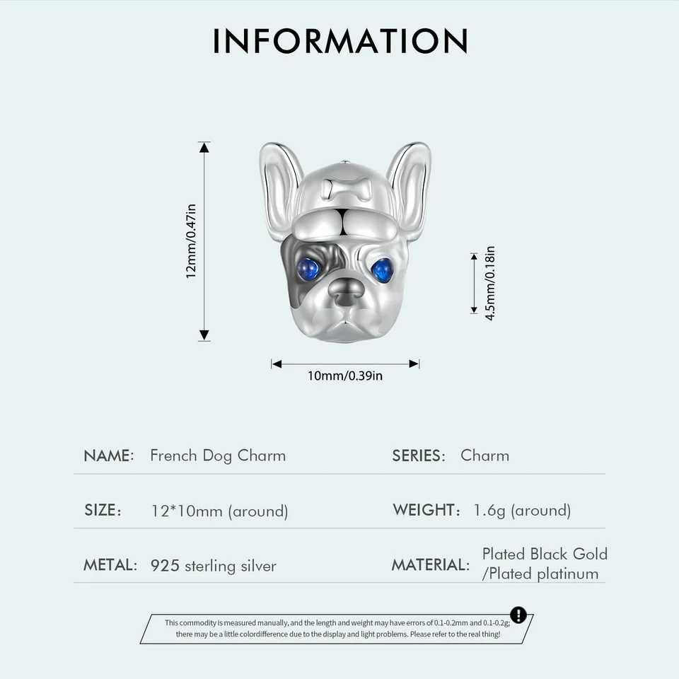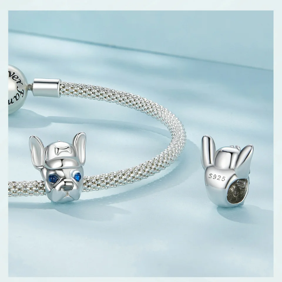 Bamoer 925 Sterling Silver French Dog Beads Cute Dog Charms for Women Girls Bracelet & Bangle DIY Fine Jewelry