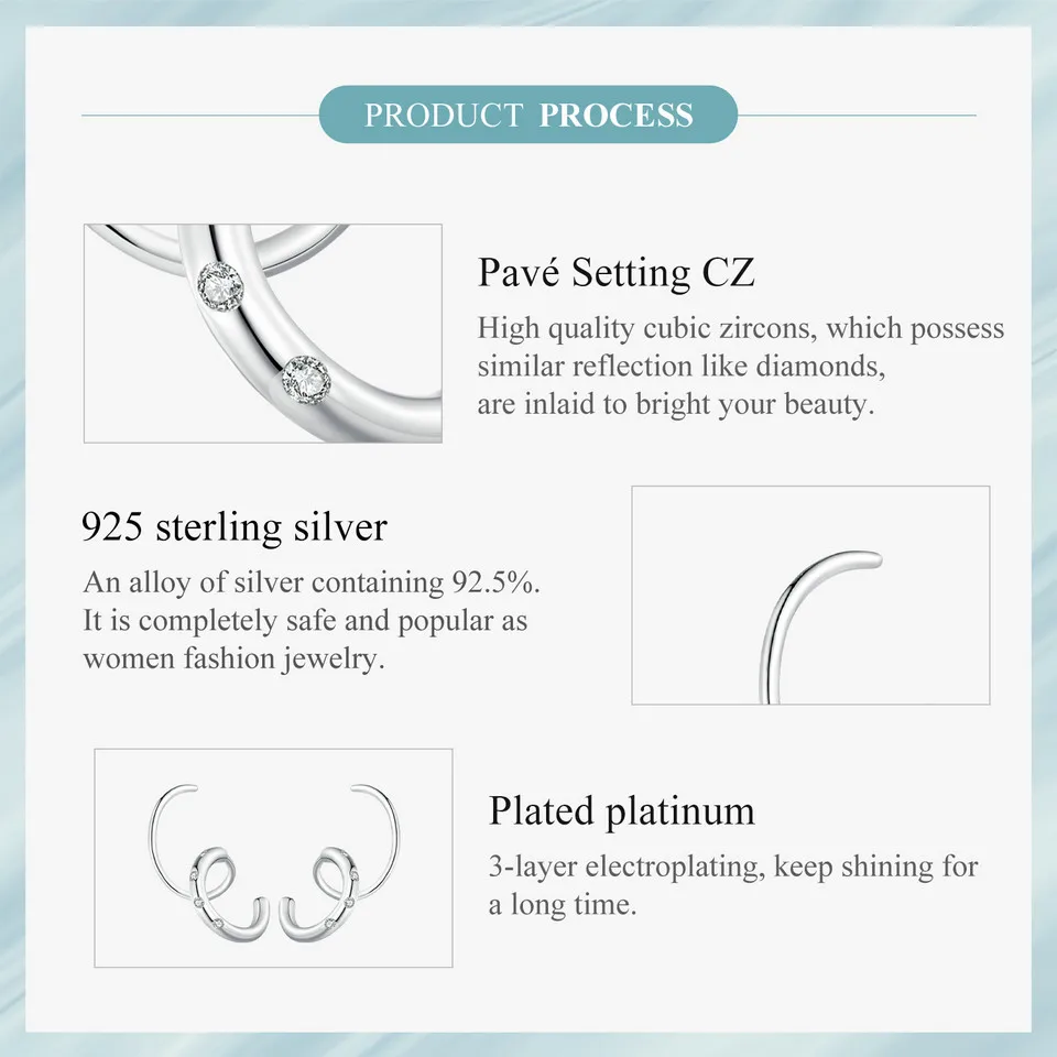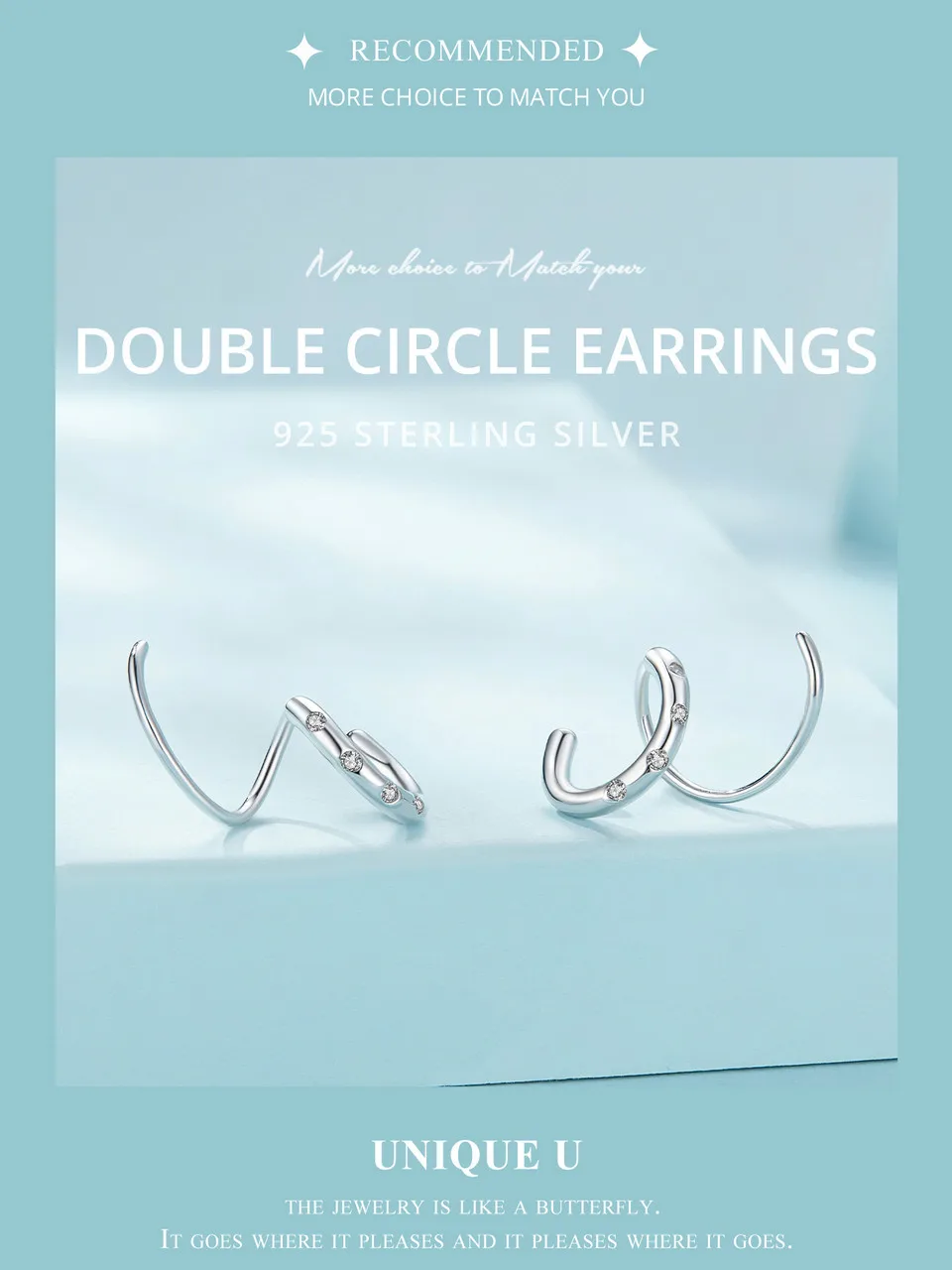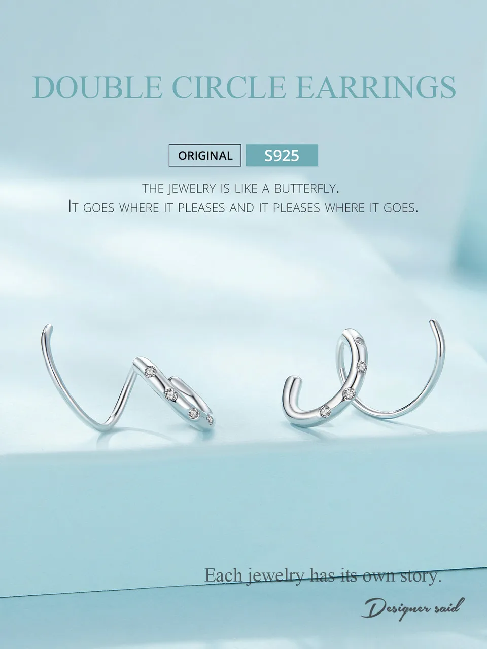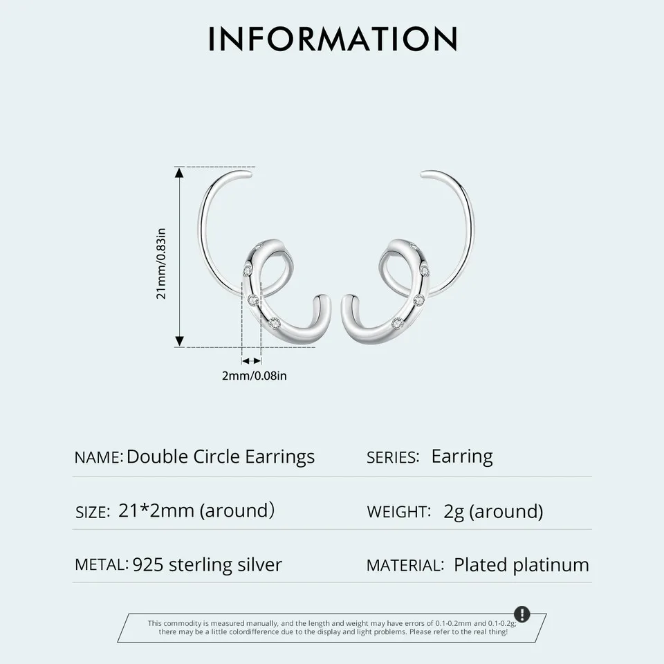 Bamoer 925 Sterling Silver Geometric Line Earrings Double Circle Stud Earrings for Women Original Design Fine Jewelry Gift
