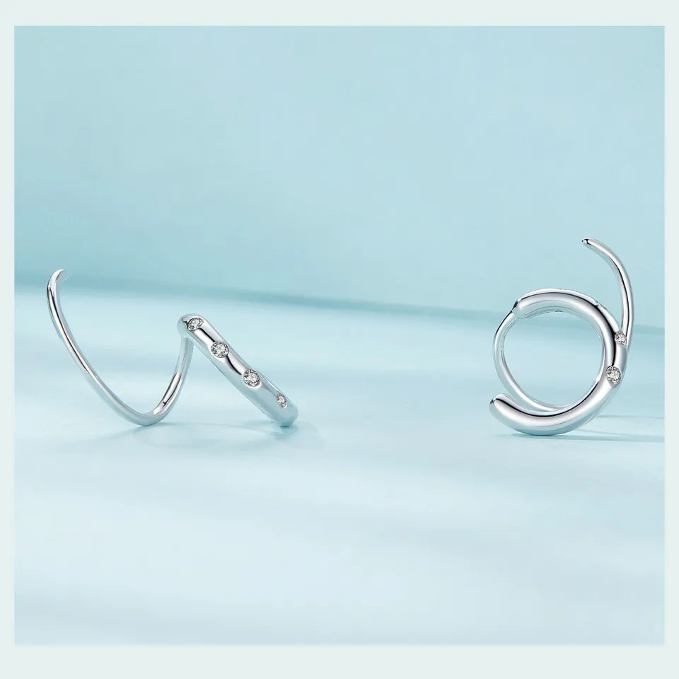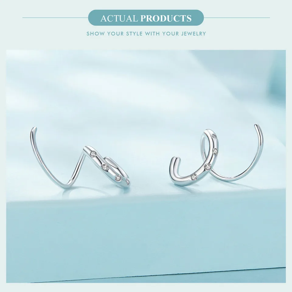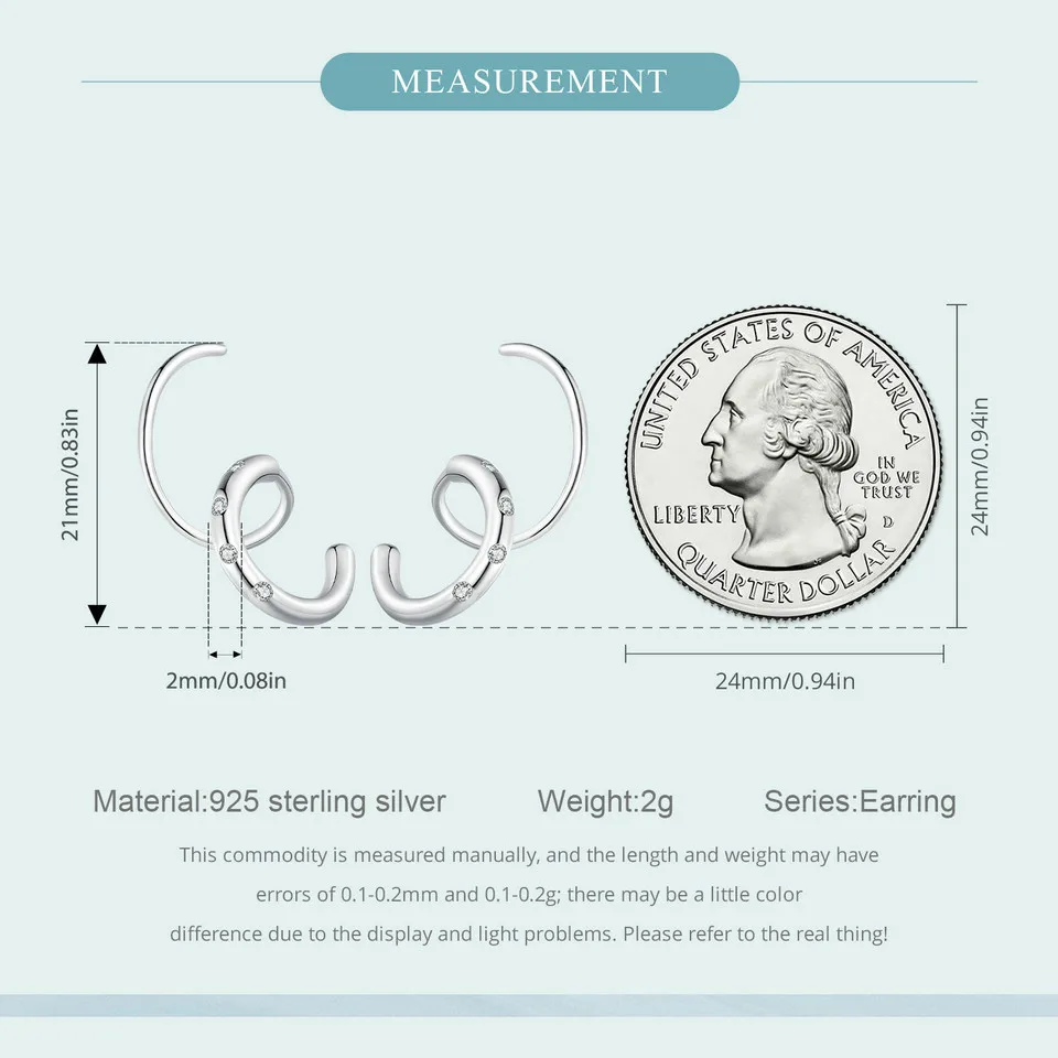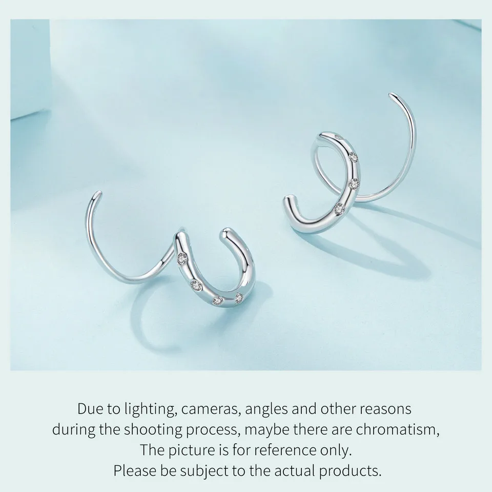 Bamoer 925 Sterling Silver Geometric Line Earrings Double Circle Stud Earrings for Women Original Design Fine Jewelry Gift