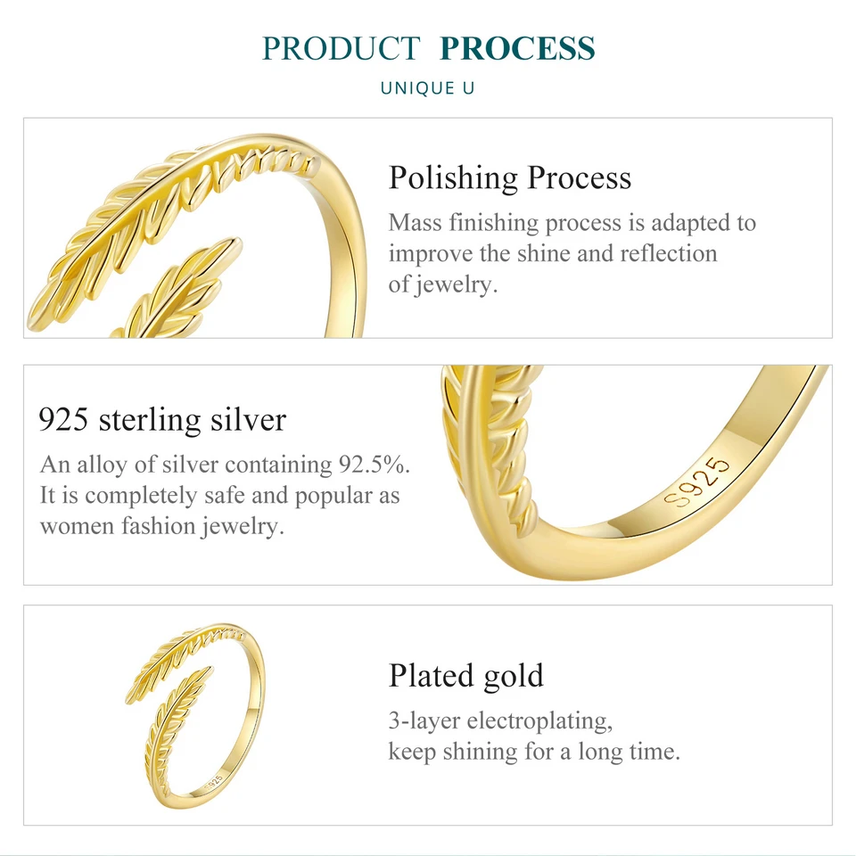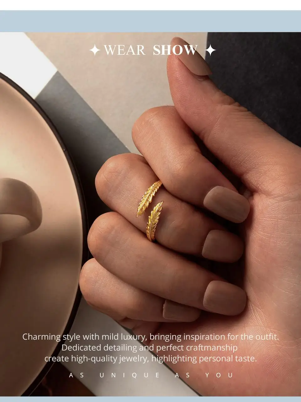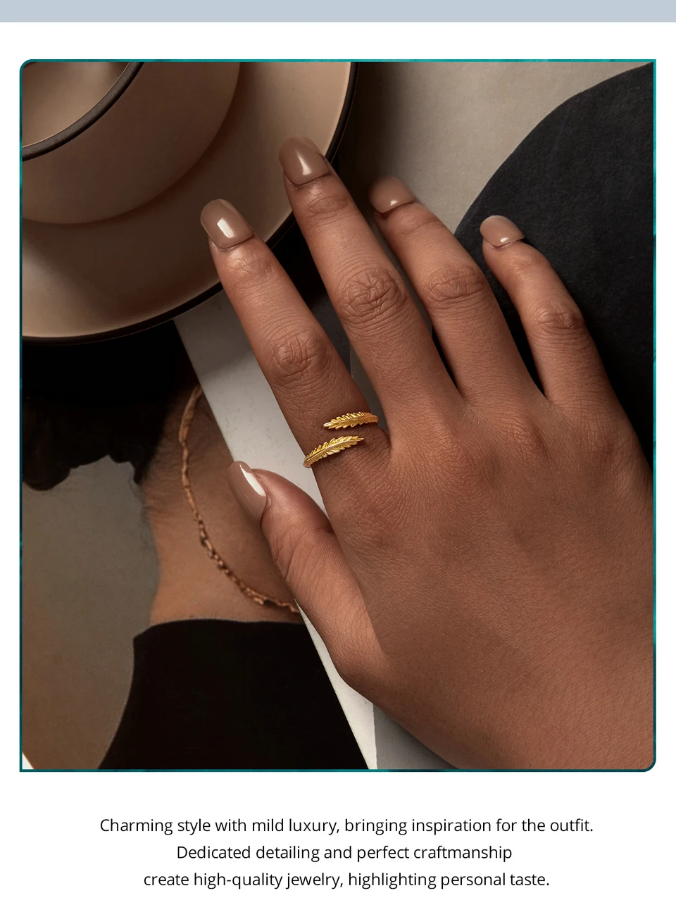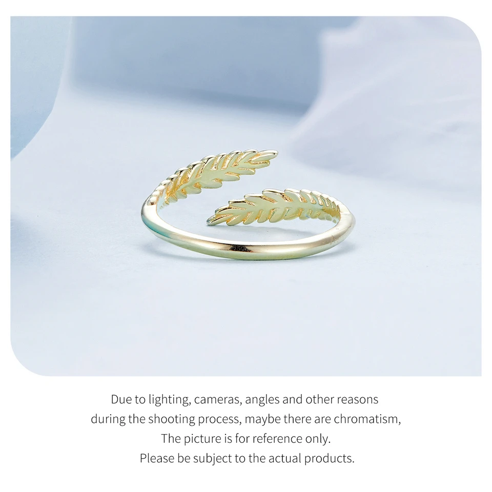 Bamoer 925 Sterling Silver Gold Leaf Opening Ring Simple Leaves Vine Adjustable Ring for Women Chic Fine Jewelry