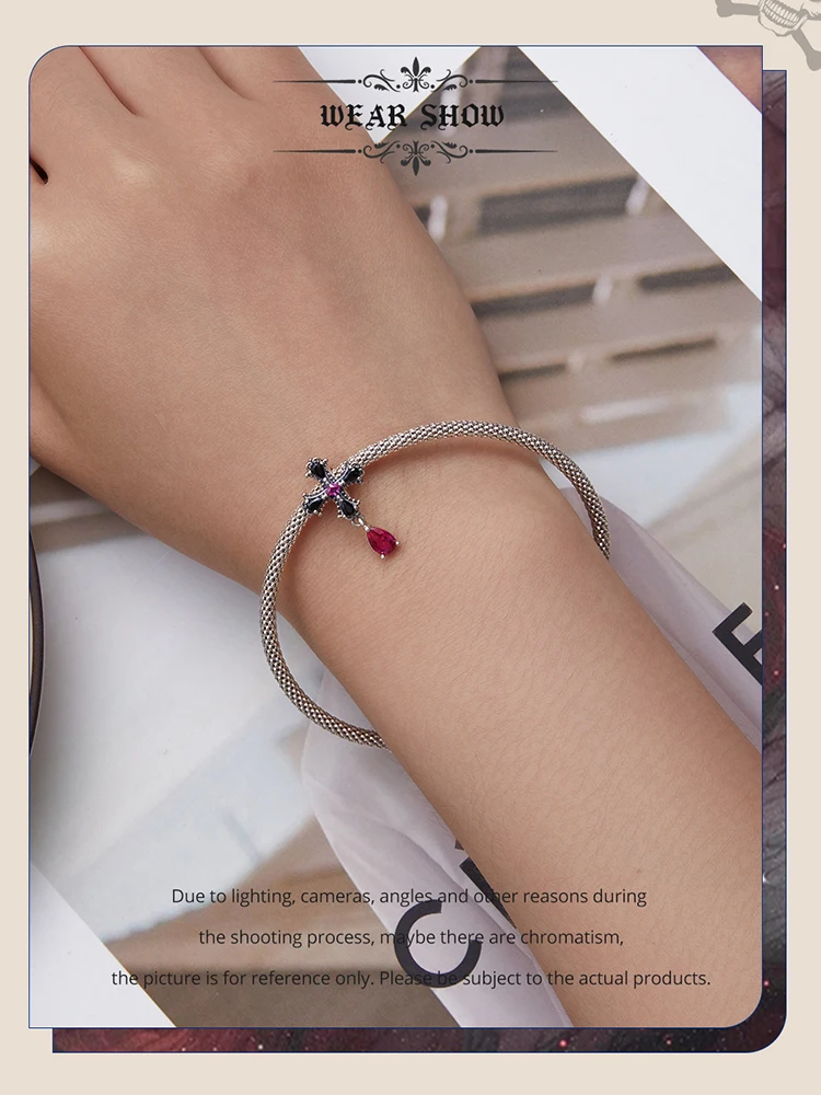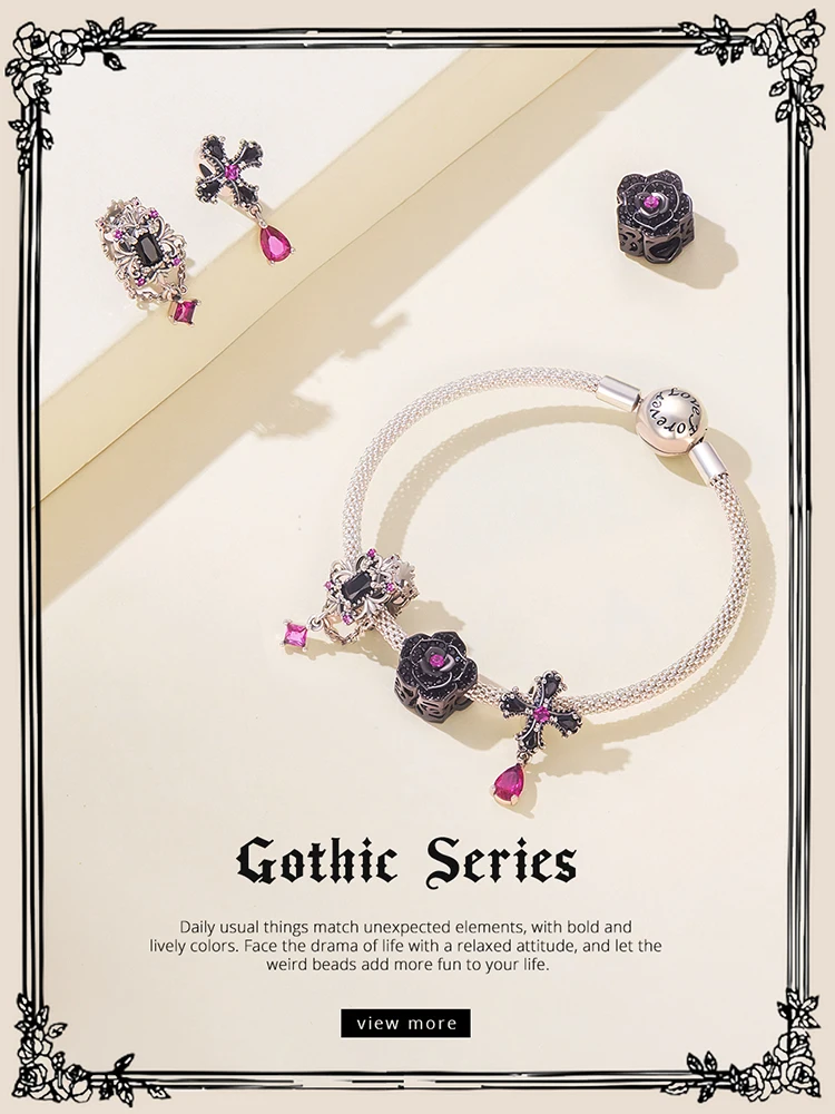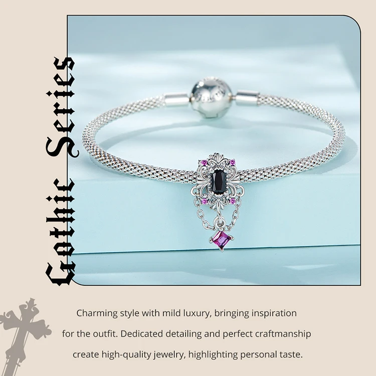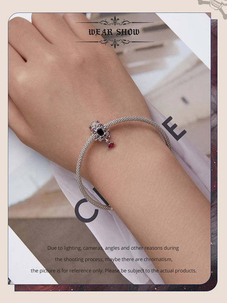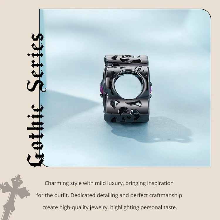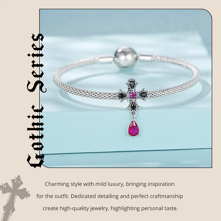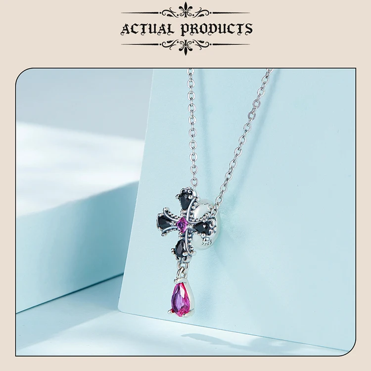 Bamoer 925 Sterling Silver Gothic Cross Charms fit for Women DIY Making Bracelet & Bangle Fine Jewelry Bat Bead Halloween Party