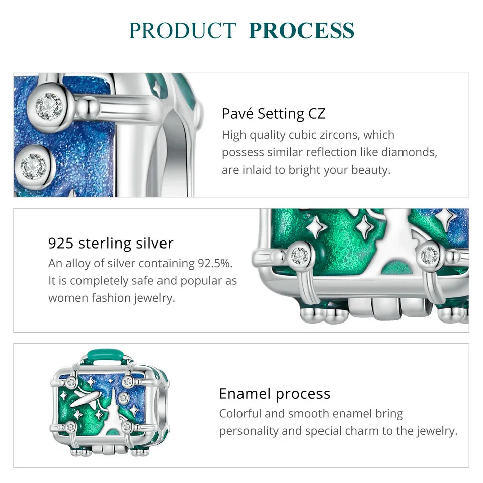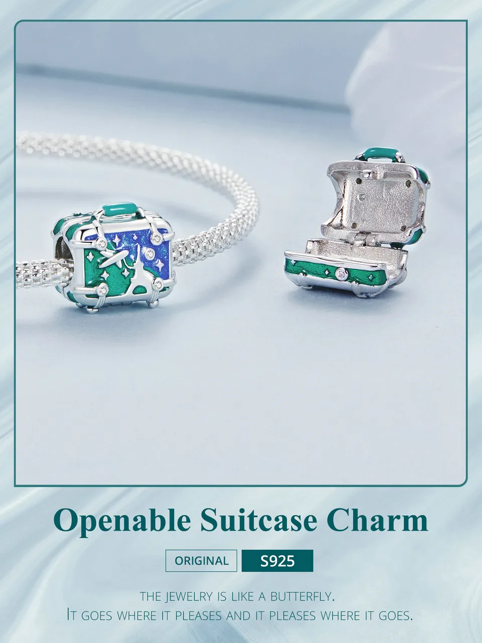 BAMOER 925 Sterling Silver Graduation Season Charms Beads Openable Suitcase Dangle Fit Original Charm Bracelet Jewelry