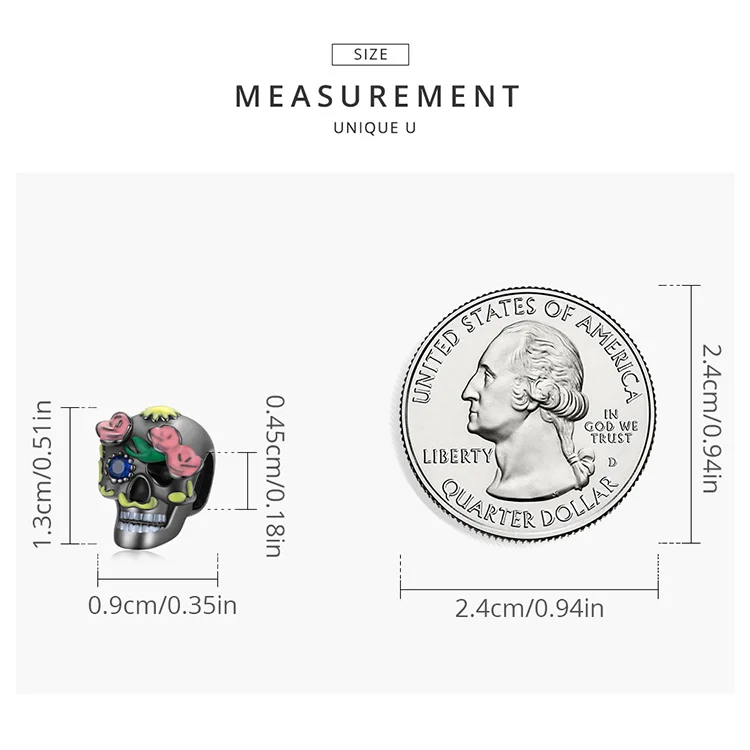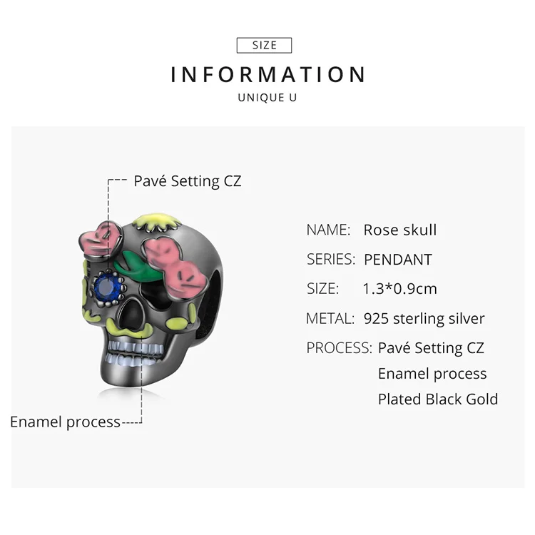 Rose skull Size:1.3*0.9cm,aperture:0.45cm, Weight:2.2g