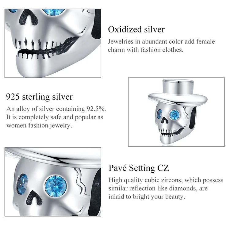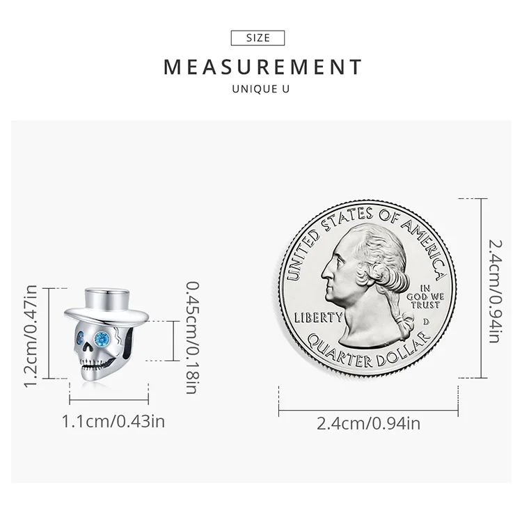 Gentleman skull Size:1.2*1.1cm,aperture:0.45cm, Weight:2.1g
