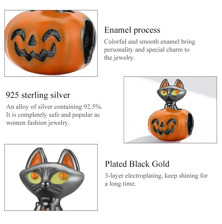 ❤ 【Description】The pumpkin and the naughty little black cat charm is unique and eye-catching, adding a sense of fun to Halloween. Use the exquisite oil dripping technology to present bright colors.