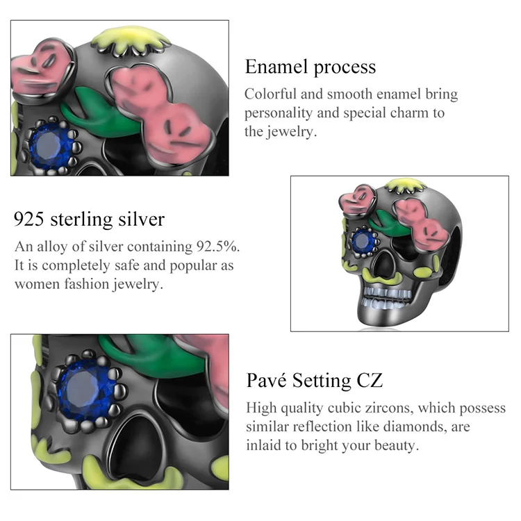 ❤ 【Material】 925 Sterling silver & Enamel process & Plated Black Gold, this silver charm is Nickel-free, Lead-free, Cadmium-free, Hypoallergenic. Quality Assurance, good skin-friendly, convenient and comfortable to wear, not harmful for your health.