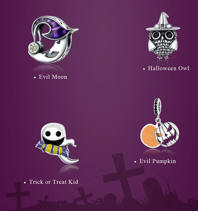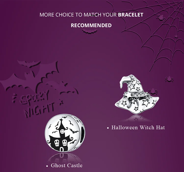 bamoer 925 Sterling Silver Halloween Skull Man Ghost Haunted House Charm for Original Luxury Brand Female DIY Jewelry SCC1617