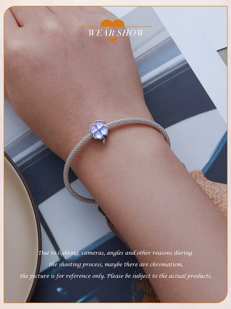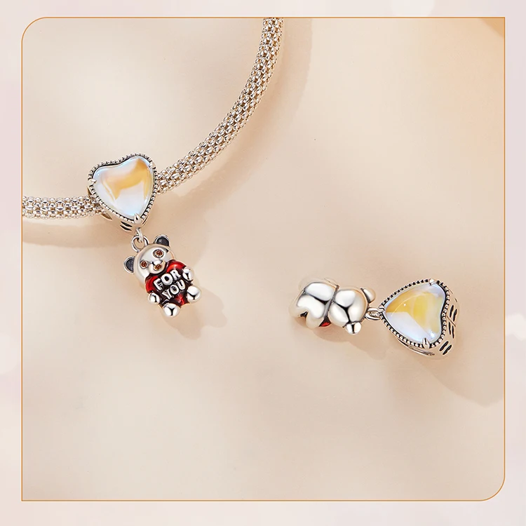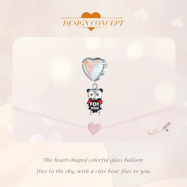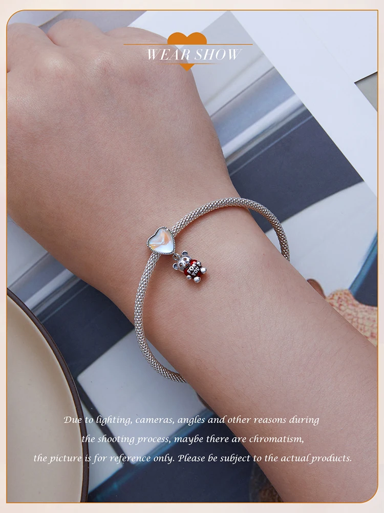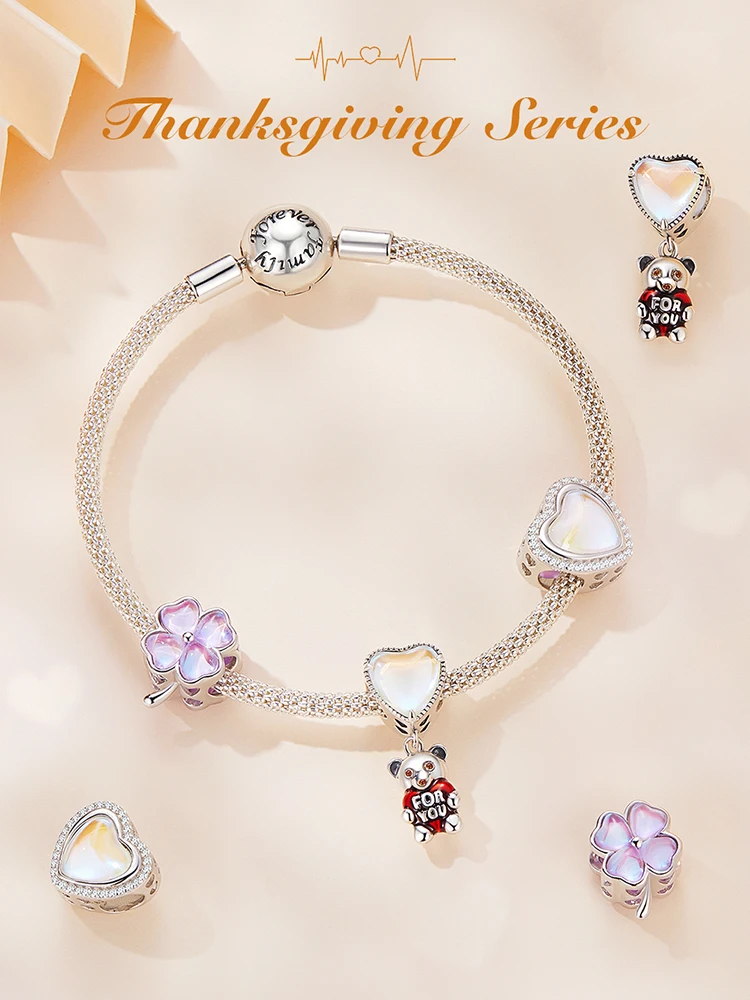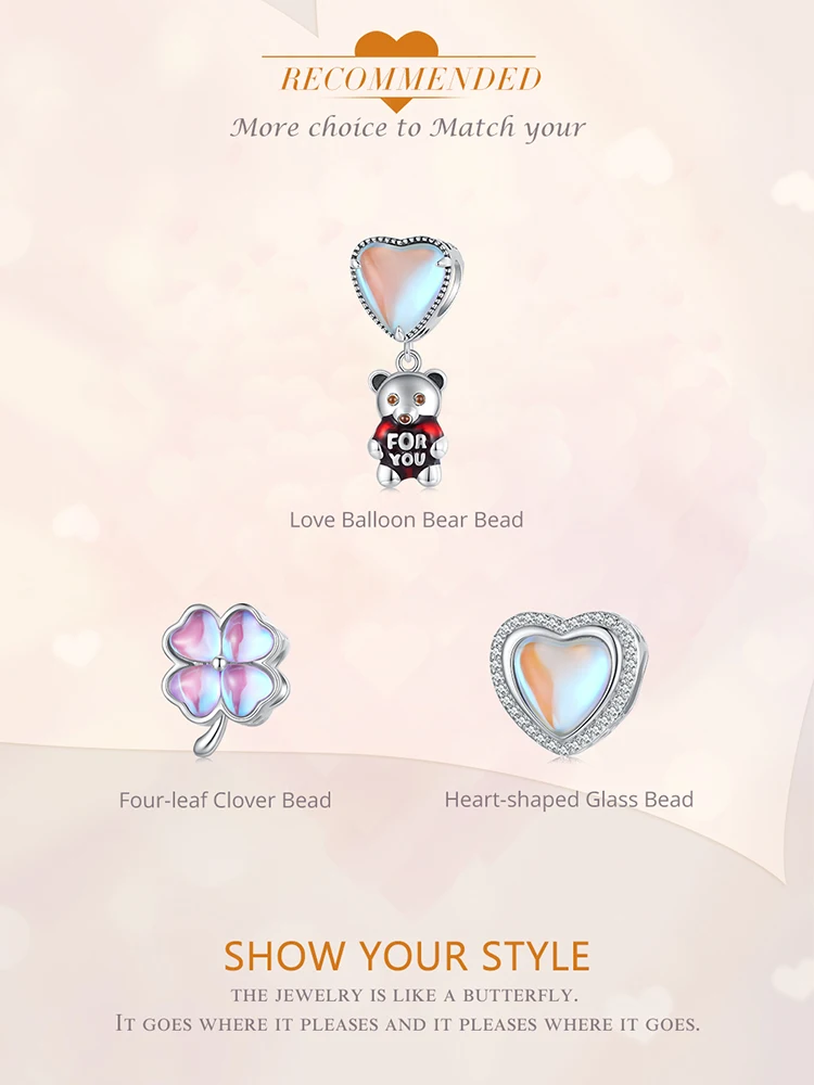 Bamoer 925 Sterling Silver Heart Balloon Bear Pendant Charms Four-leaf Clover Bead for Women Bracelet Bangle DIY Fine Jewelry