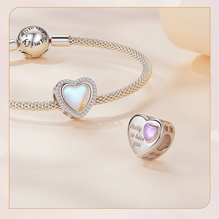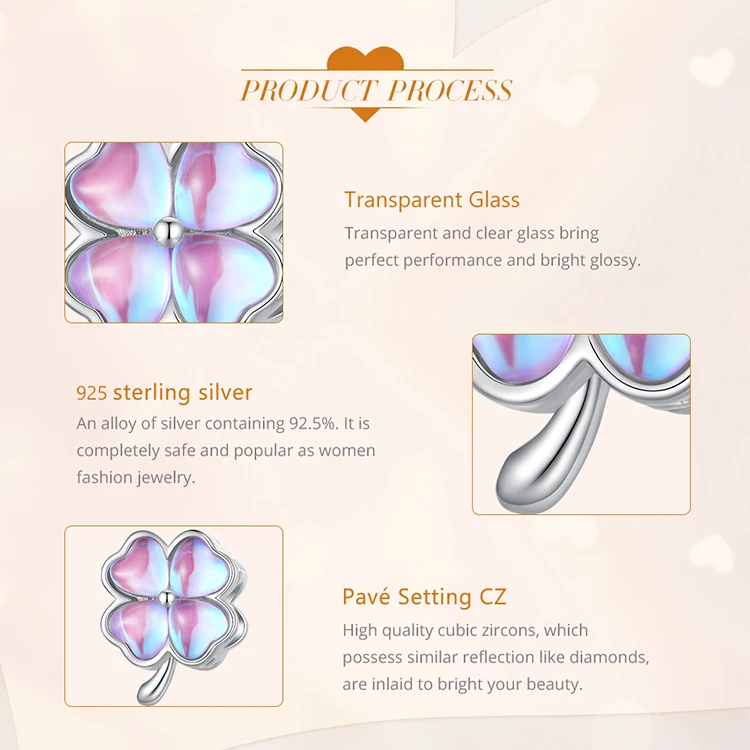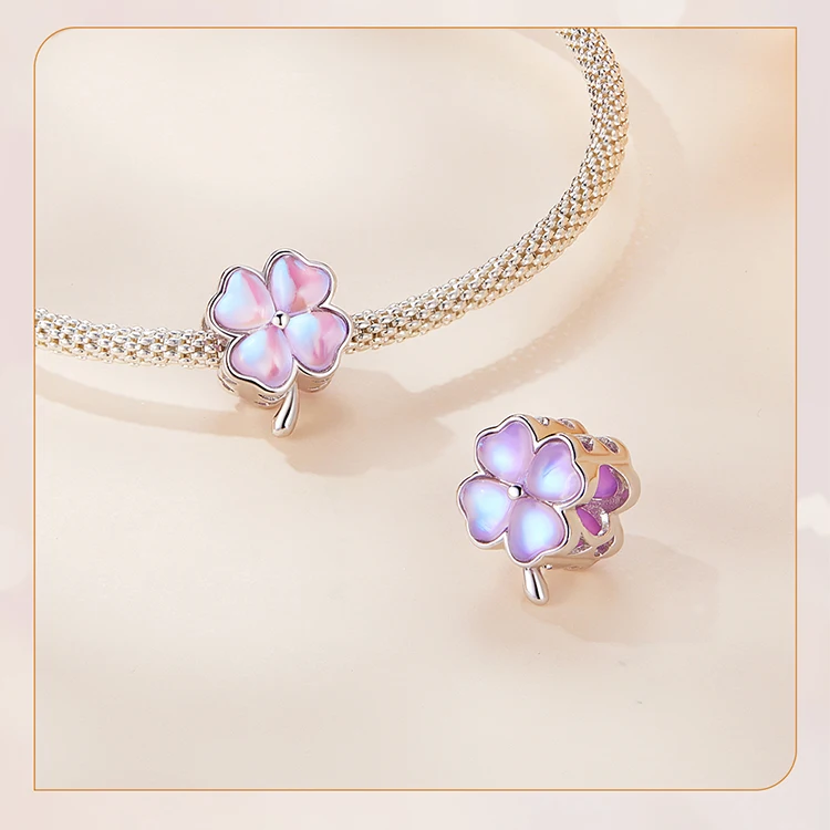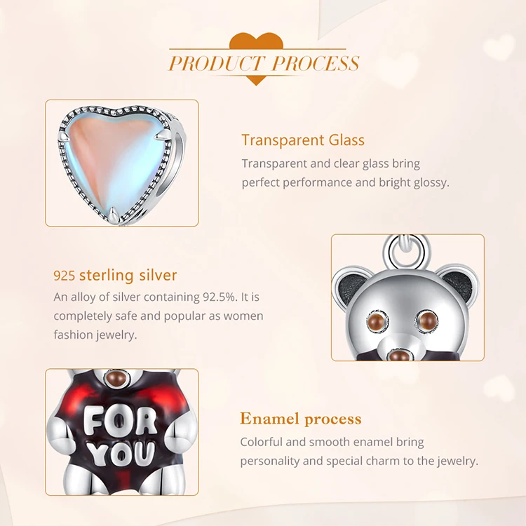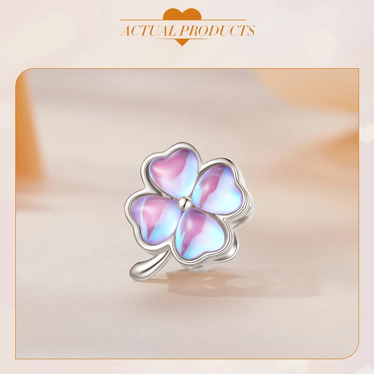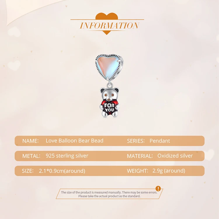 Bamoer 925 Sterling Silver Heart Balloon Bear Pendant Charms Four-leaf Clover Bead for Women Bracelet Bangle DIY Fine Jewelry