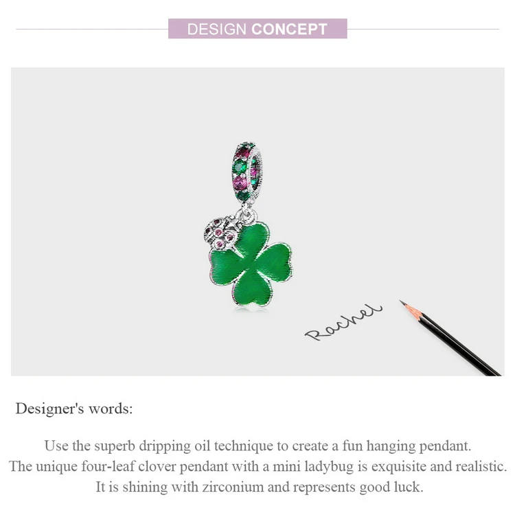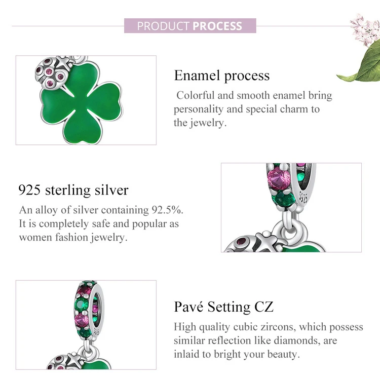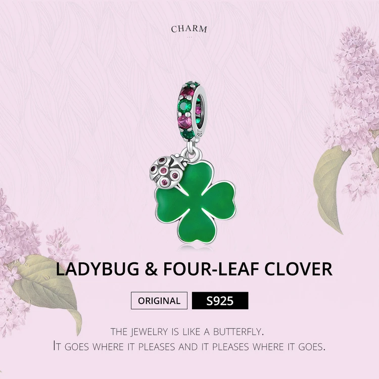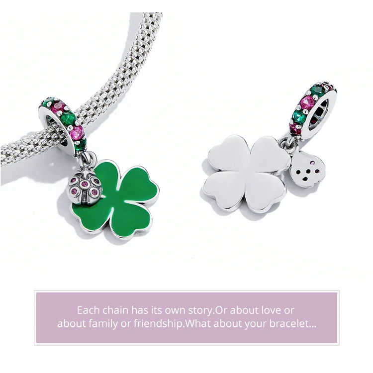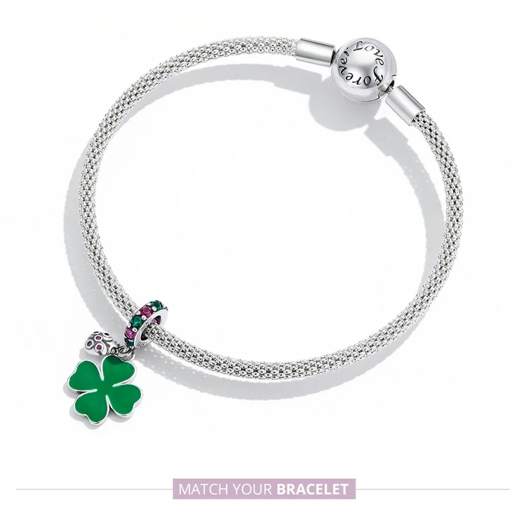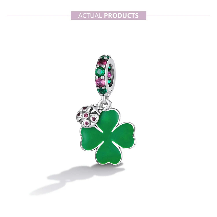 Bamoer 925 Sterling Silver Heart Charm Green Four Leaf Charm Bead Pendant fit Original Bracelet Necklace For Women Fine Jewelry
