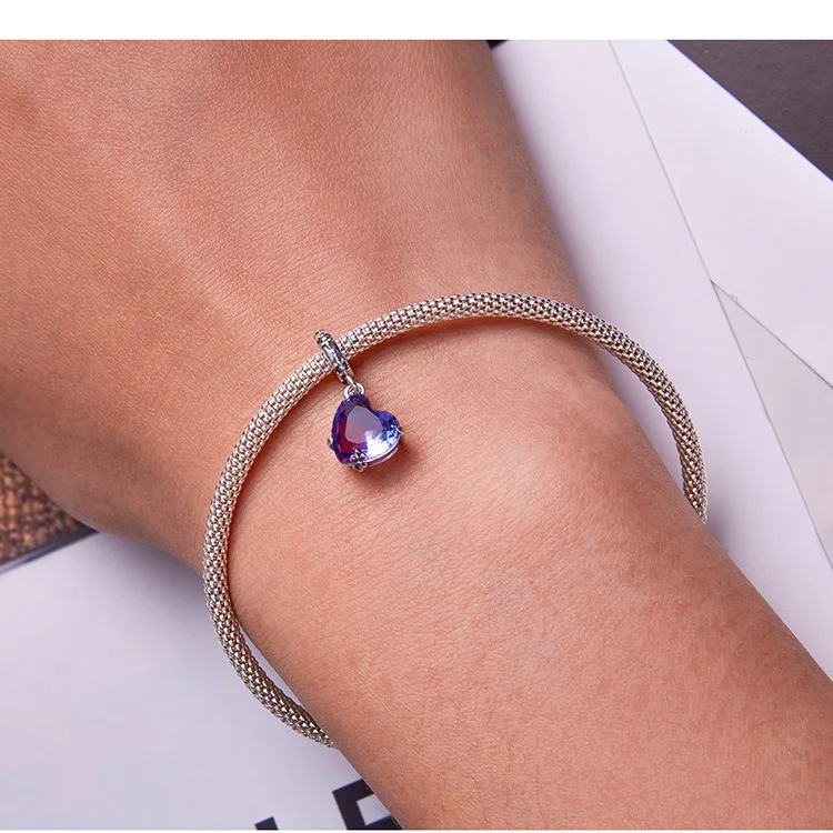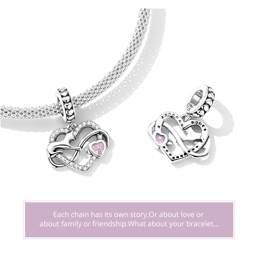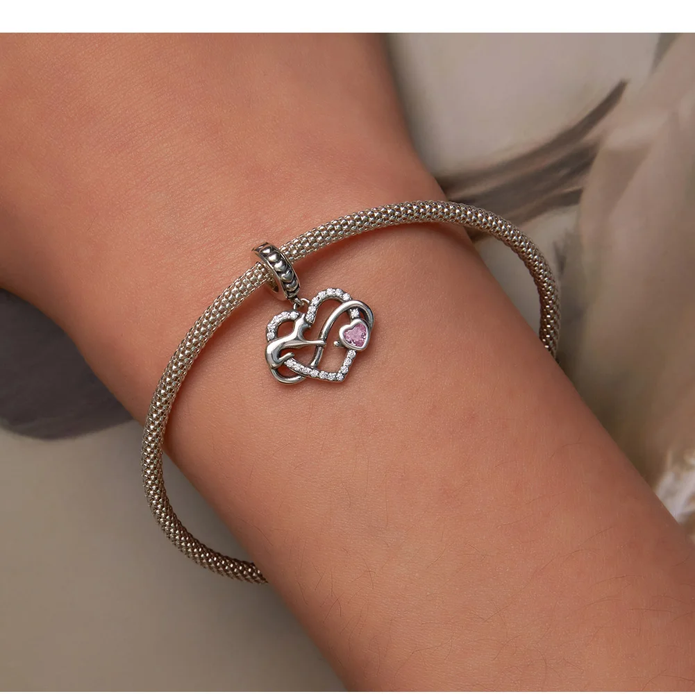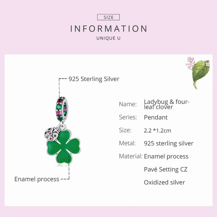 Bamoer 925 Sterling Silver Heart Charm Green Four Leaf Charm Bead Pendant fit Original Bracelet Necklace For Women Fine Jewelry