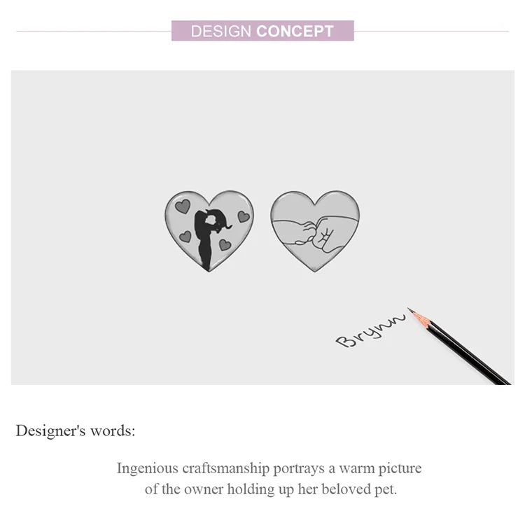 Material: S925+Oxidized silver+Enamel process Size;1*1.1cm Description: Ingenious craftsmanship portrays a warm picture of the owner holding up her beloved pet.