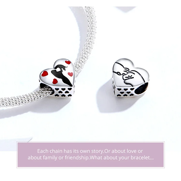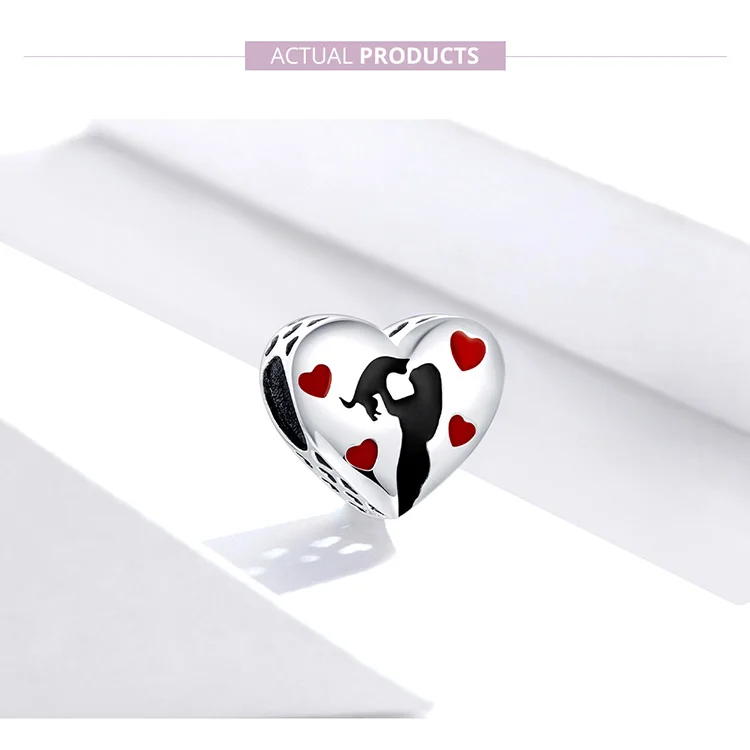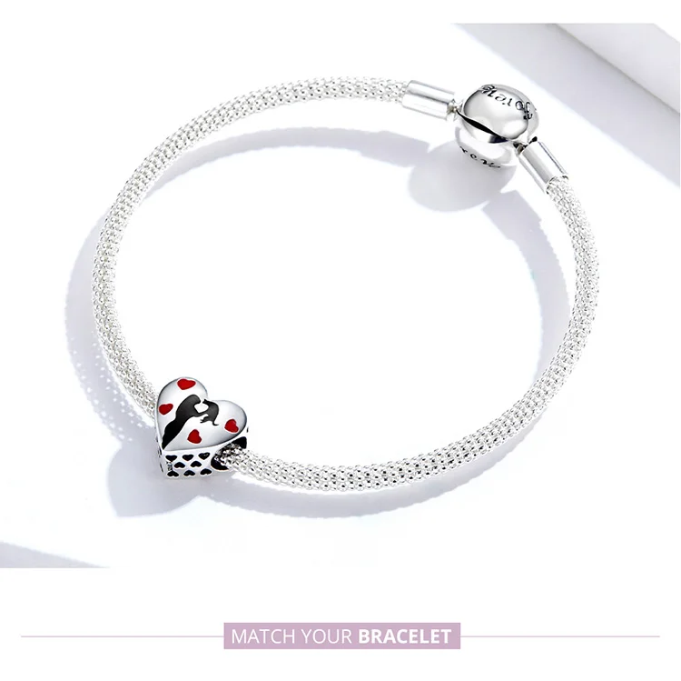 bamoer 925 Sterling Silver Heart Shape Charm for Original Snake 3mm Bracelet Black Enamel and Heart Metal Beads SCC1508