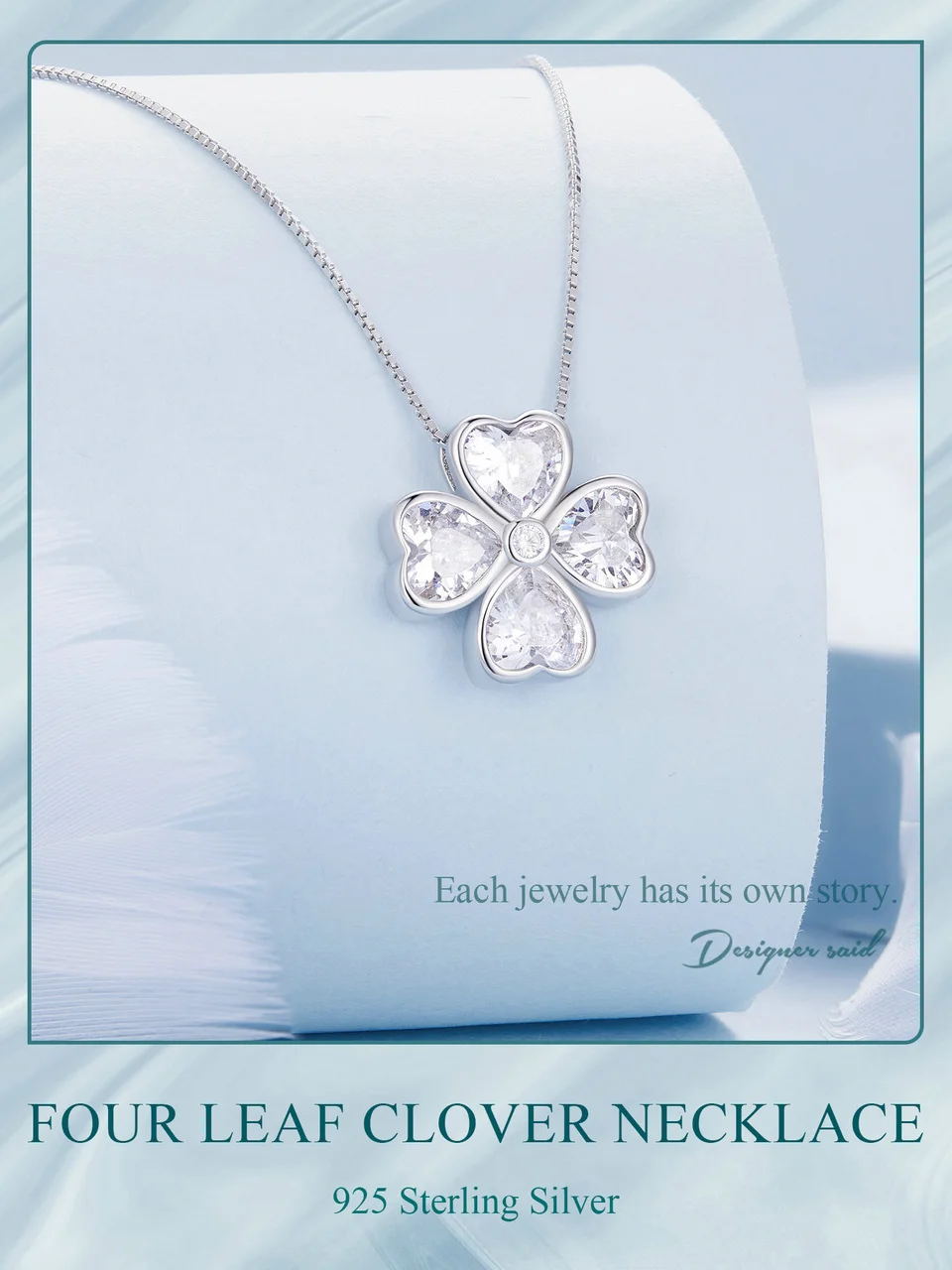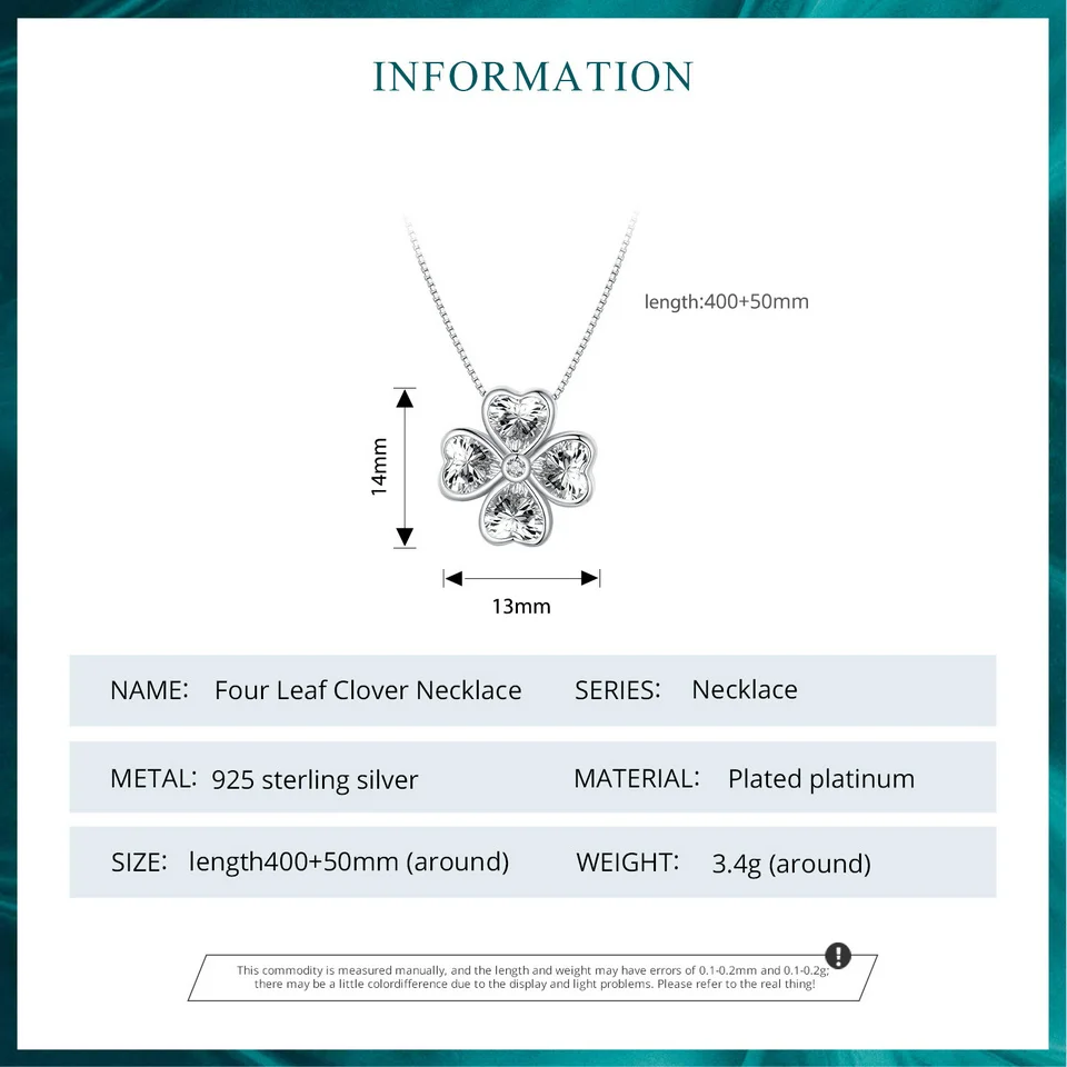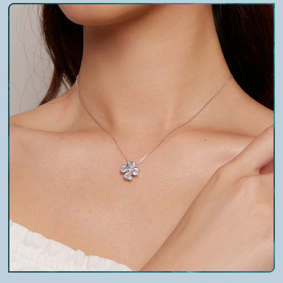 ❤ 【Description】The distinctive heart-shaped petal four leaf clover shape is embellished with glittering zircons, which is beautiful and generous, signifying good luck and happiness.