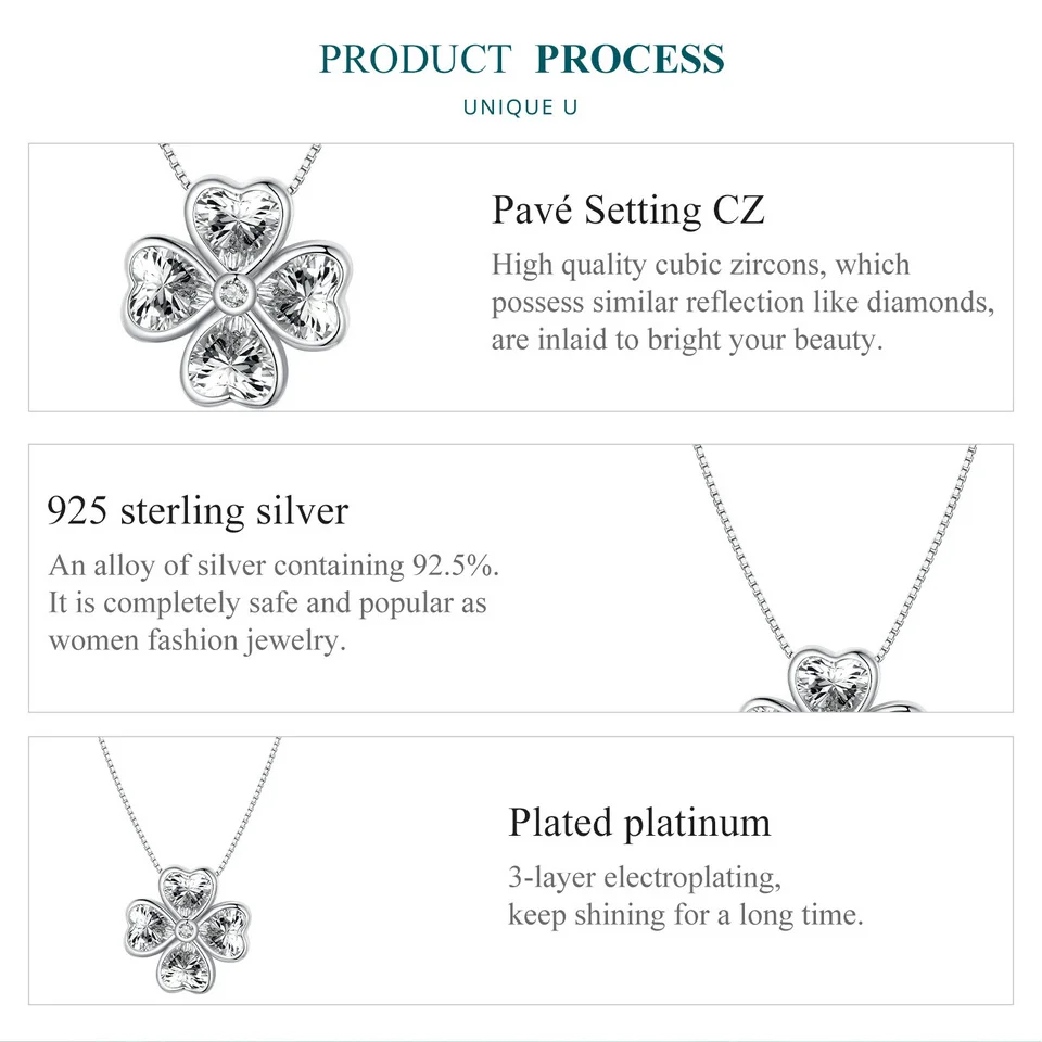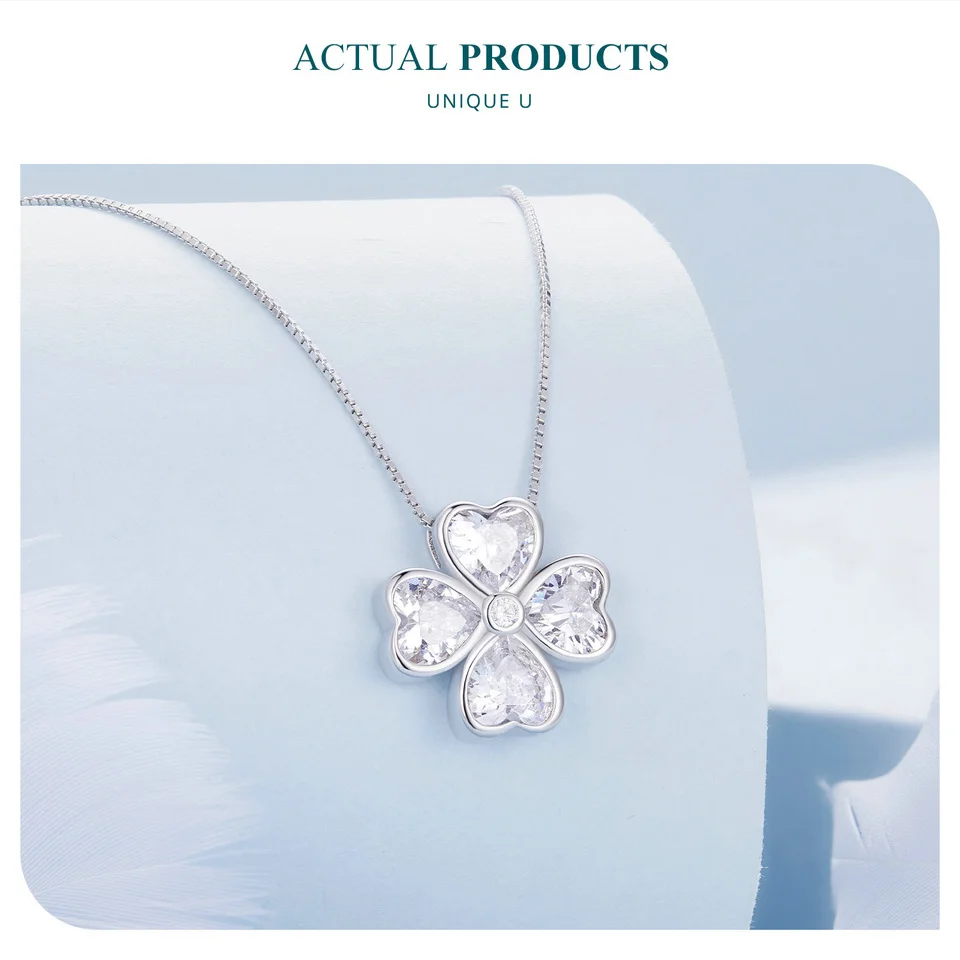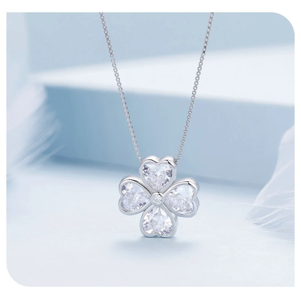 Bamoer 925 Sterling Silver Heart Shapped Lucky Four Leaf Clover Pendant Necklace Black Love Cross Neck Chain for Women