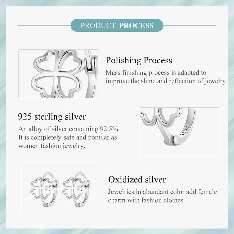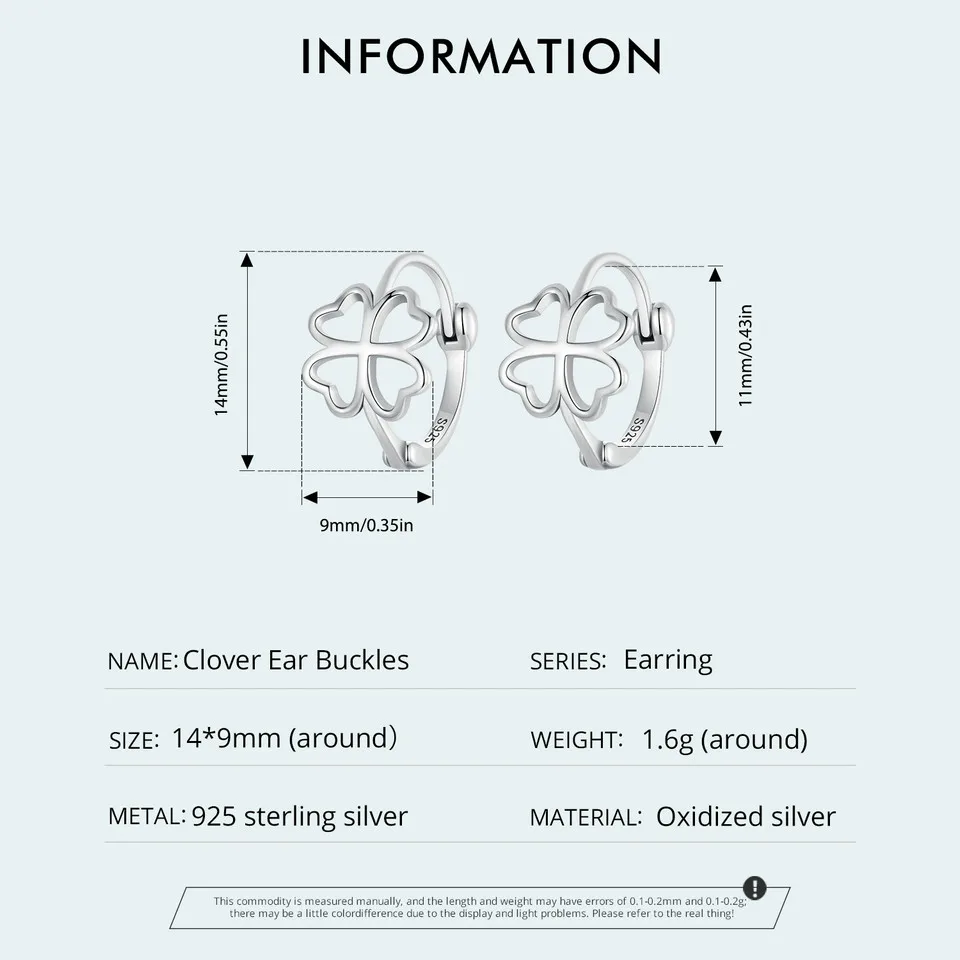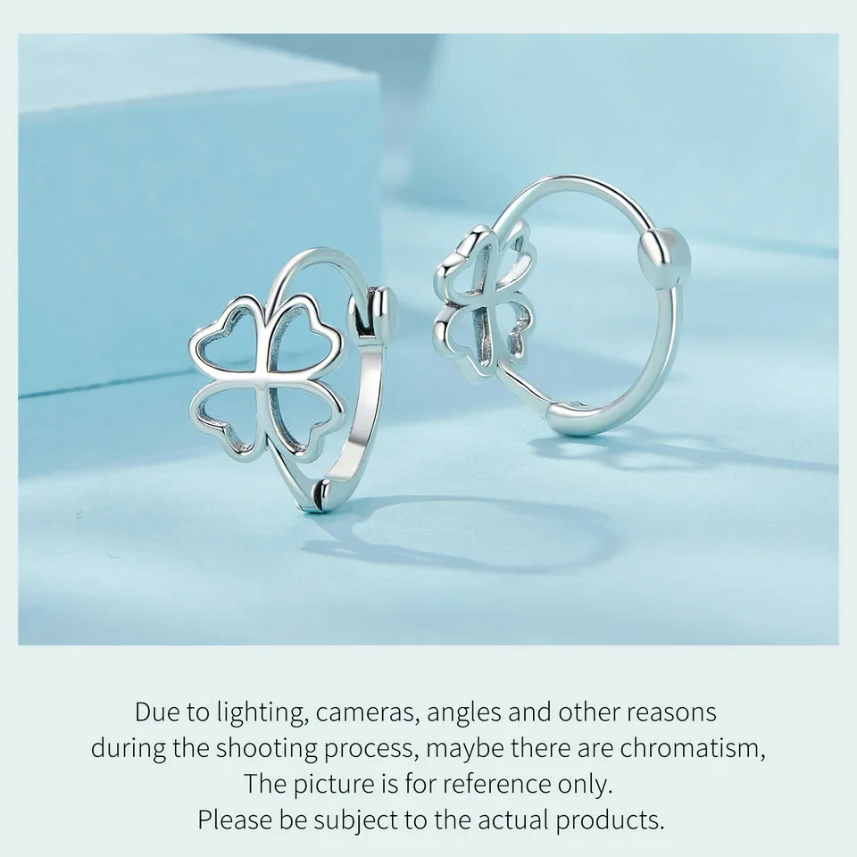 BAMOER 925 Sterling Silver Hollow-out Lucky Four-leaf Clover Ear Buckles for Women Birthday Gift Fine Jewelry SCE1690