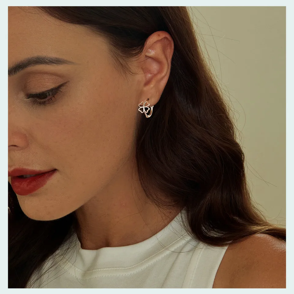 ❤ [Description] The ear buckles with the hollowed-out clover symbolizes good luck and positivity.
