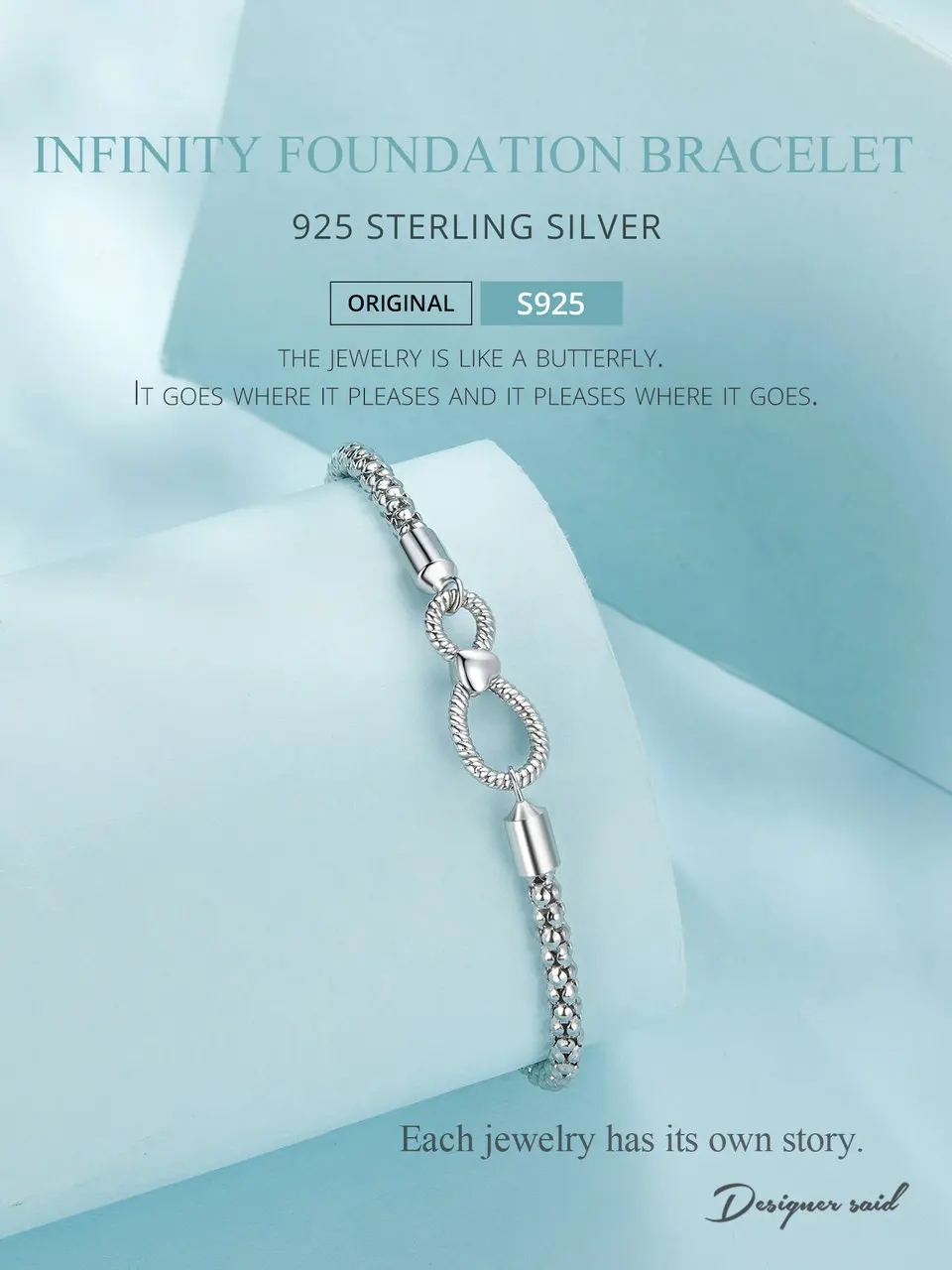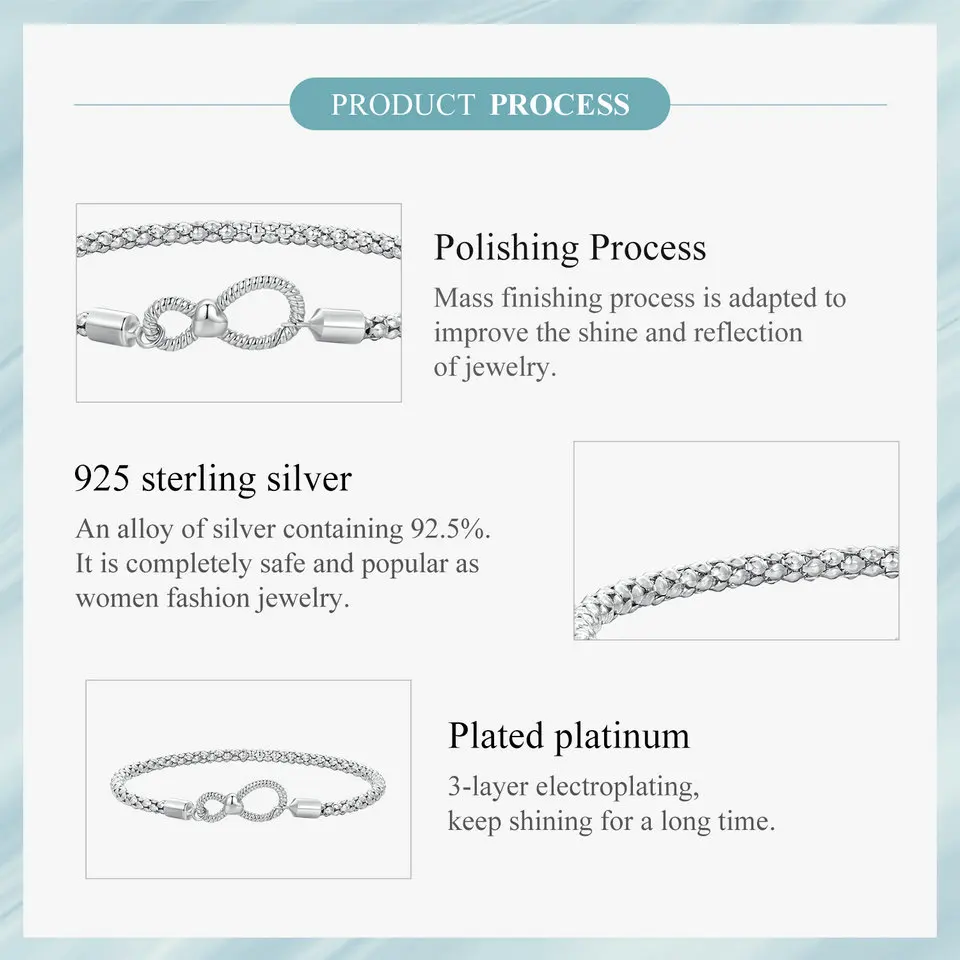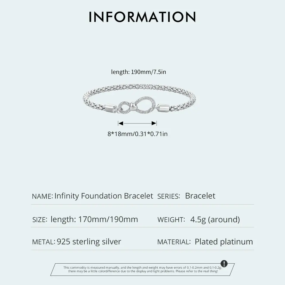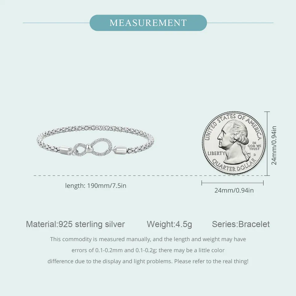Bamoer 925 Sterling Silver Infinite Love Basic Bracelet Platinum Plated for Women Valentine's Day Gift SCB260