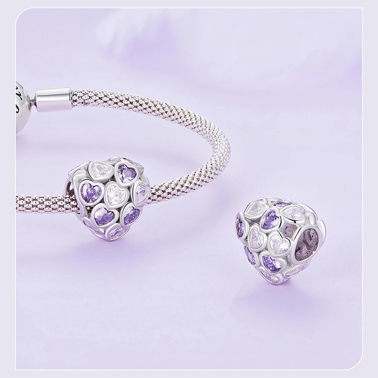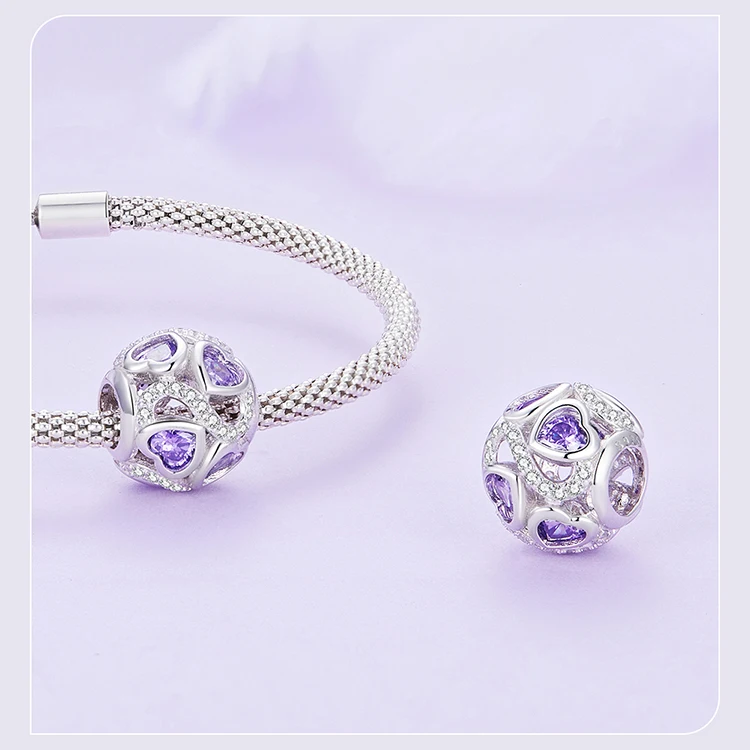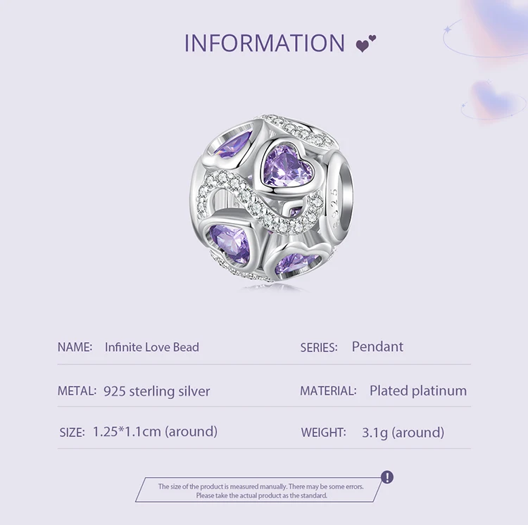 Bamoer 925 Sterling Silver Infinite Love Bead Purple Heart Zircon Charms for Women Original Bracelet and Bangle Fine Jewelry