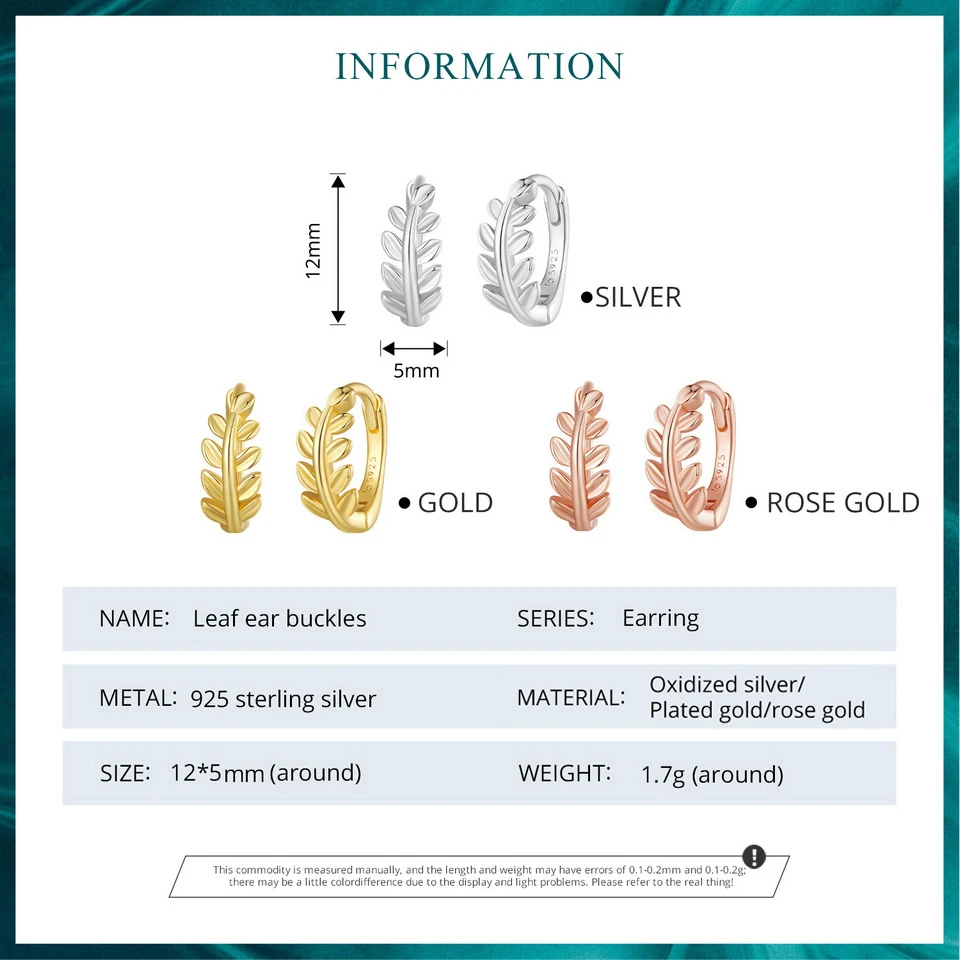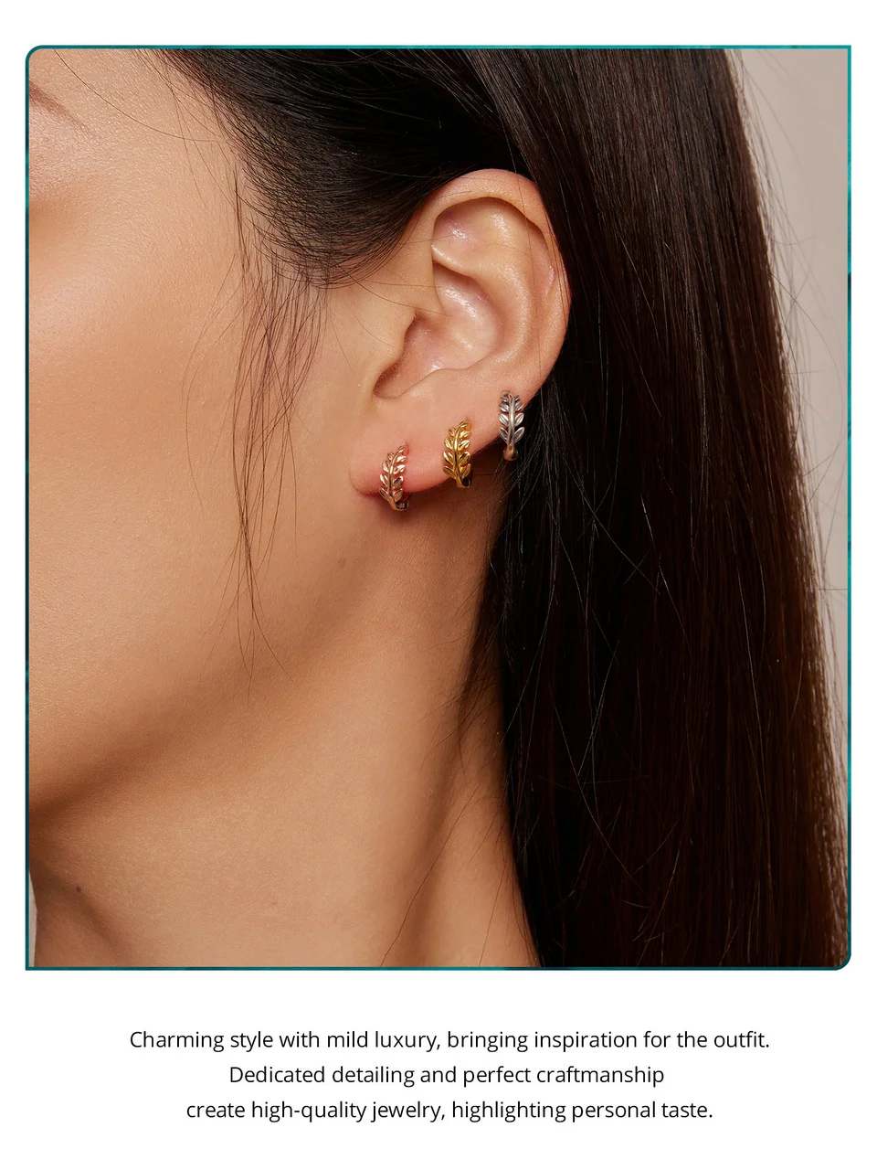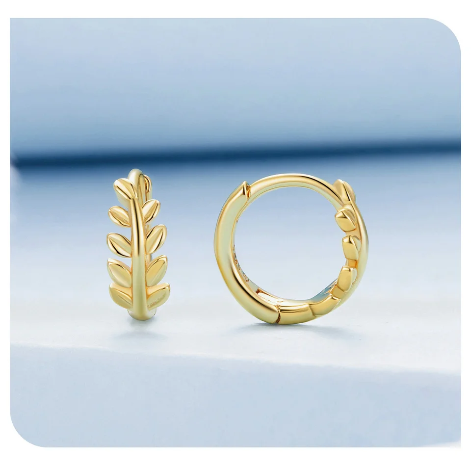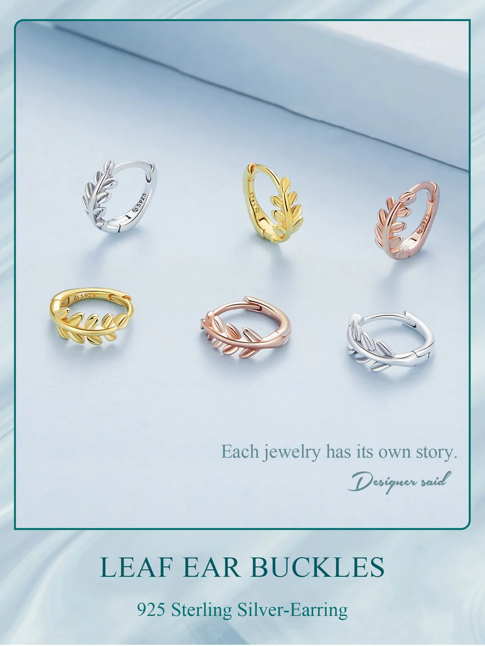 bamoer 925 Sterling Silver Leaf Ear Buckles Simple Classic Gold Plated Hoop Earrings for Women Statement Jewelry 3 Colors
