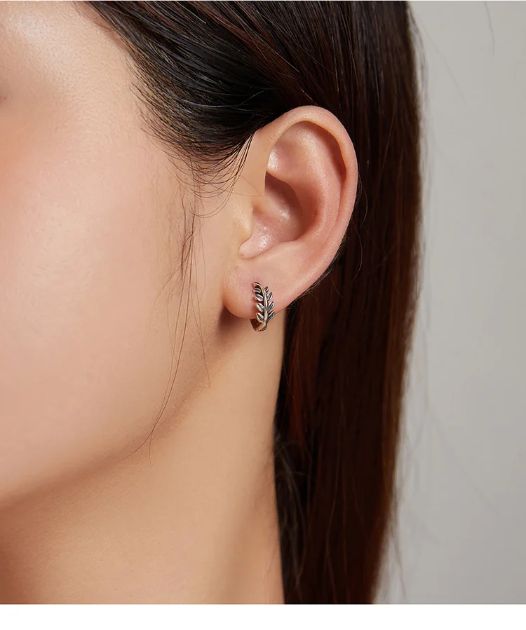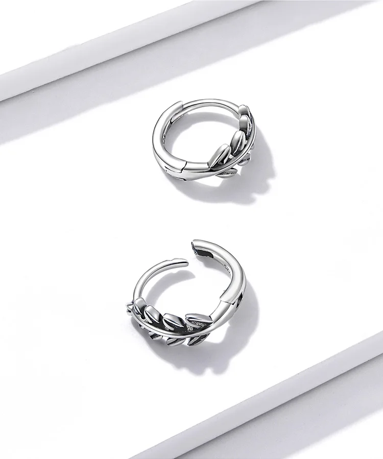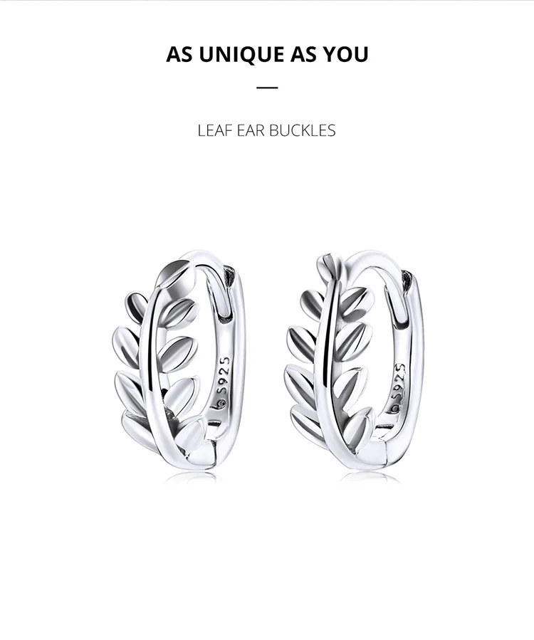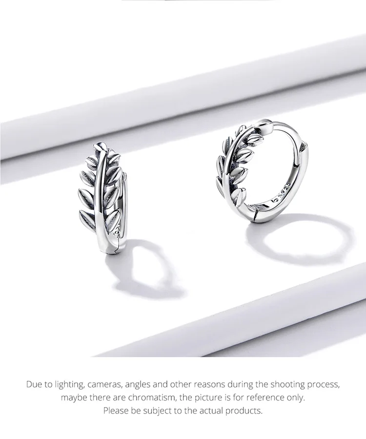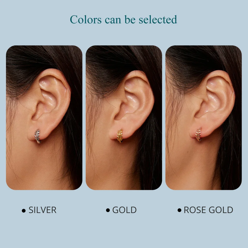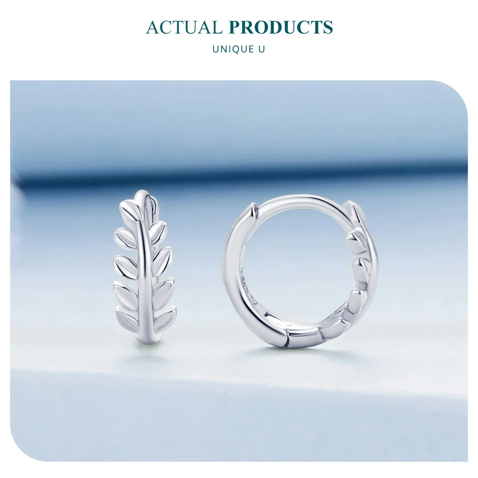 bamoer 925 Sterling Silver Leaf Ear Buckles Simple Classic Gold Plated Hoop Earrings for Women Statement Jewelry 3 Colors