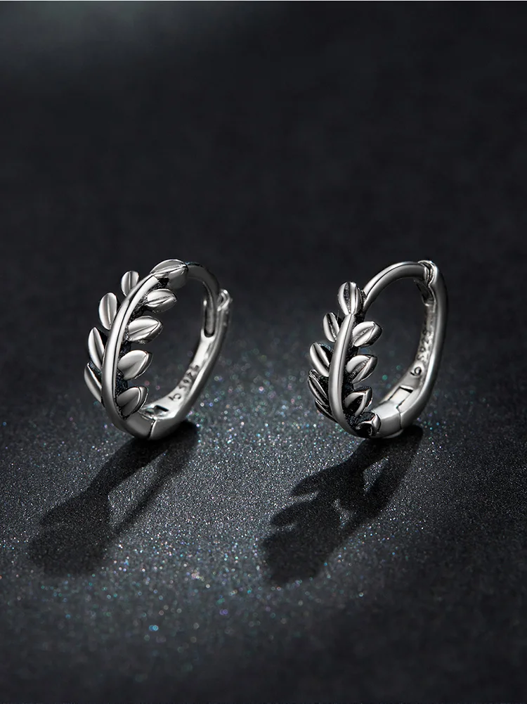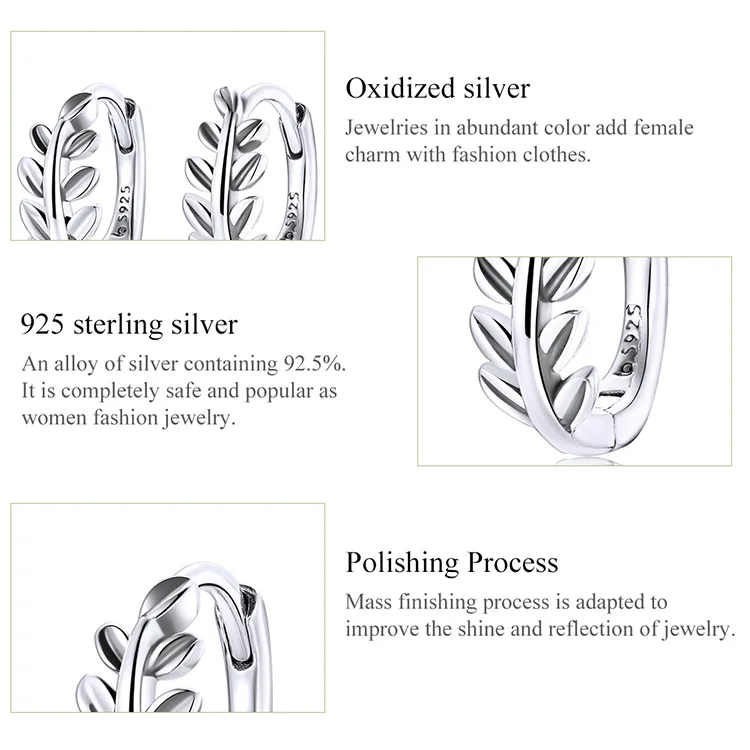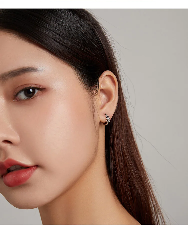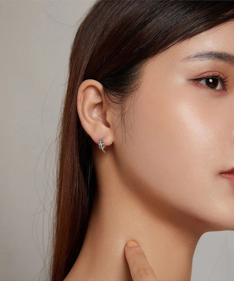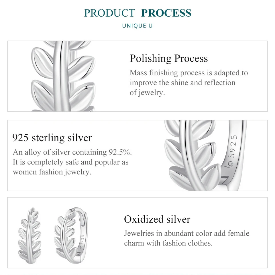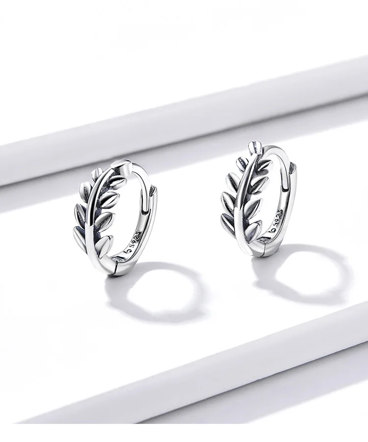 bamoer 925 Sterling Silver Leaf Ear Buckles Simple Classic Gold Plated Hoop Earrings for Women Statement Jewelry 3 Colors