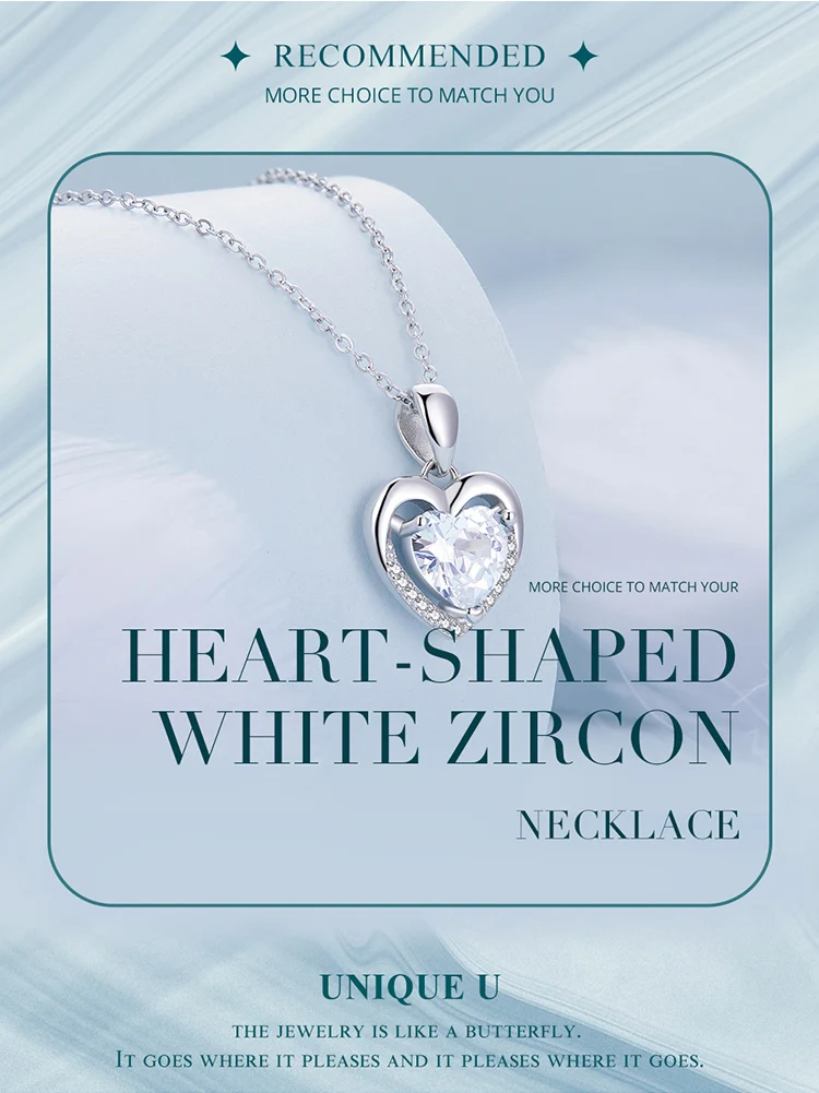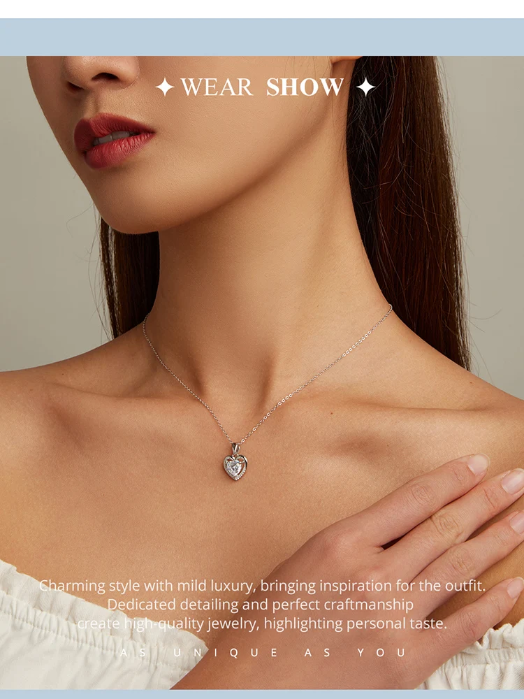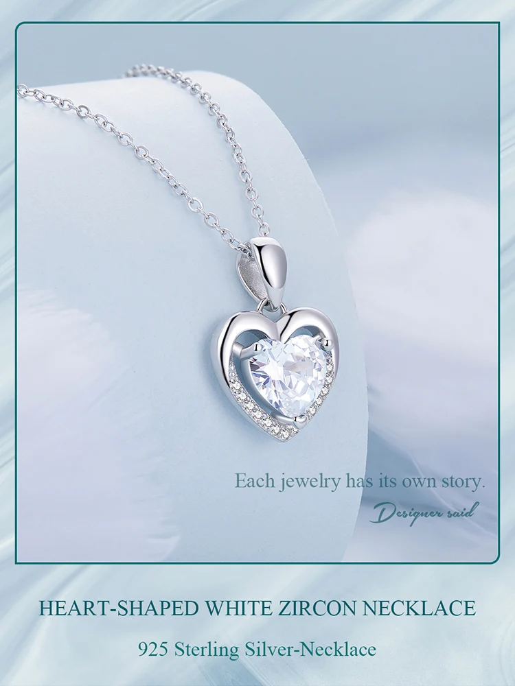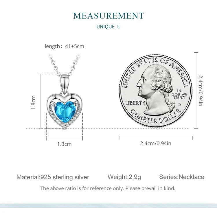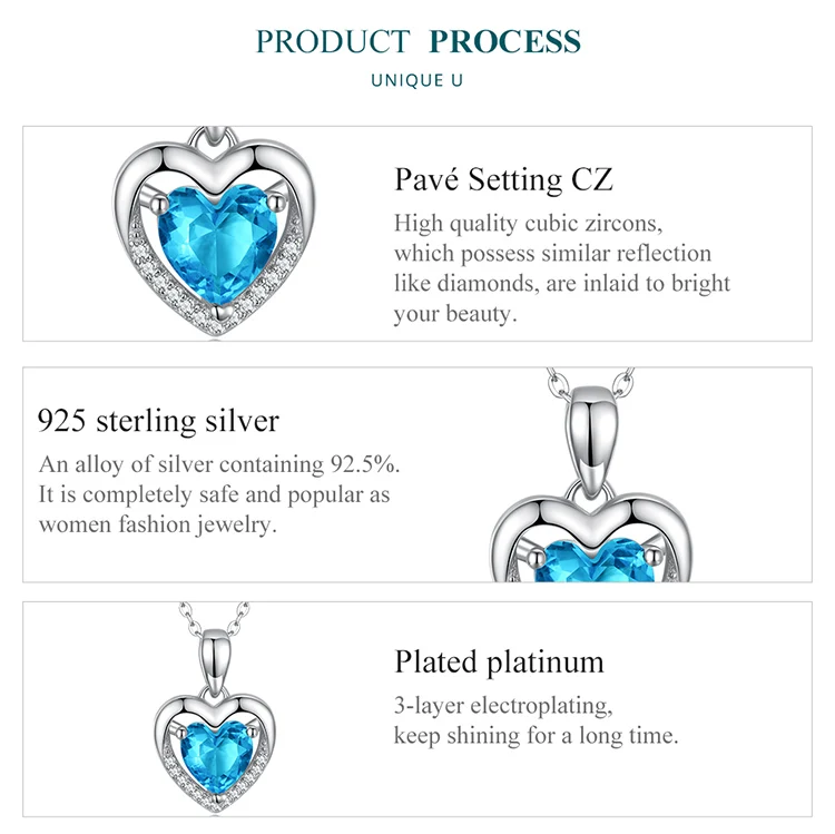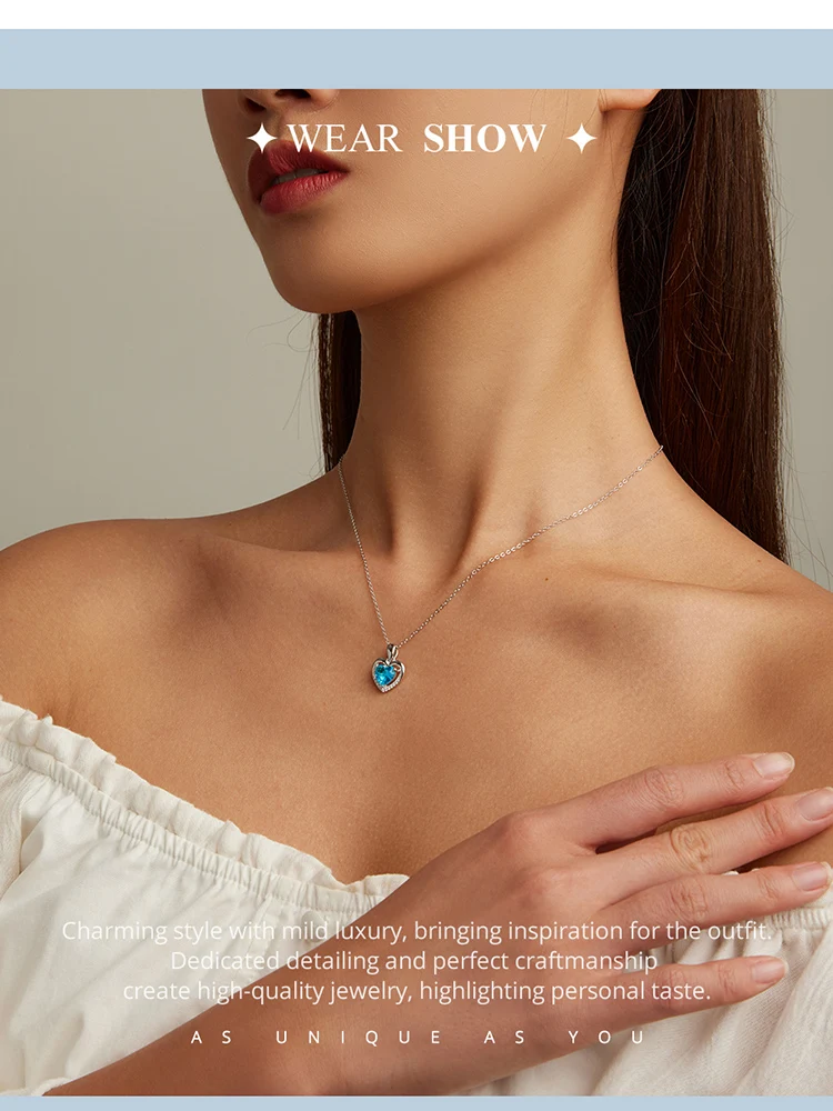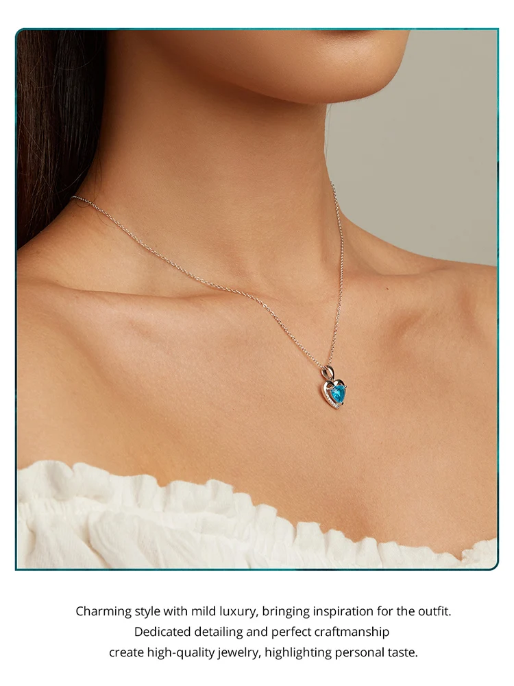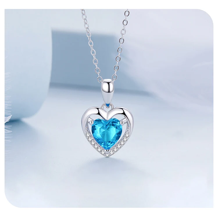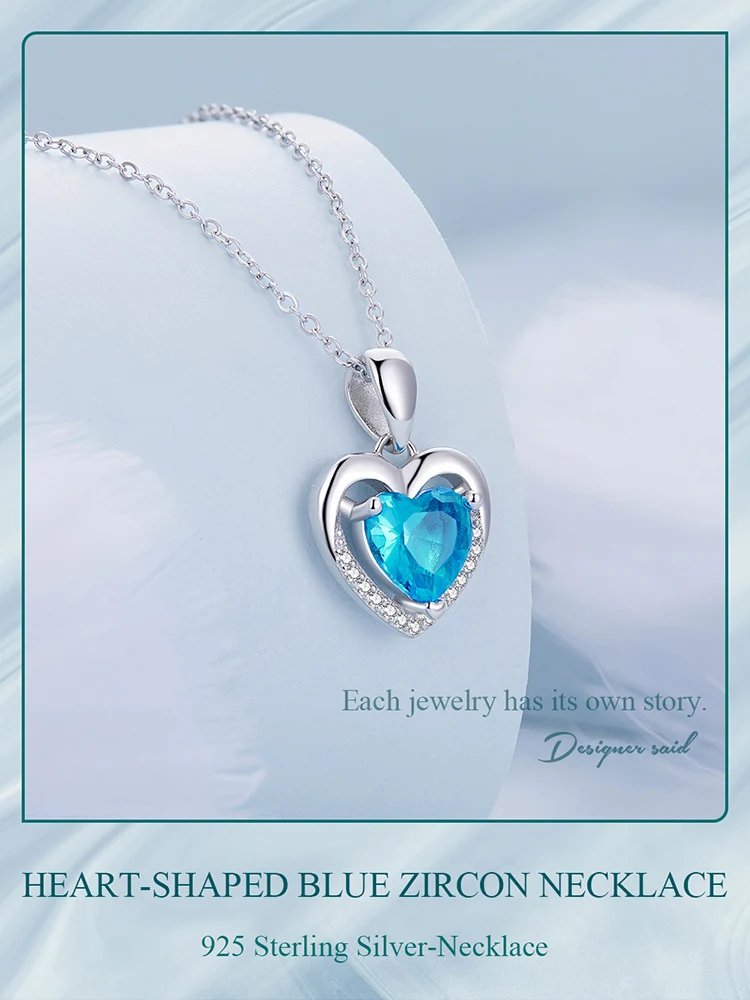 BAMOER 925 Sterling Silver Love Heart Pendant Necklace, Blue Clear Crystal Necklaces for Women Silver Fine Jewelry Gift