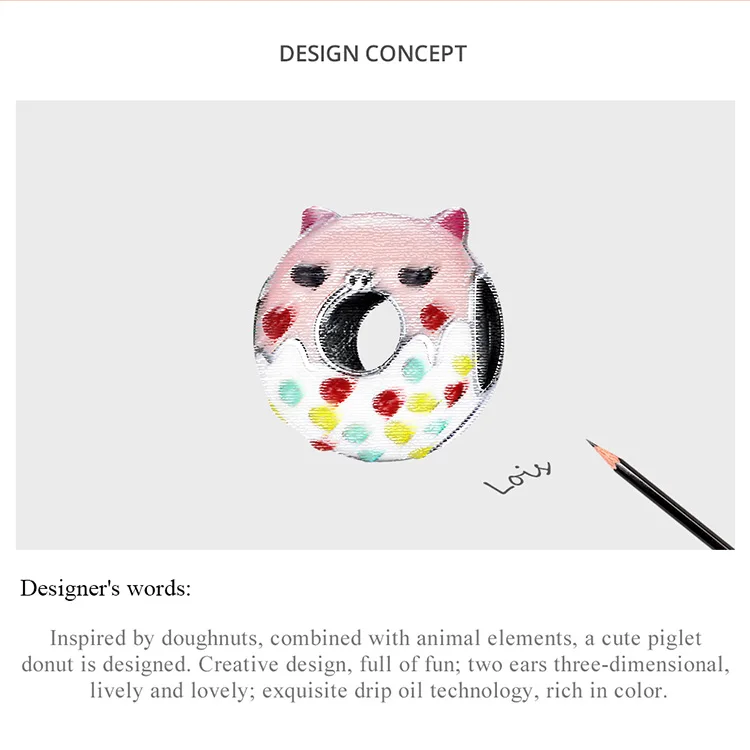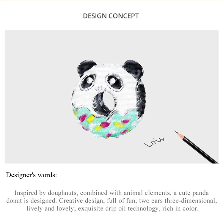 ❤ 【Description】Inspired by doughnuts, combined with animal elements, a cute panda donut is designed. Creative design, full of fun; two ears three-dimensional, lively and lovely; exquisite drip oil technology, rich in color.