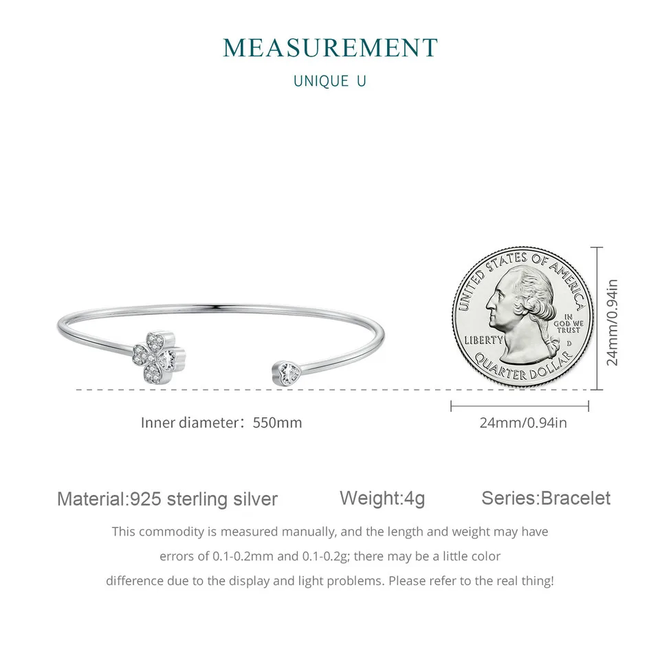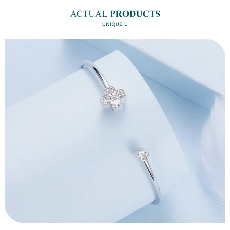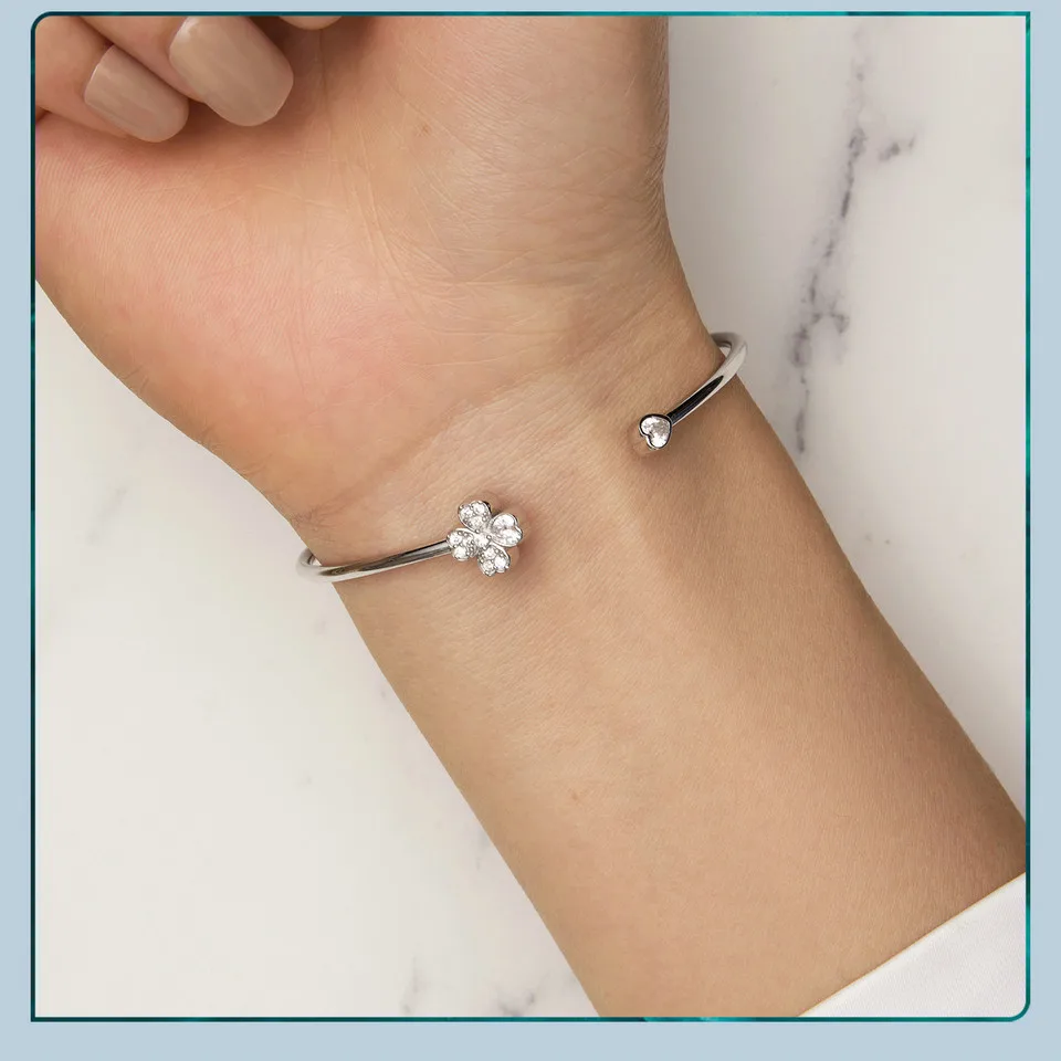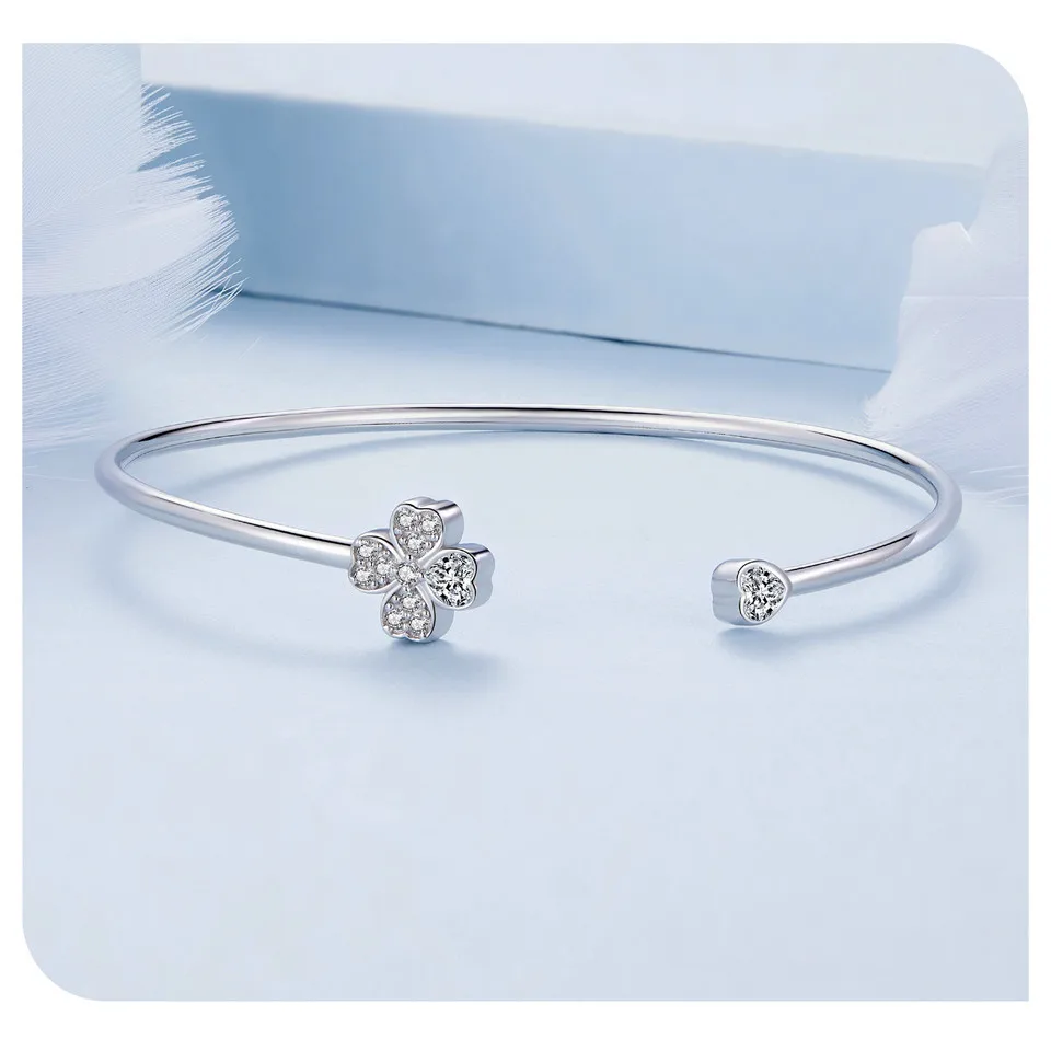 ❤ [Description] Four-leaf clover open bracelet, designed by the combination of heart shape, means to bring luck.