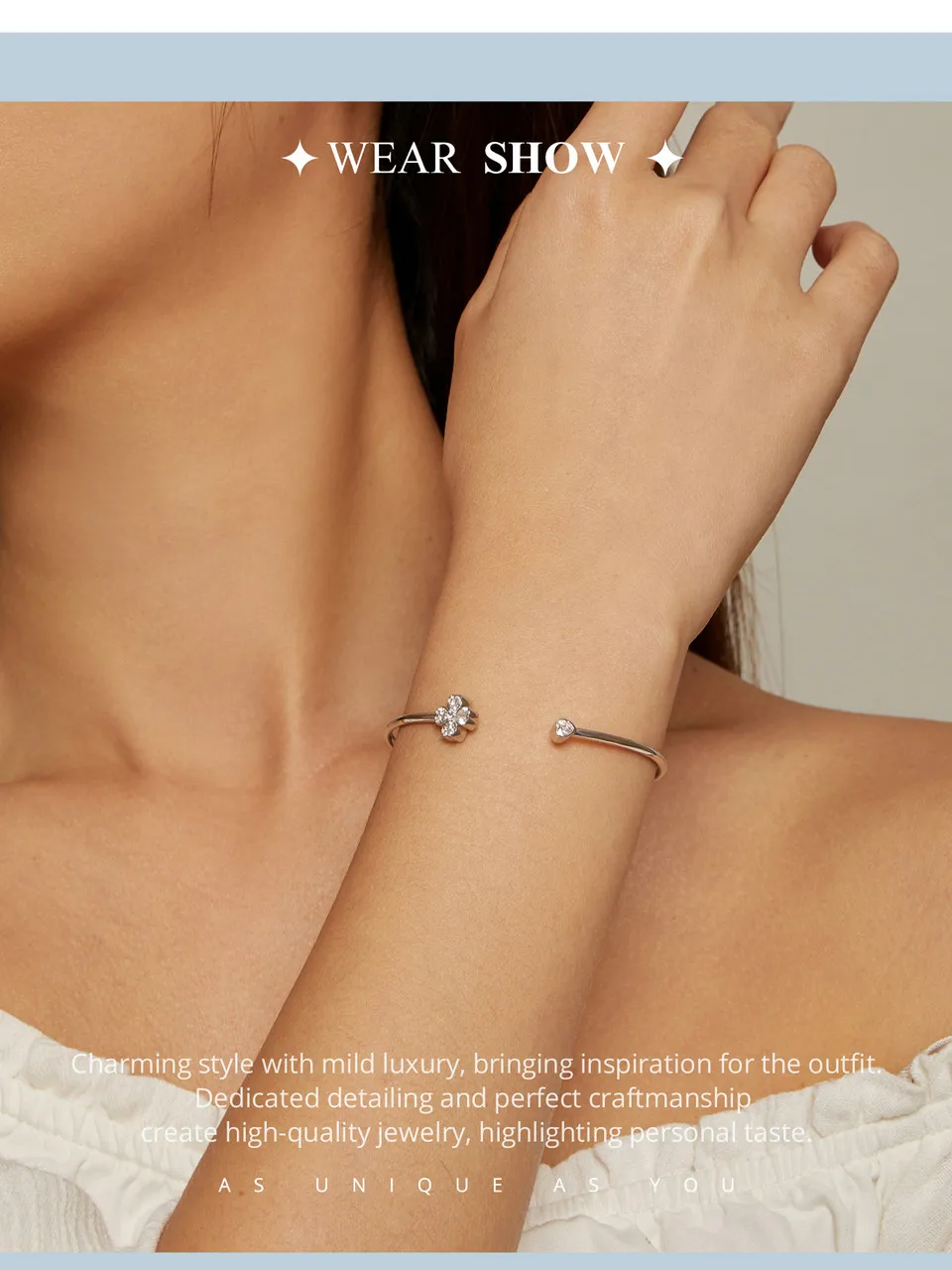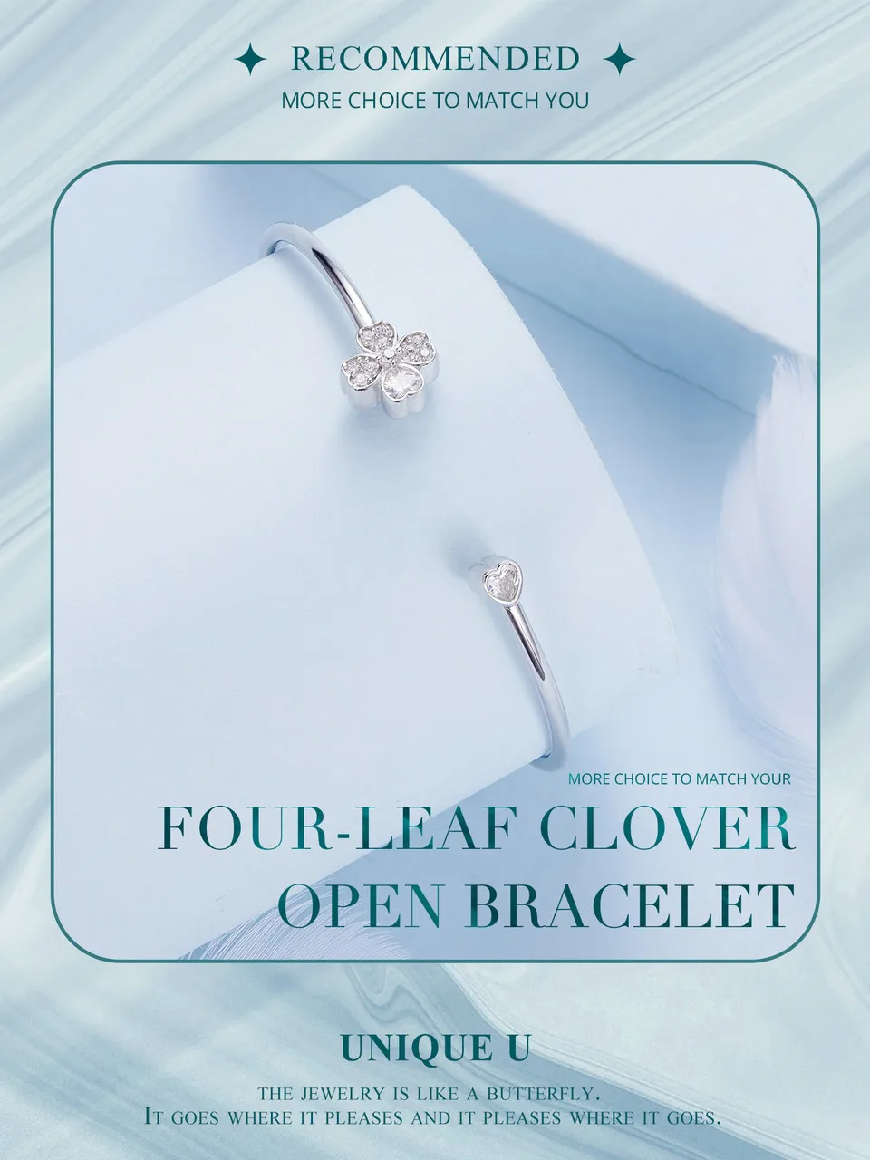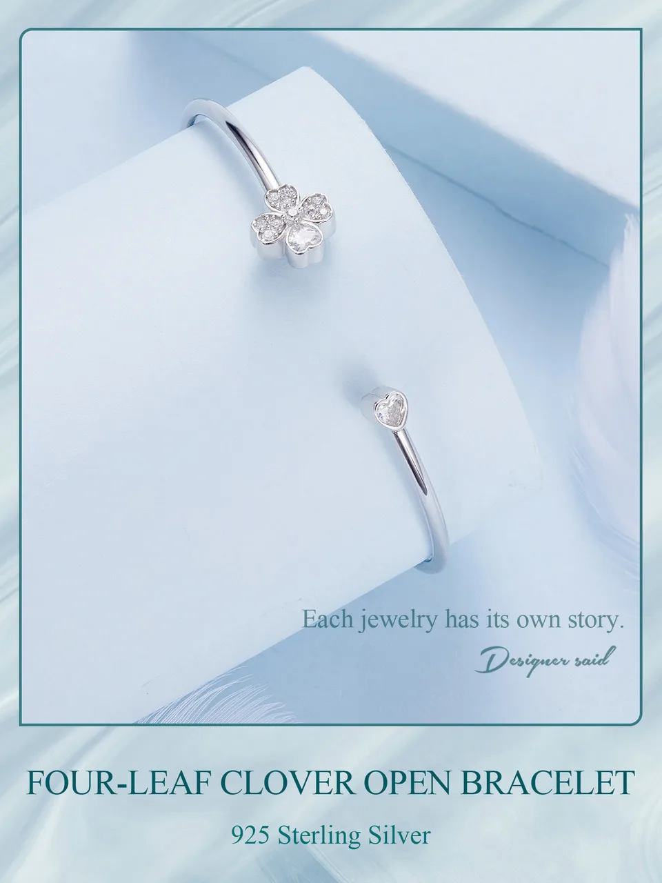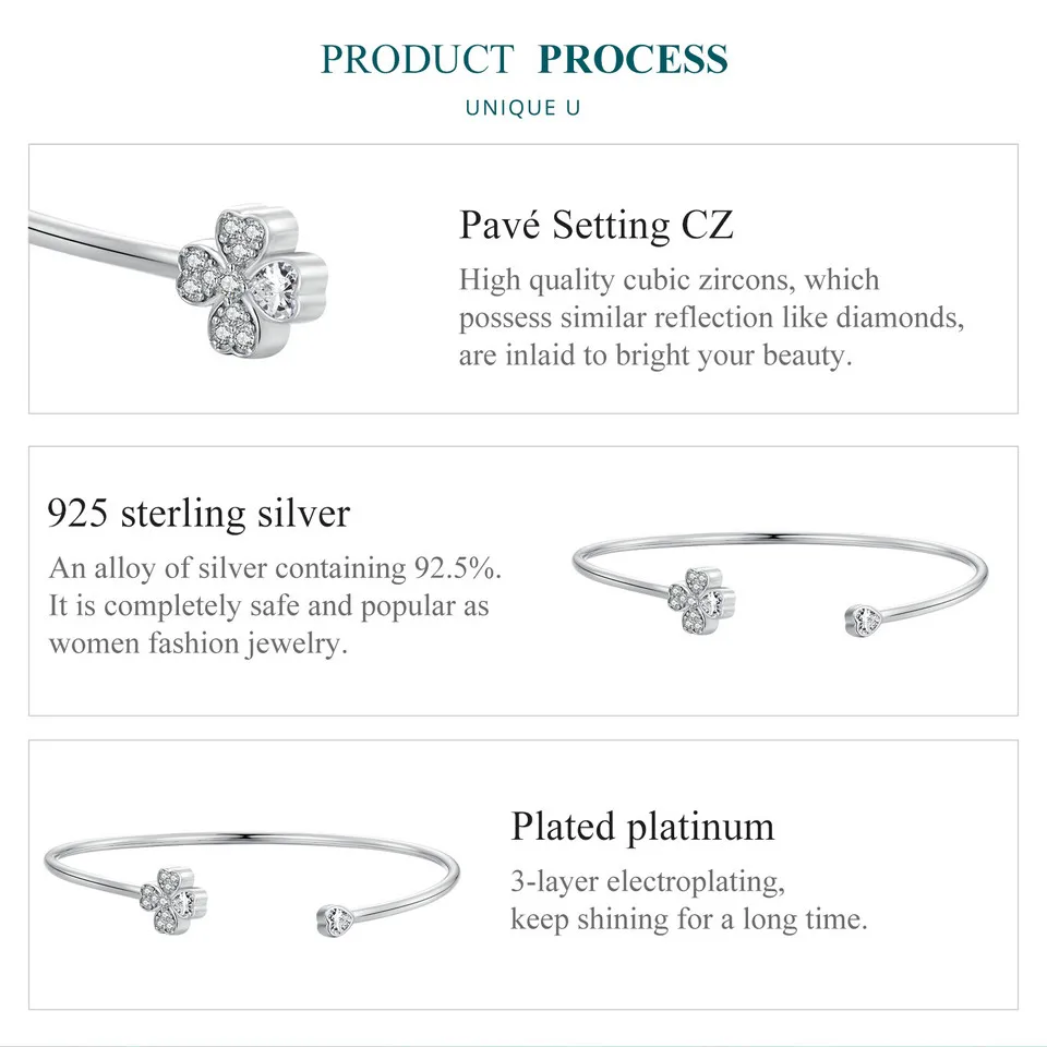 ❤ [Description] Four-leaf clover open bracelet, designed by the combination of heart shape, means to bring luck.