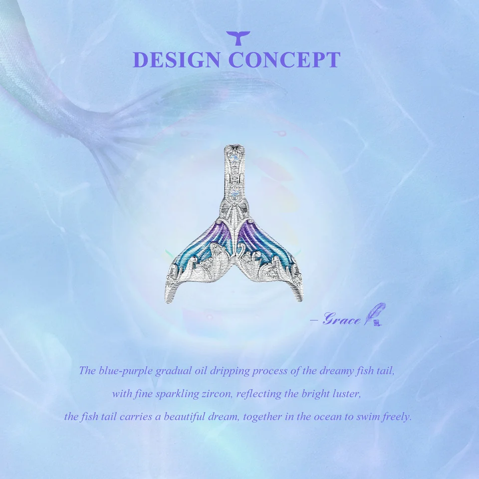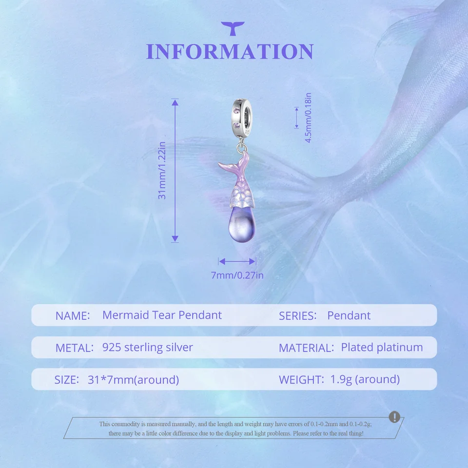 ❤ [Description] The purple oil drop process creates beautiful mermaid tears. The colorful fish tail inlay reflects elegance and refinement. Teardrops come from the inside to the outside, and layers of thoughts spring up, feeling the infinite charm of the mermaid together.