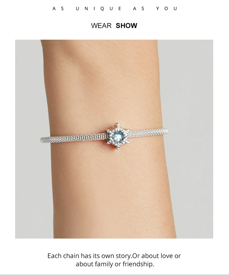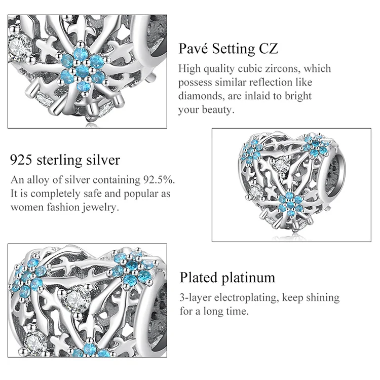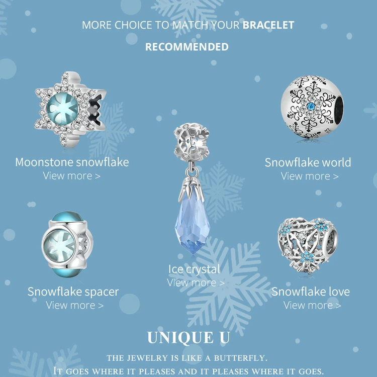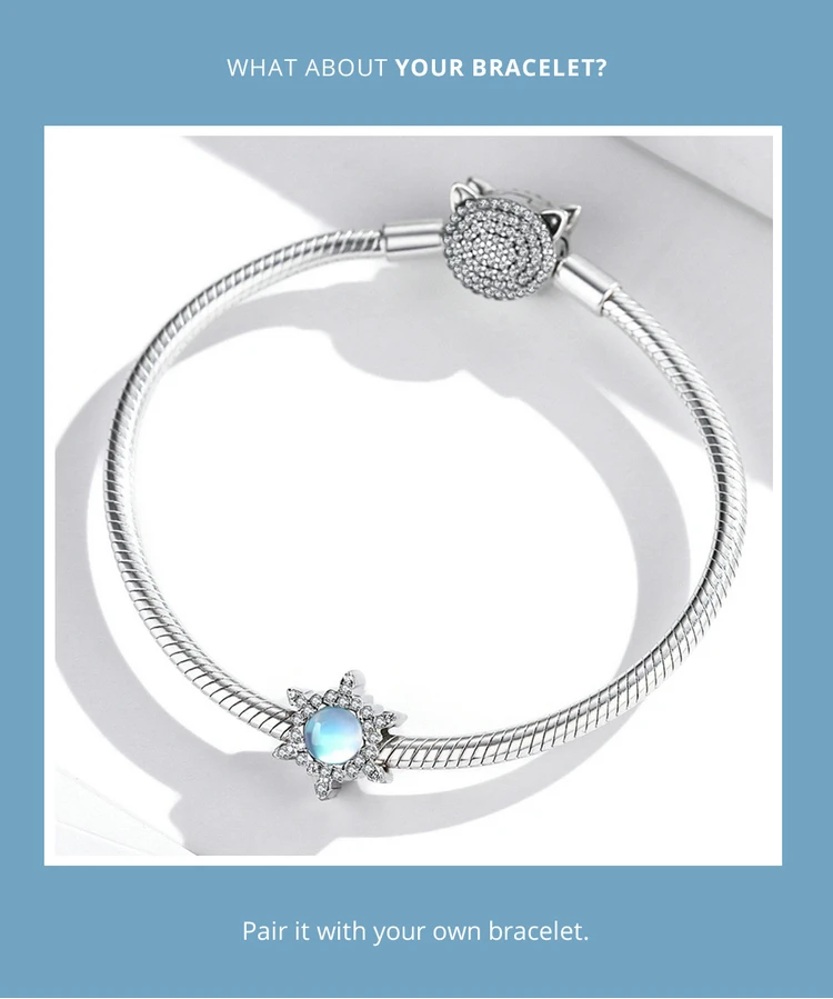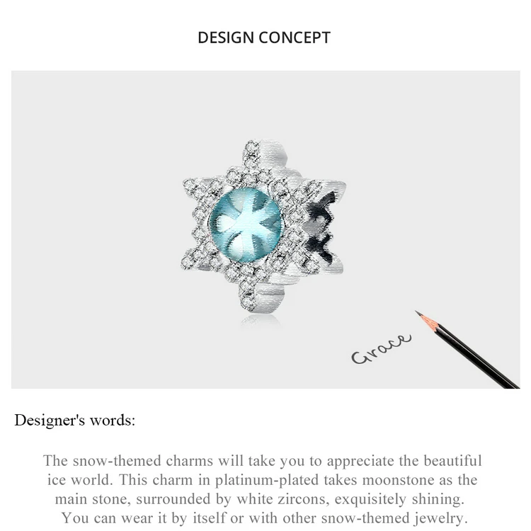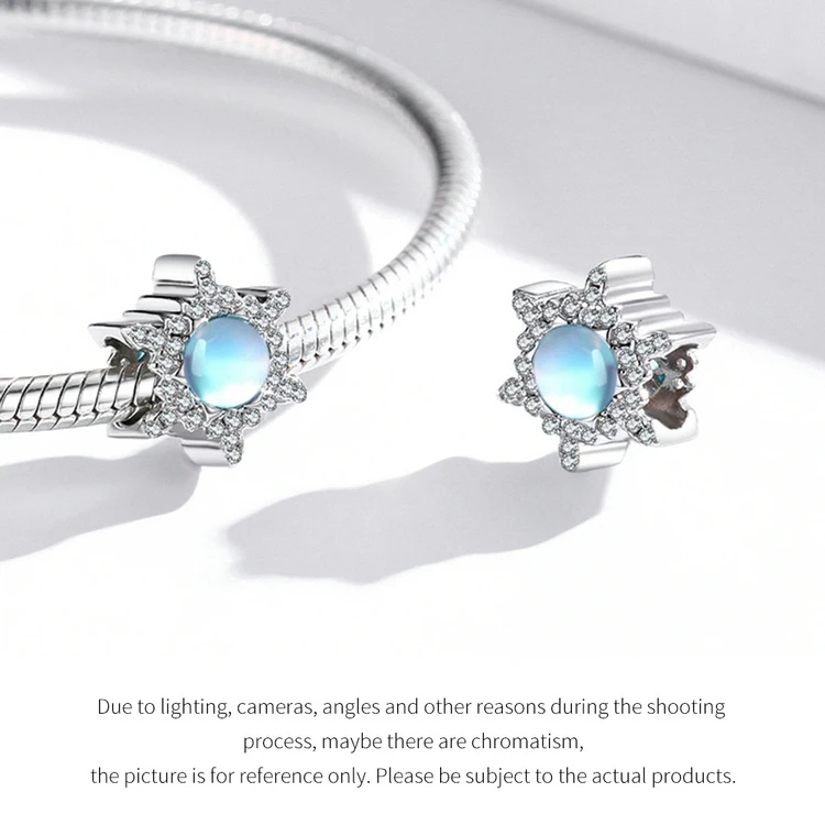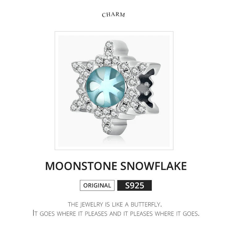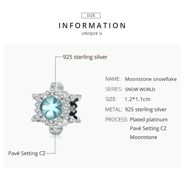 ❤ [Description]The snow-themed charms will take you to appreciate the beautiful ice world. This charm in platinum-plated takes moonstone as the main stone, surrounded by white zircons, exquisitely shining. You can wear it by itself or with other snow-themed jewelry.
