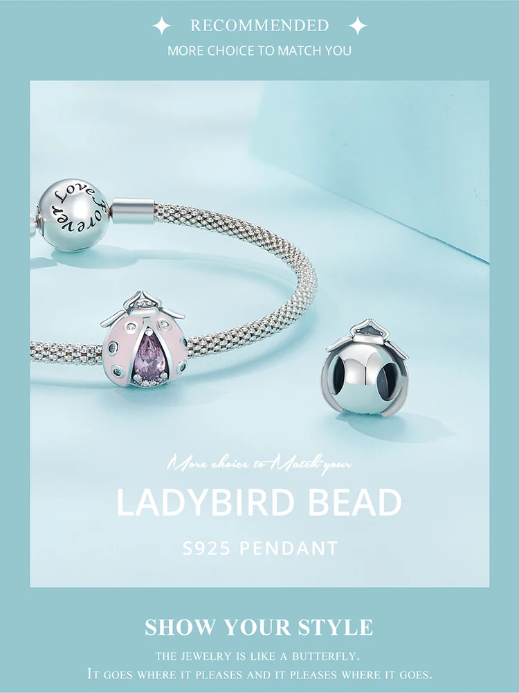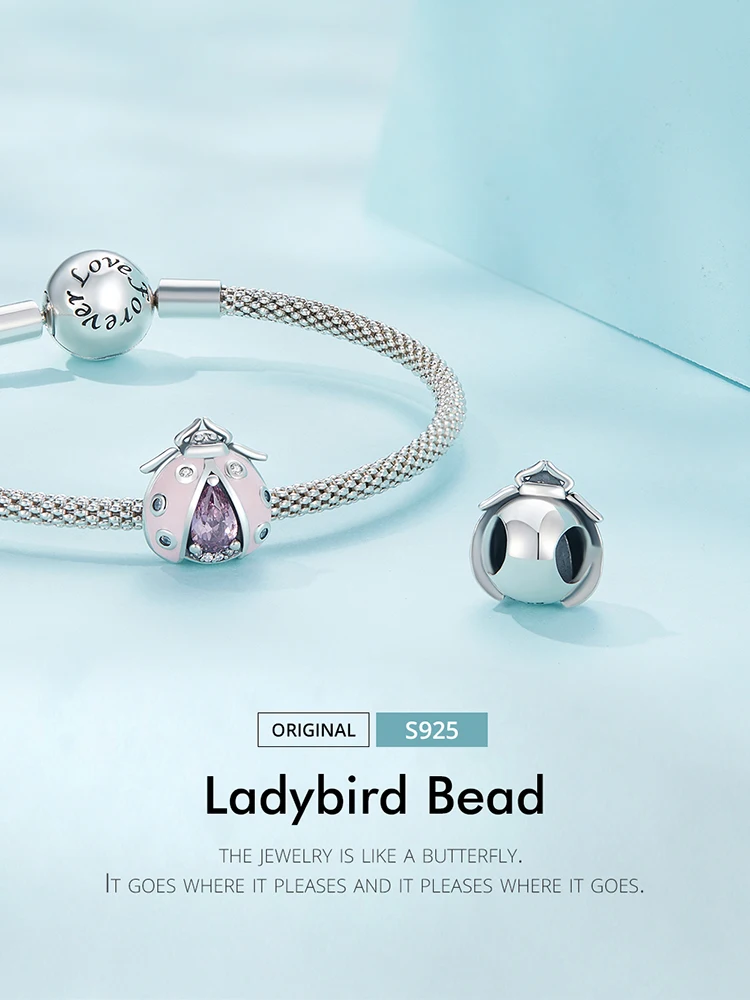Bamoer 925 Sterling Silver Pink Enamel Ladybird Beads Pink Zircon Ladybug Charms for Women Bracelet and Bangle DIY Fine Jewelry