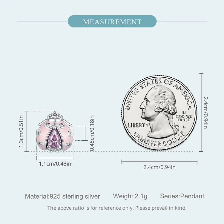❤ [Description] The ladybird has a large pink zircon on its back, and its pink enamel wings are decorated with small delicate zircons. The ladybird is a symbol of freedom and luck.