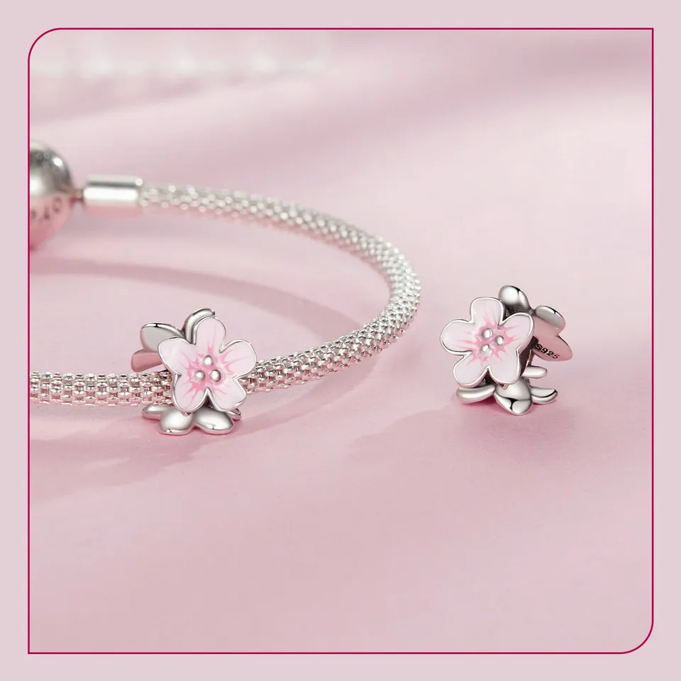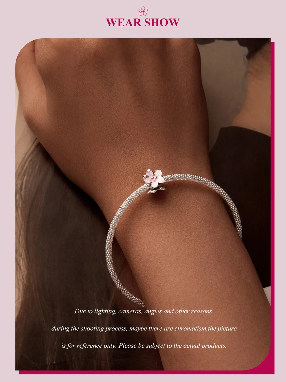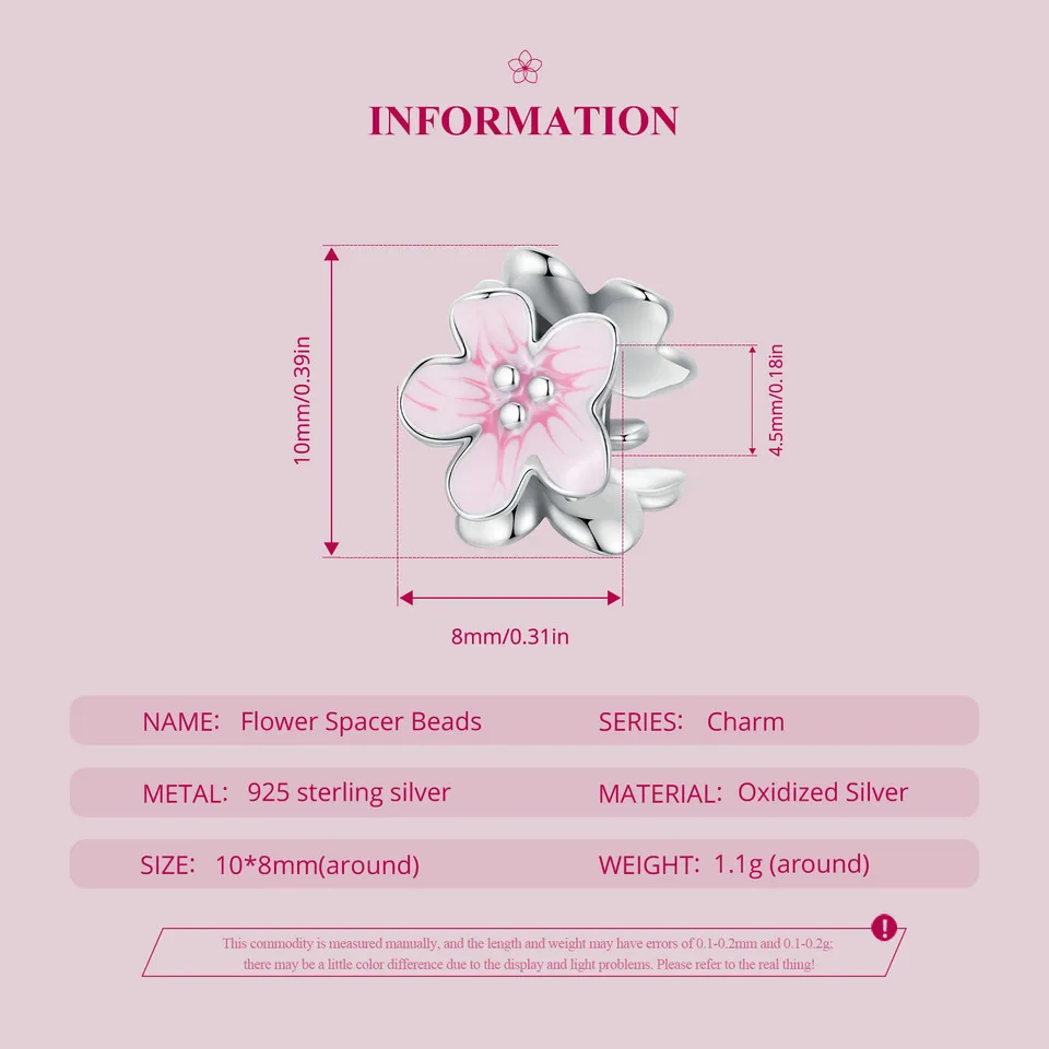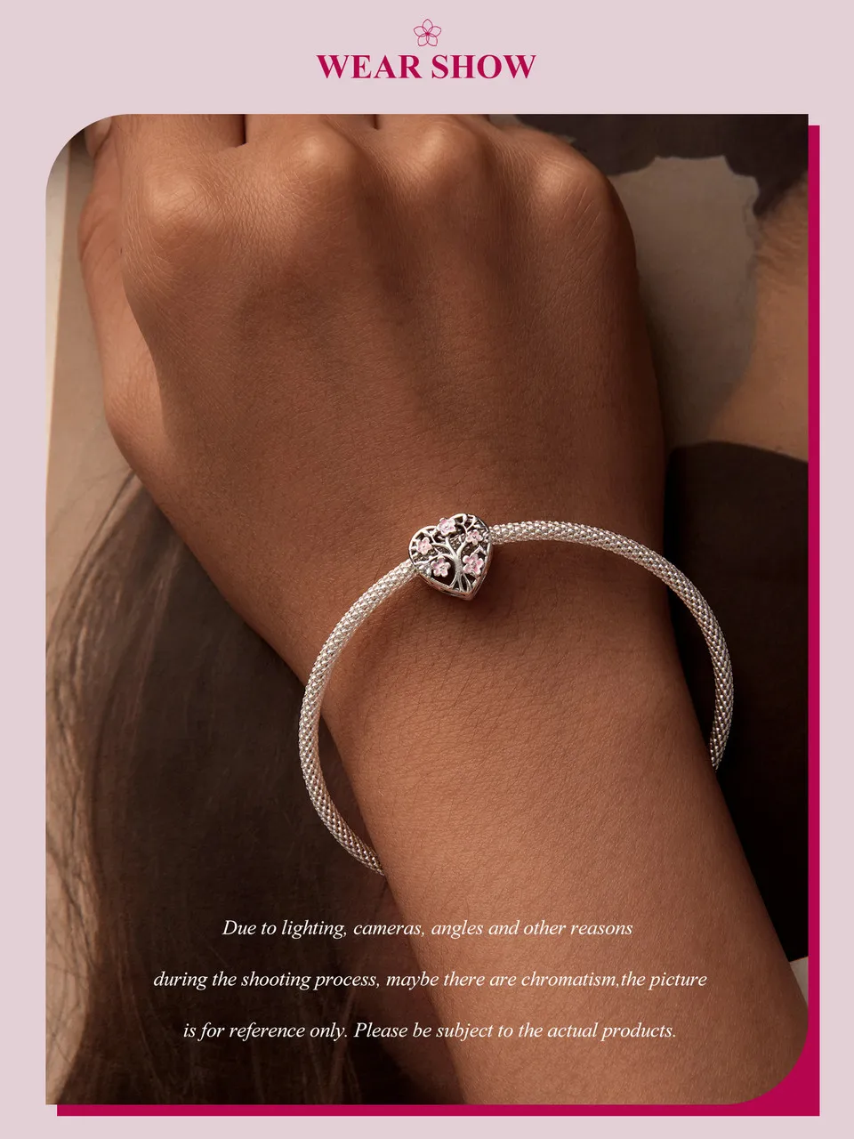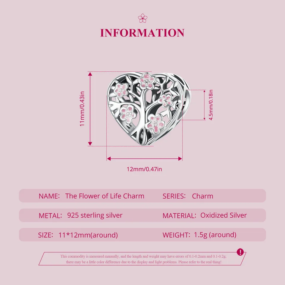 BAMOER 925 Sterling Silver Pink Flower Spacer Beads Tree of Life Charms for Women Bracelet Making Accessories