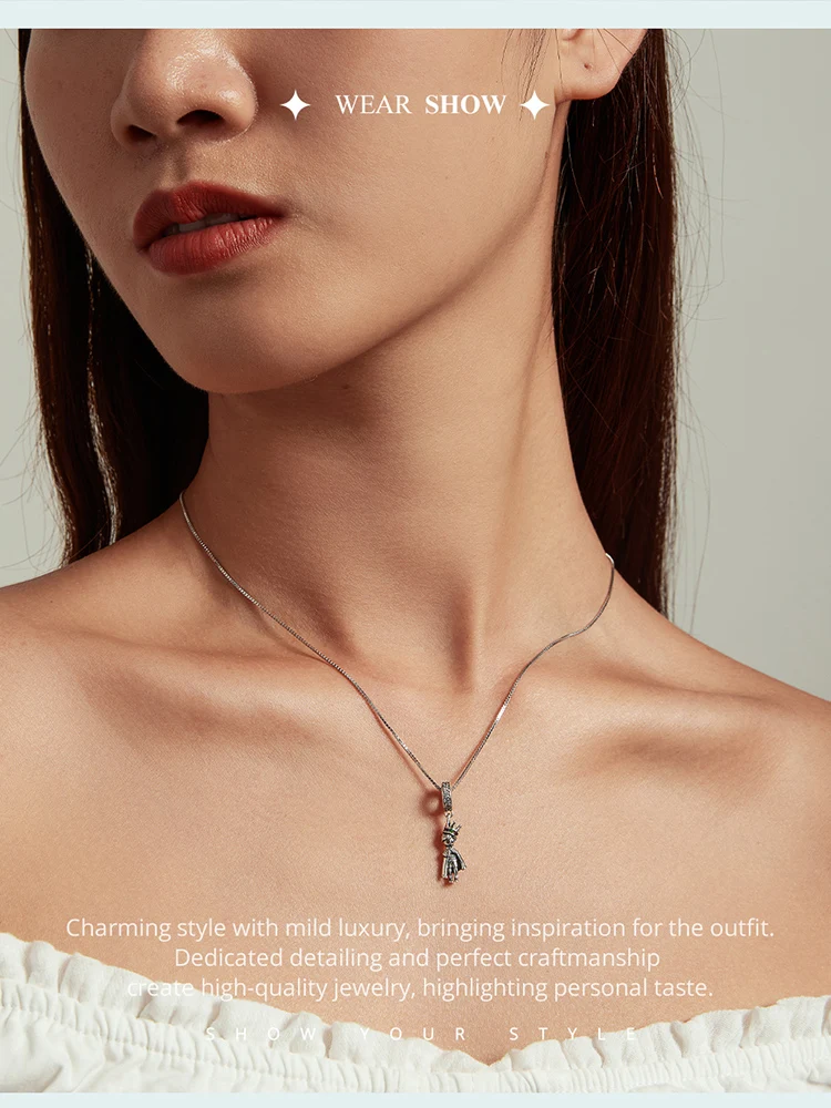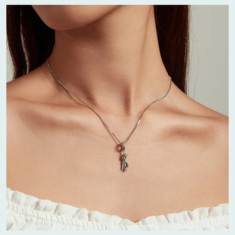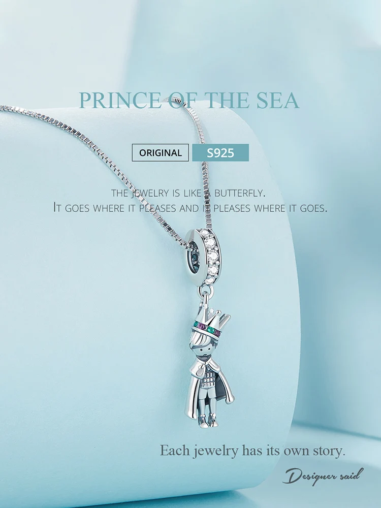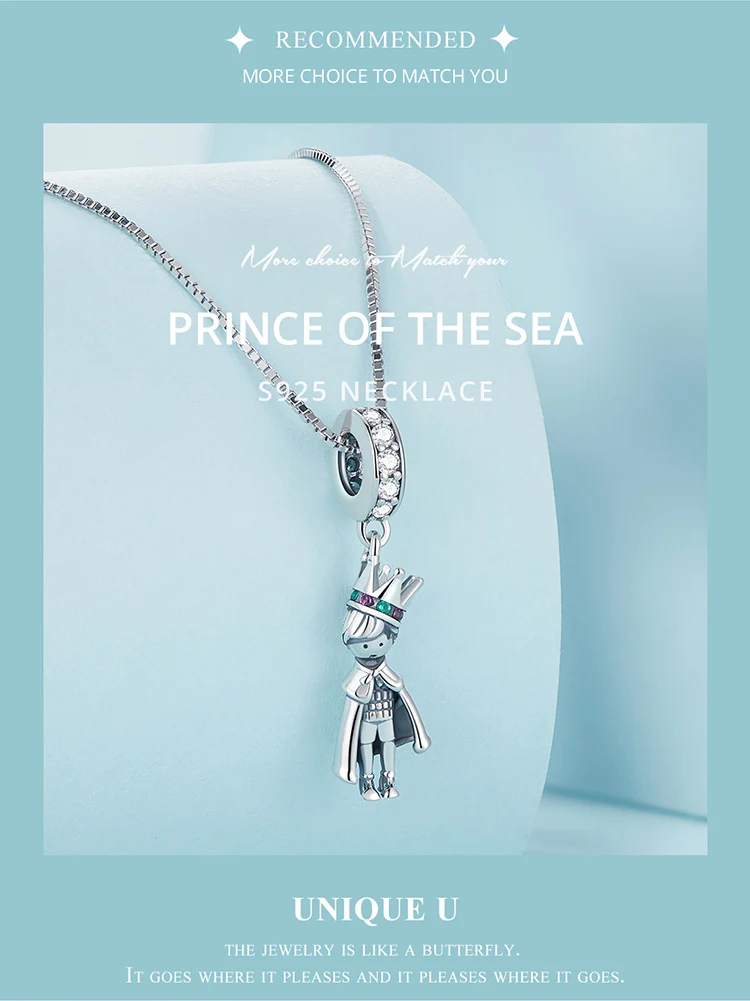 Bamoer 925 Sterling Silver Prince of the Sea Pendant Necklace Little Prince Neck Chain for Women Birthday Clear CZ fine Jewelry