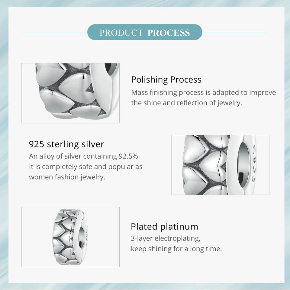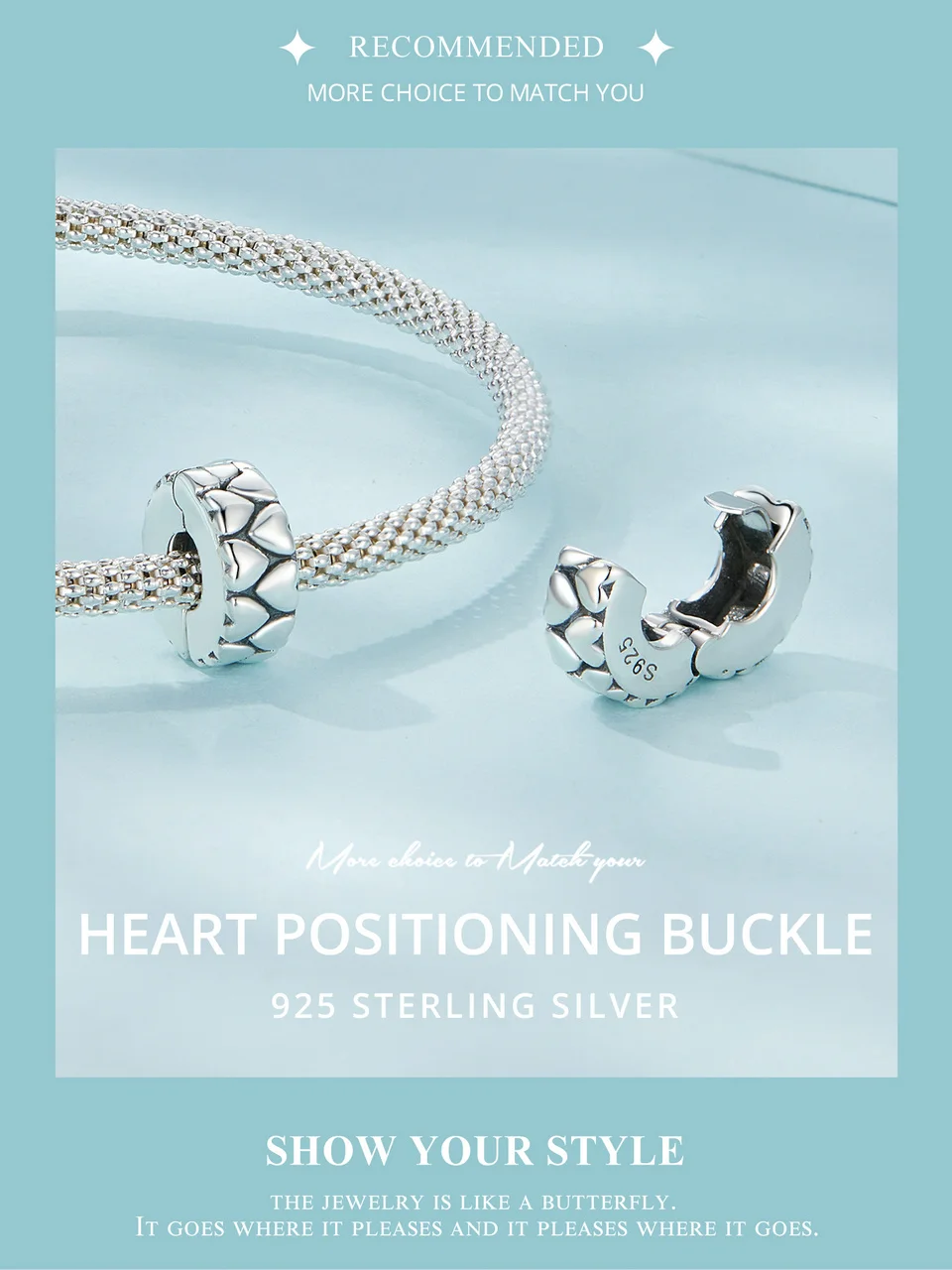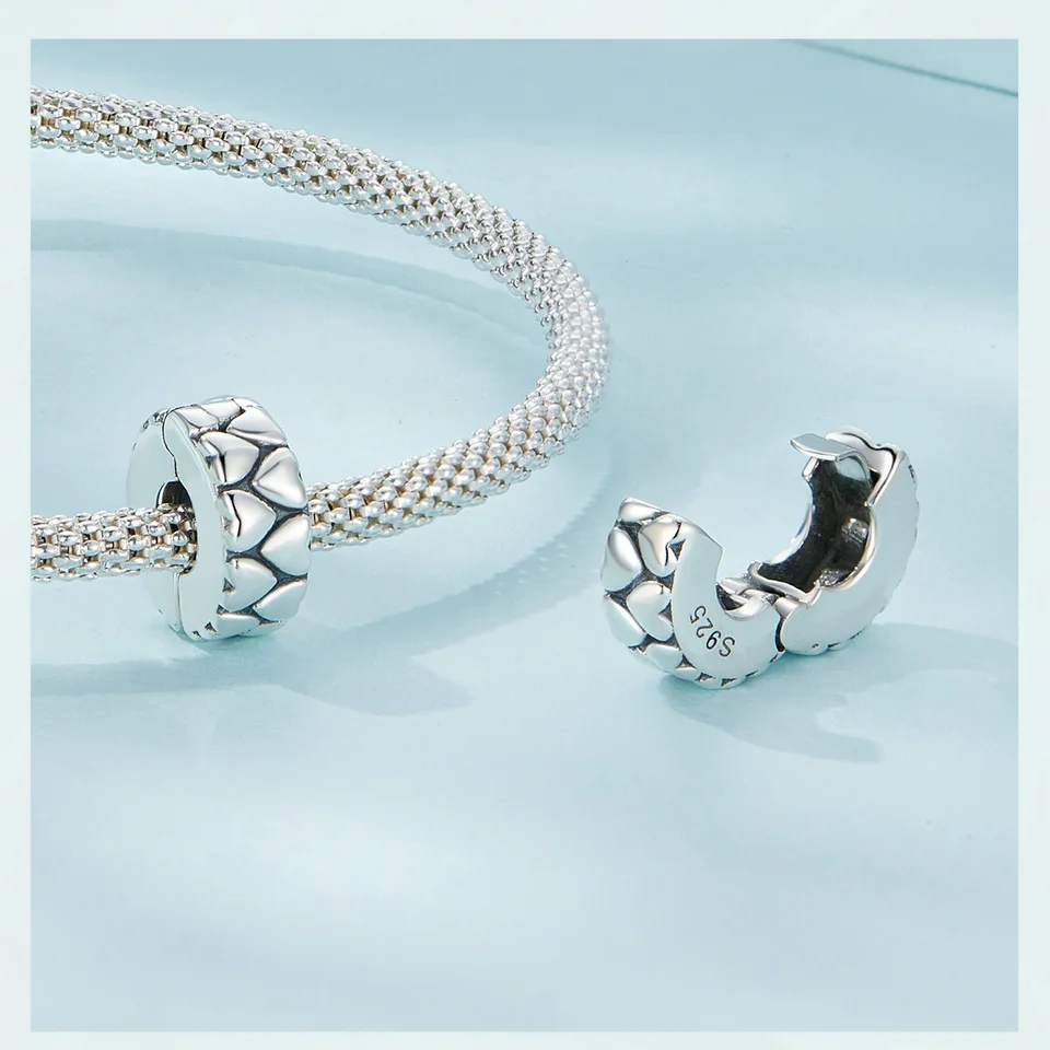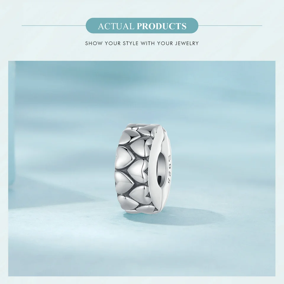 Bamoer 925 Sterling Silver Retro Heart Pattern Stopper Beads for Women Bracelet & Bangle DIY Fine Jewelry Accessories