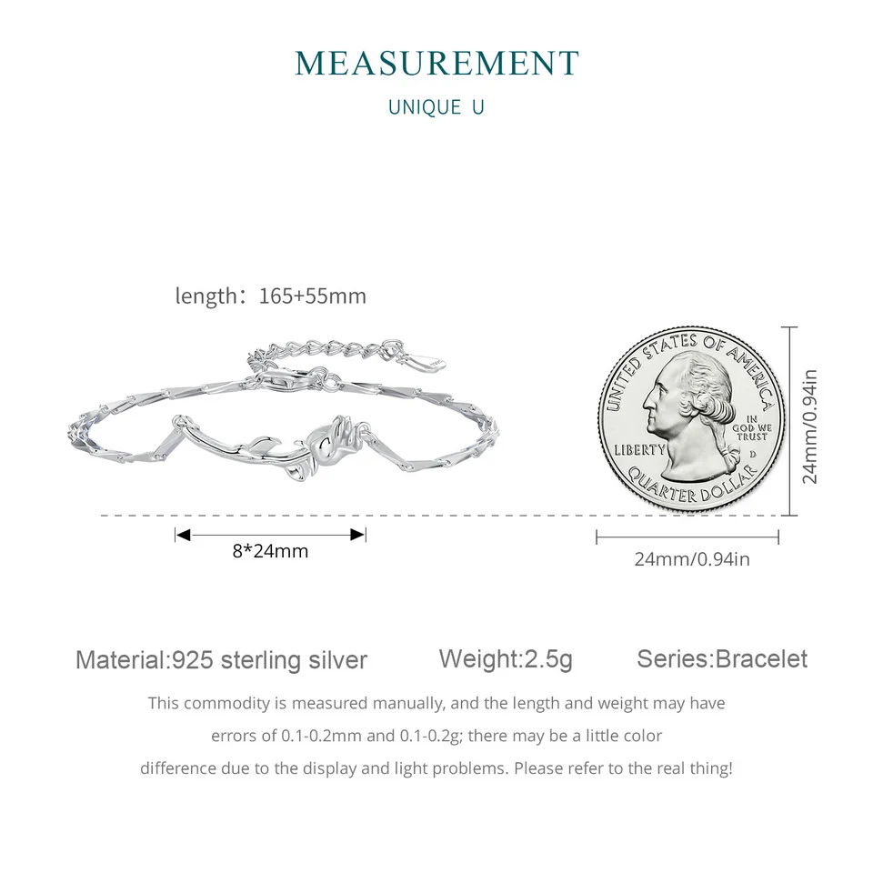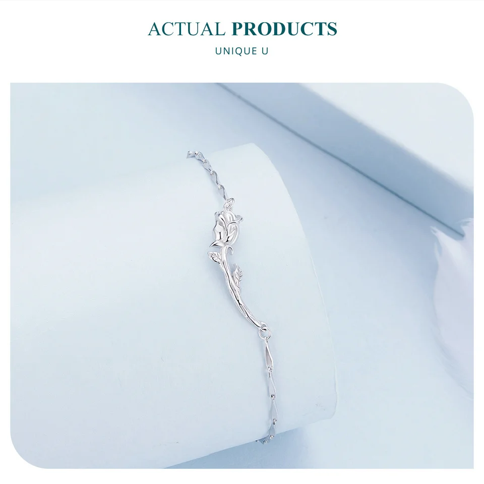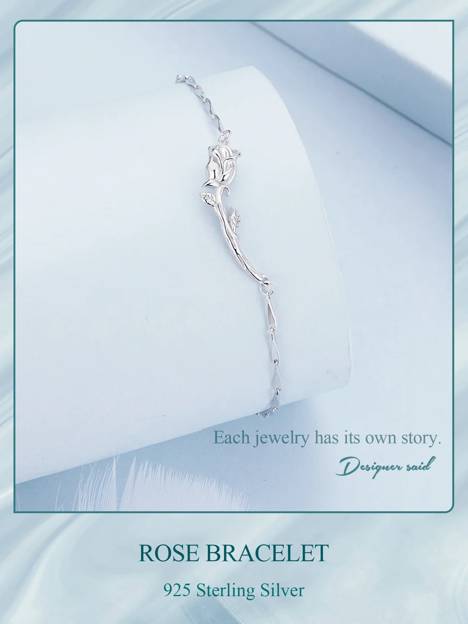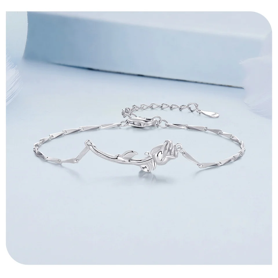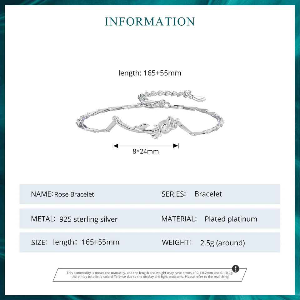 Bamoer 925 Sterling Silver Rose Bracelet Flower Adjustable Chain Link Platinum Plated for Women Valentine's Day Gift BSB146