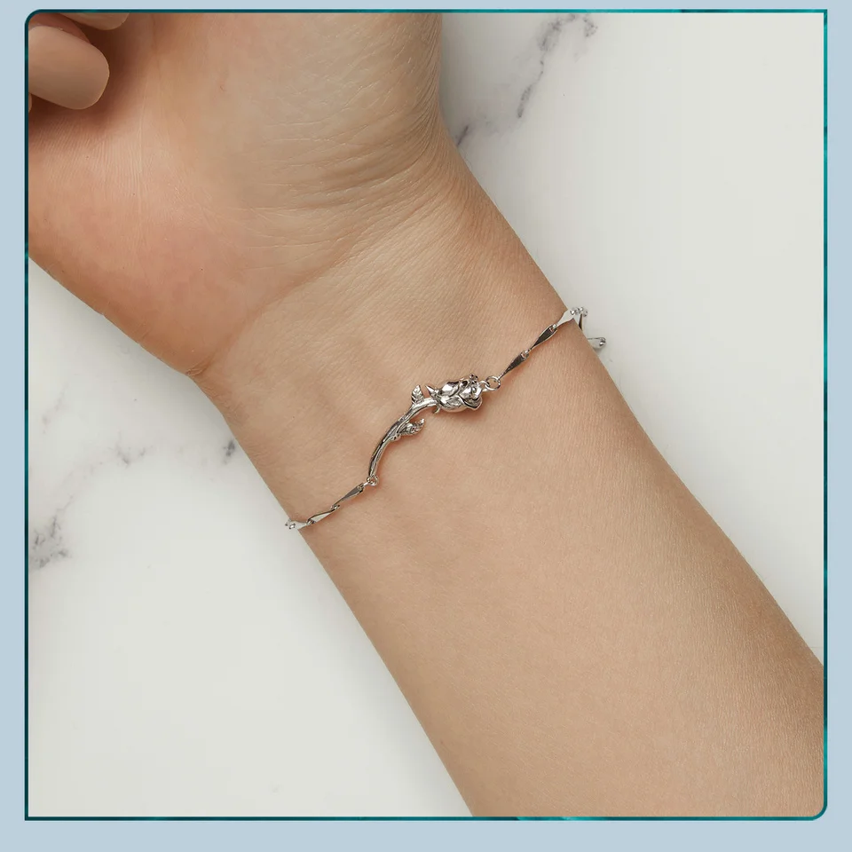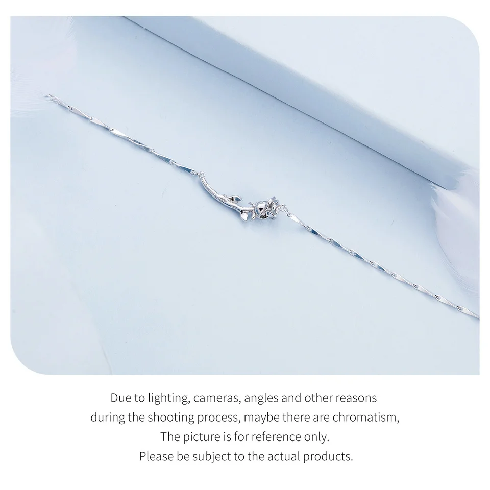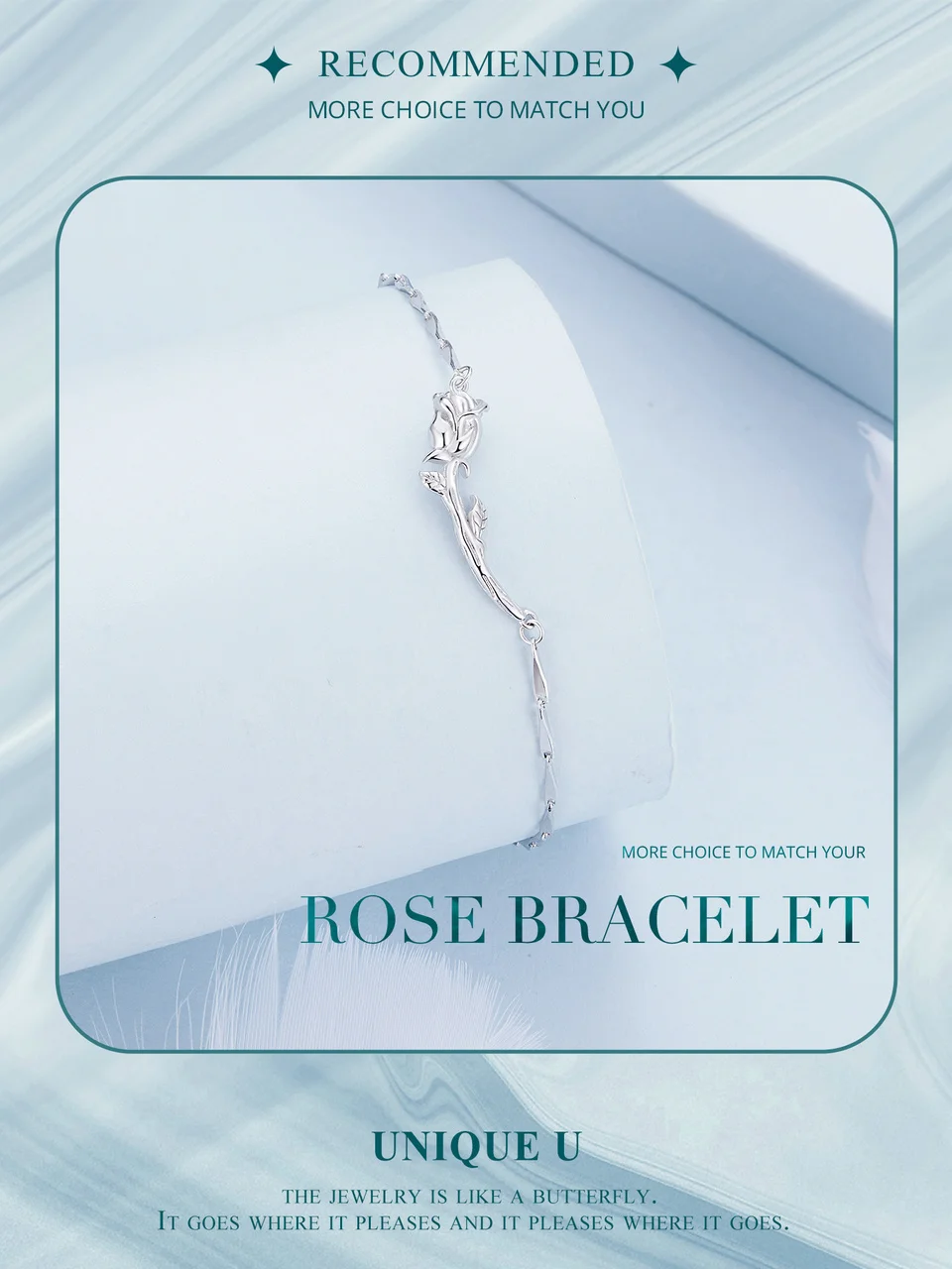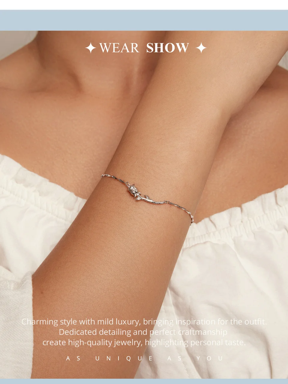 Bamoer 925 Sterling Silver Rose Bracelet Flower Adjustable Chain Link Platinum Plated for Women Valentine's Day Gift BSB146