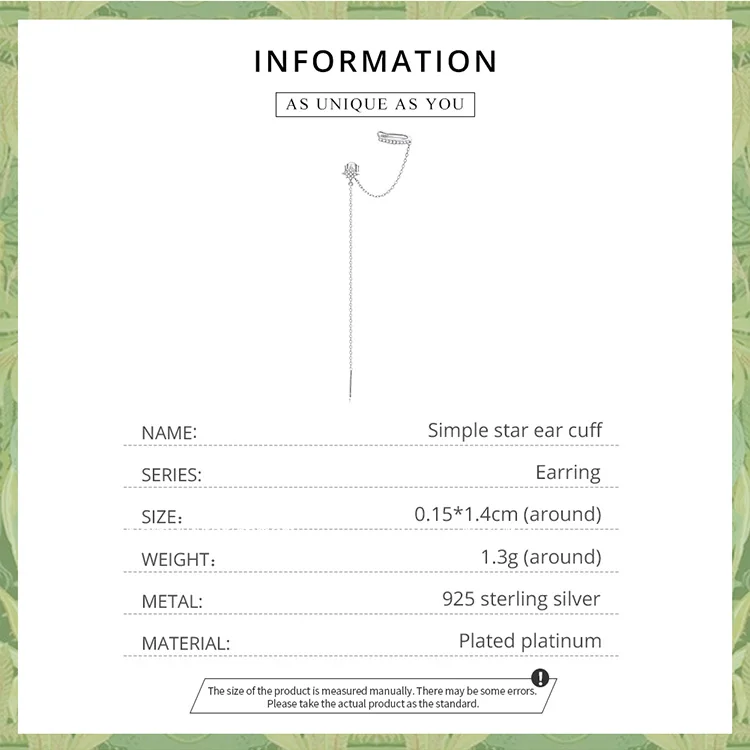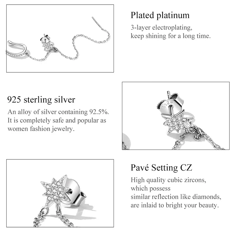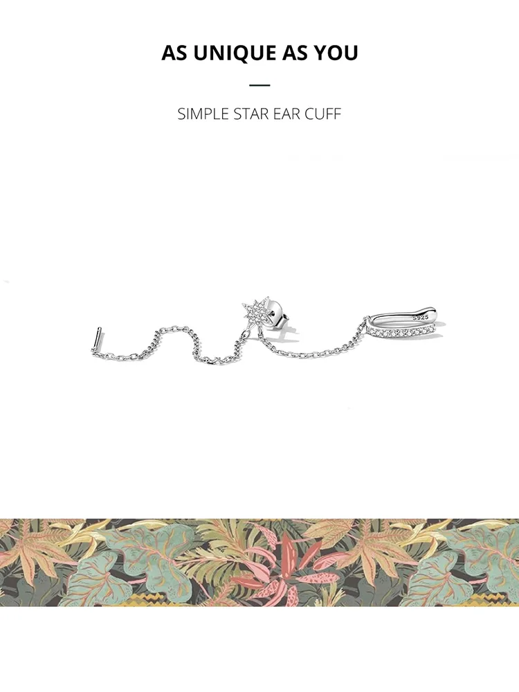 Bamoer 925 Sterling Silver Simple Star Ear Cuff for Women Fine Jewelry Korean Trendy Tassel Ear Studs Wedding Party Gift SCE1450