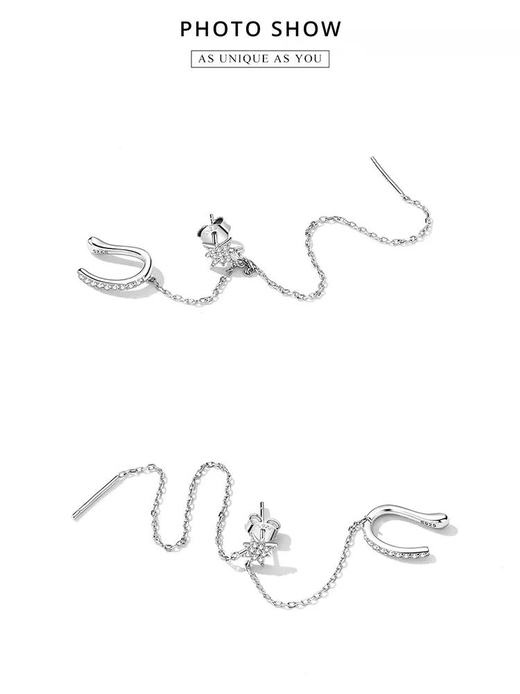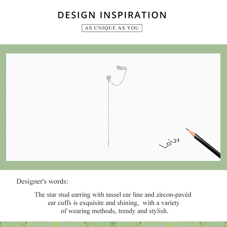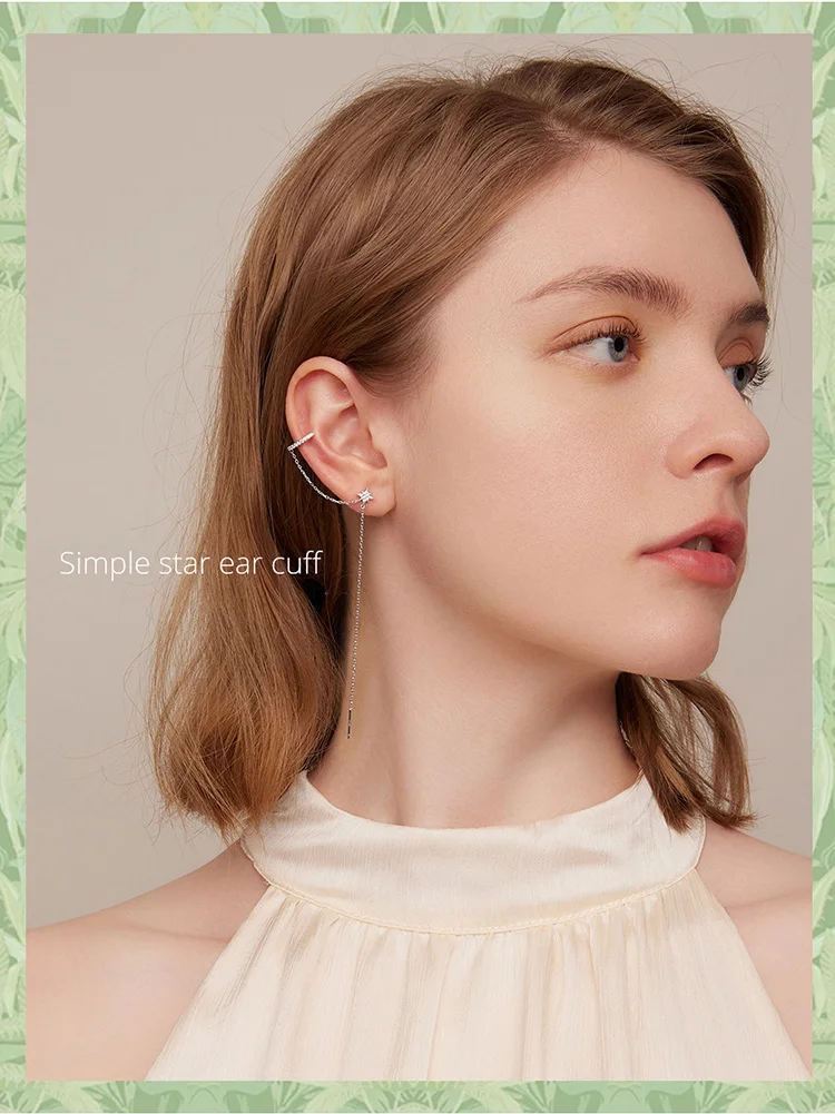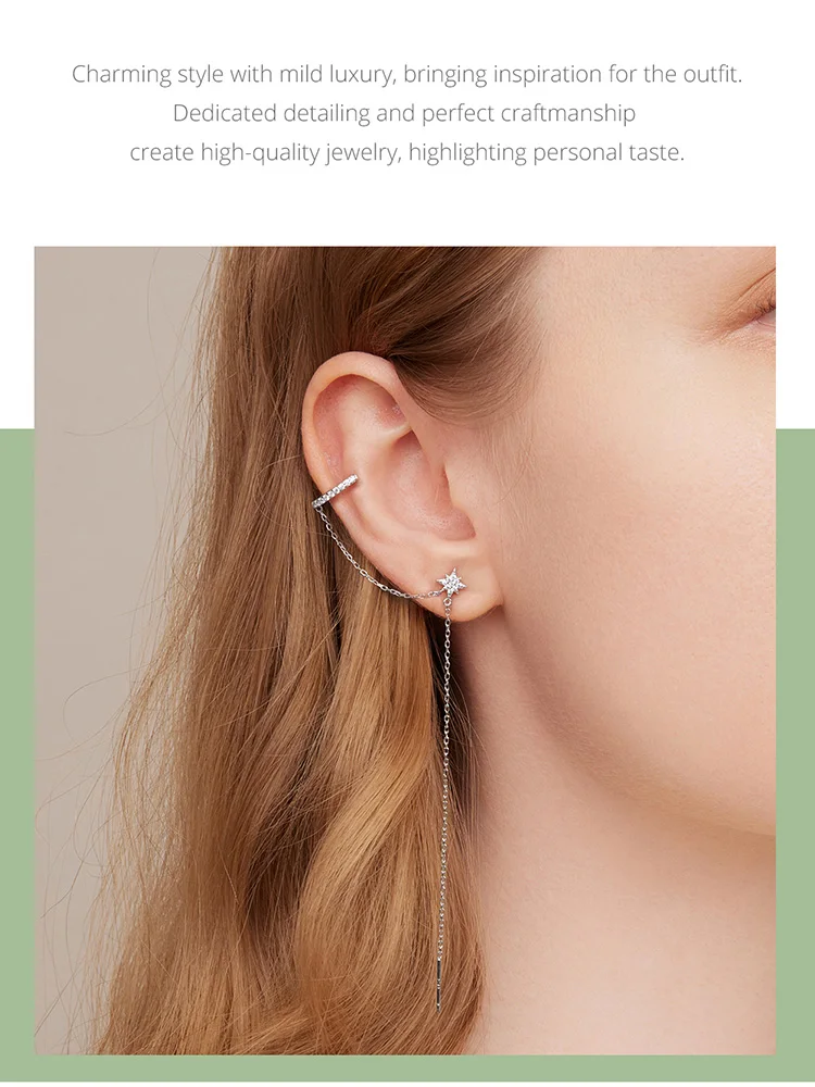 ❤ [Description] The star stud earring with tassel ear line and zircon-pavéd ear cuffs is exquisite and shining, with a variety of wearing methods, trendy and stylish.