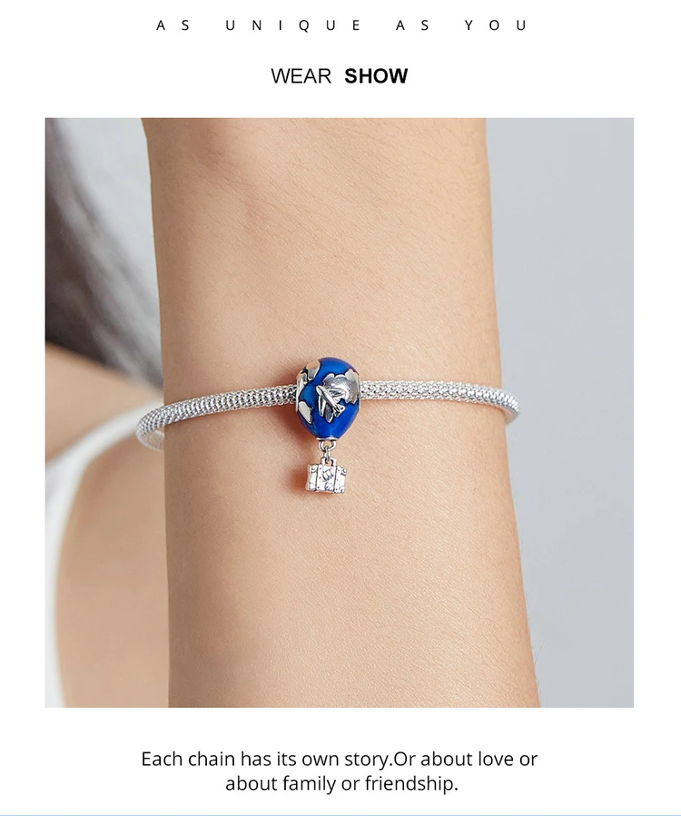 ❤ [Description] There is a suitcase pendant under the blue hot air balloon, which is stylish and unique. Take your luggage and embark on this pleasant journey!