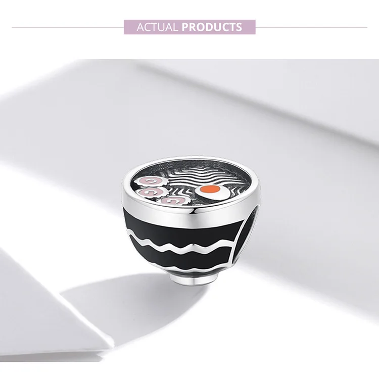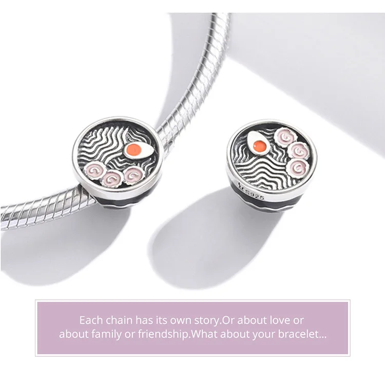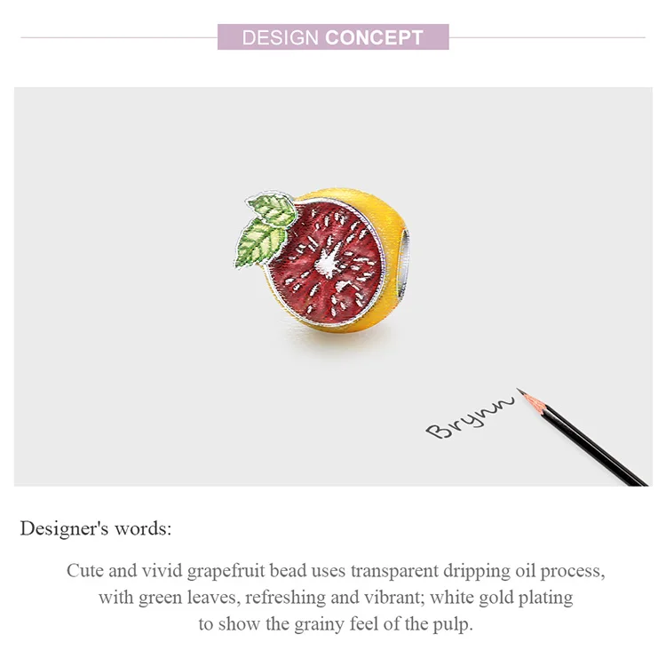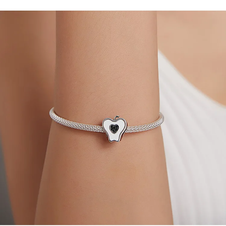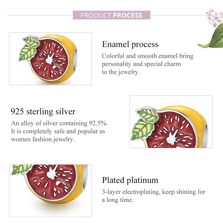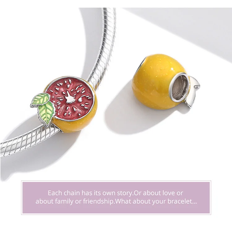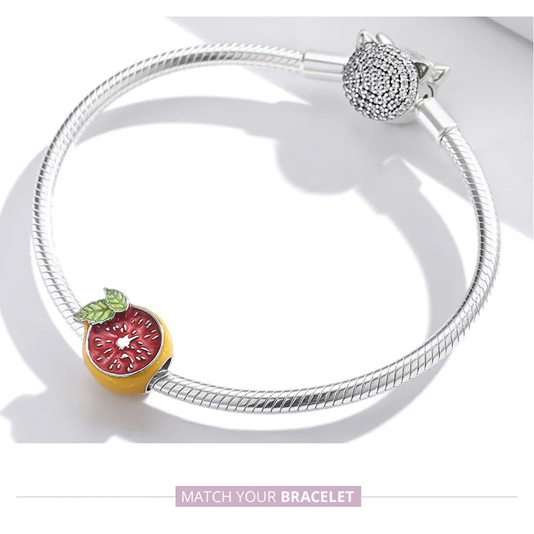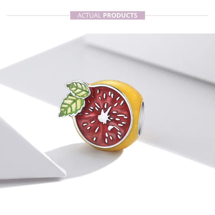 bamoer 925 Sterling Silver Summer Fruit Charm Apple Avocado Orange Arapefruit Crystal Ramen Noodles Bead for Bracelet Bangle