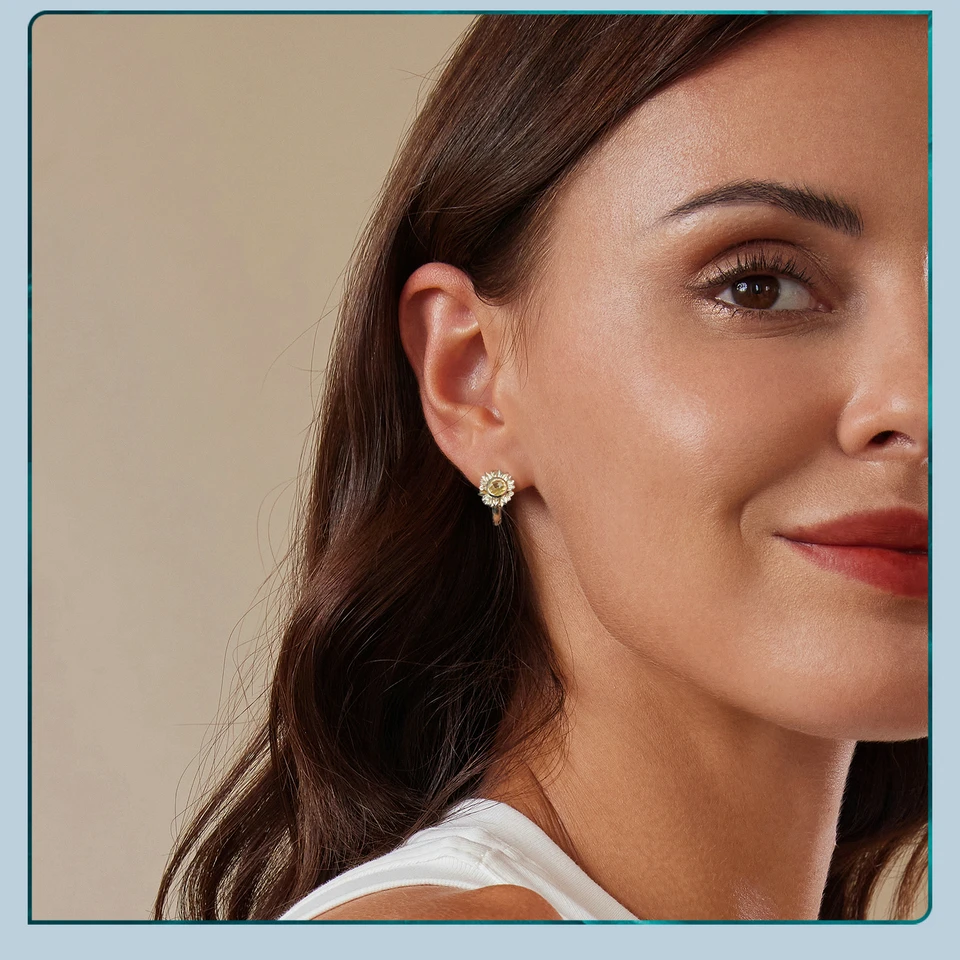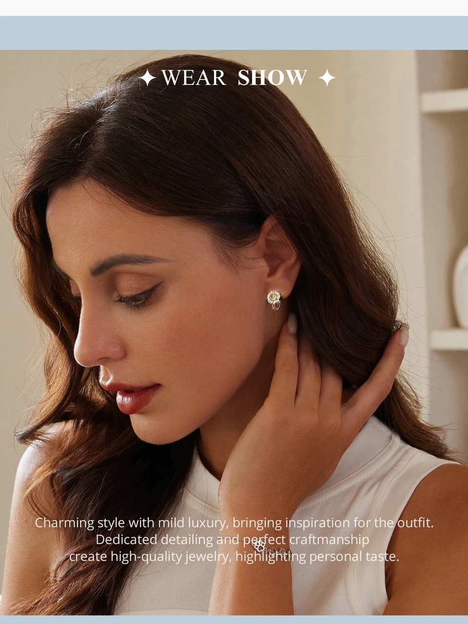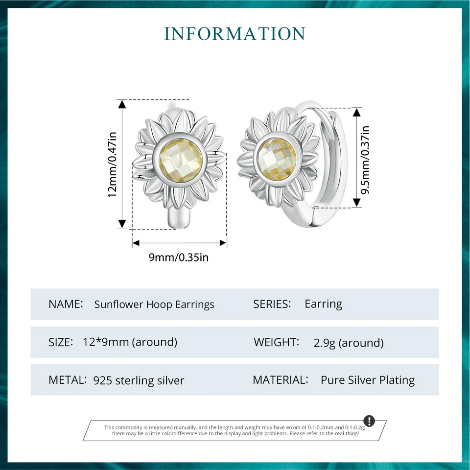 ❤ [Description] The sunflower hoop earrings with a central yellow stone, symbolizing growth towards the sun, bravery, brightness, and openness.