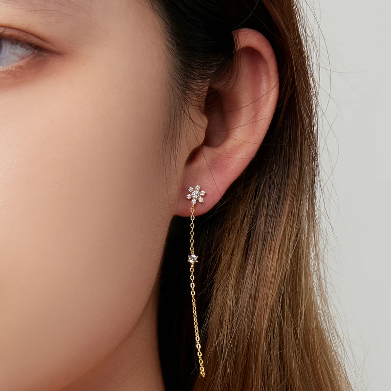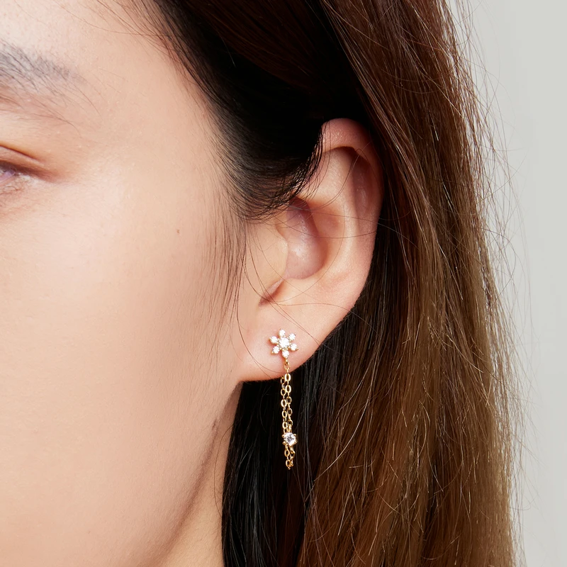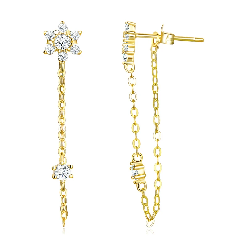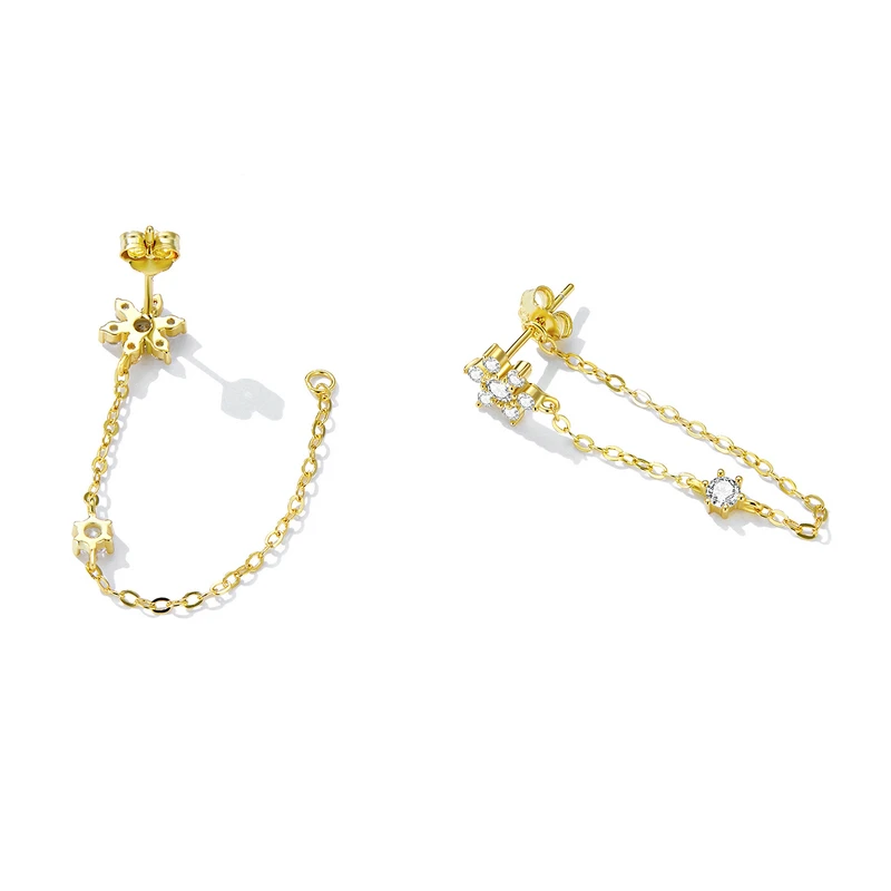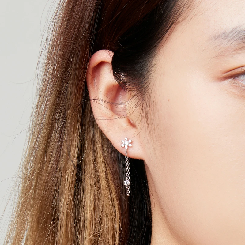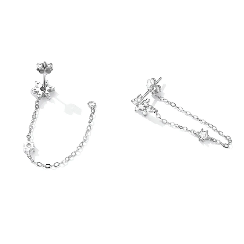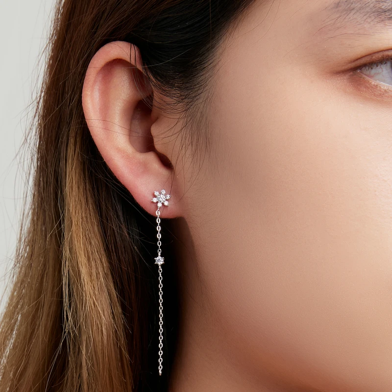Bamoer 925 Sterling Silver Tassel Flower Ear Studs for Women Fine Jewelry Simple Bright Star Dangle Earrings Wedding Gift