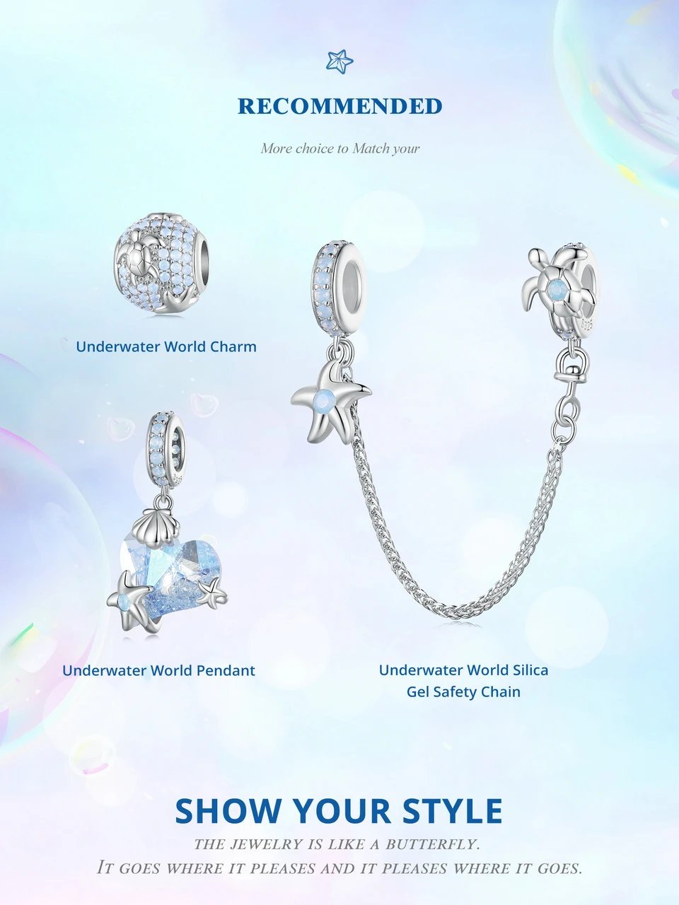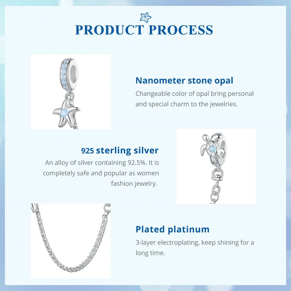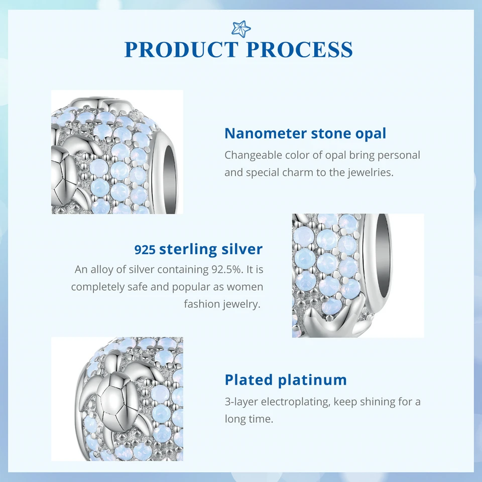 ❤ [Description] The clear blue nano opal elements are inlaid with three-dimensional vivid starfish and shell shape, just like a dreamy and interesting underwater world map unfolding in front of us.